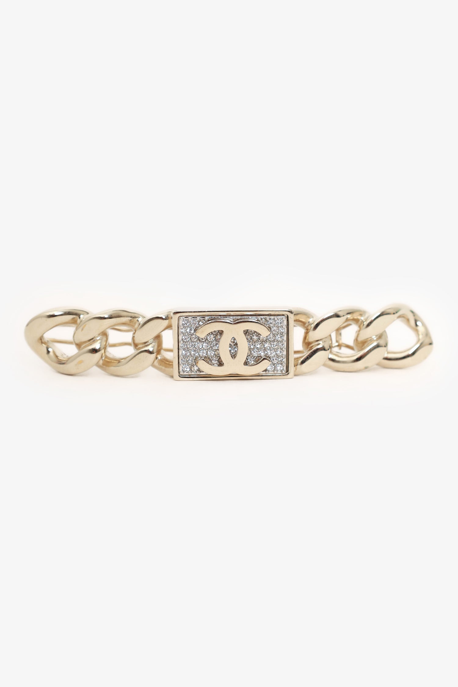 Refresh availabilityChanel 2021 Silver Chain Detail Crystal 'CC' Hair Clip. Gold-tone.