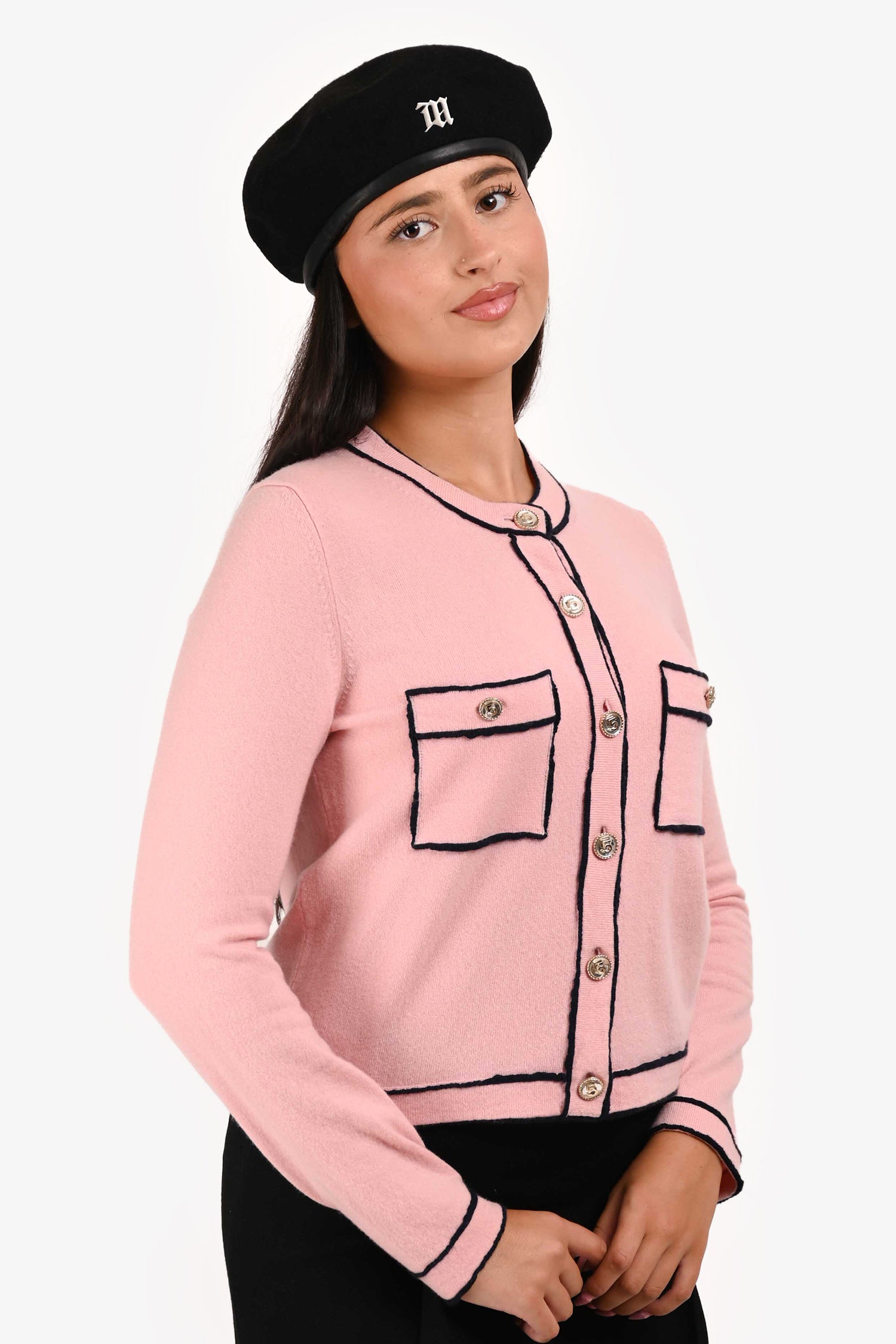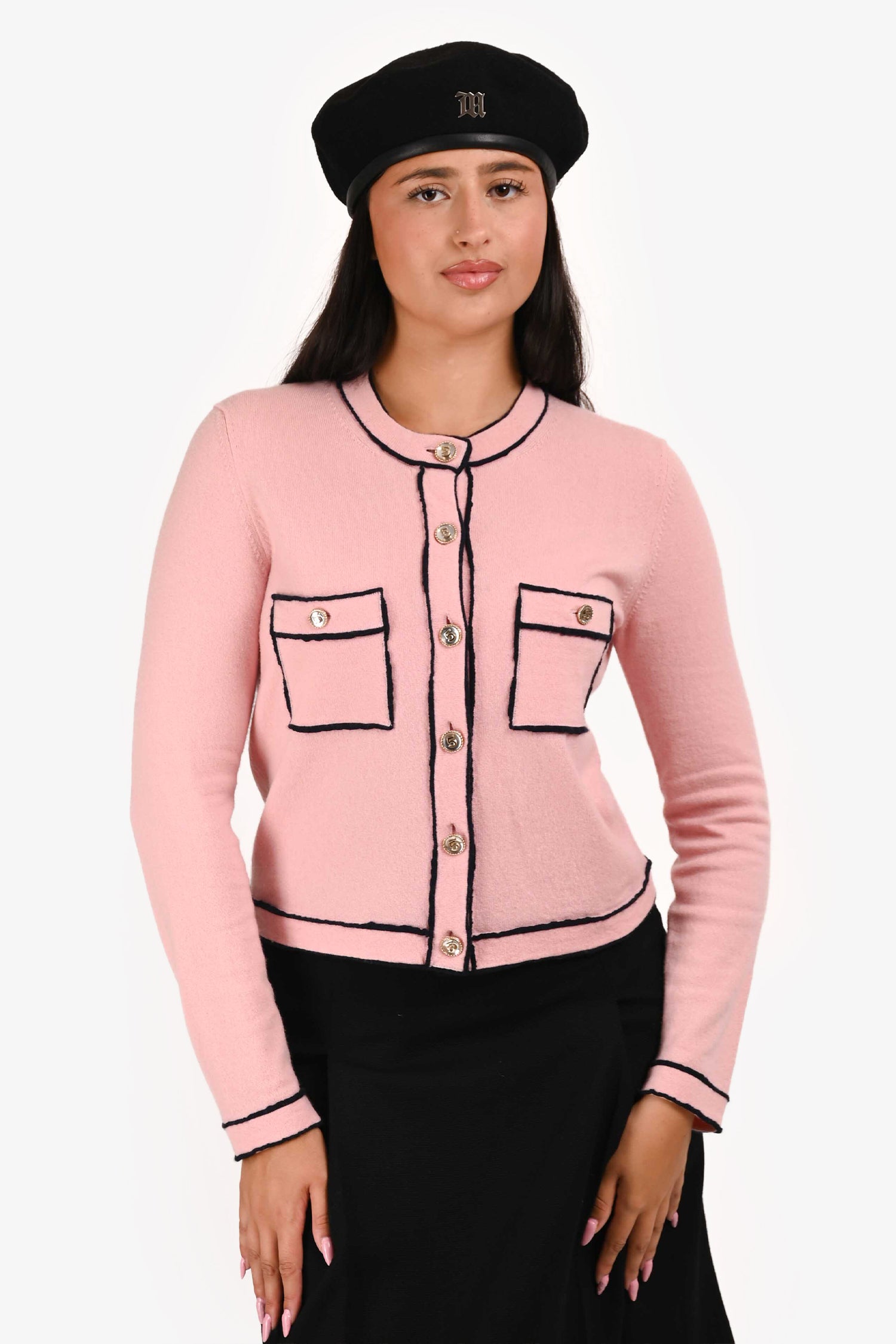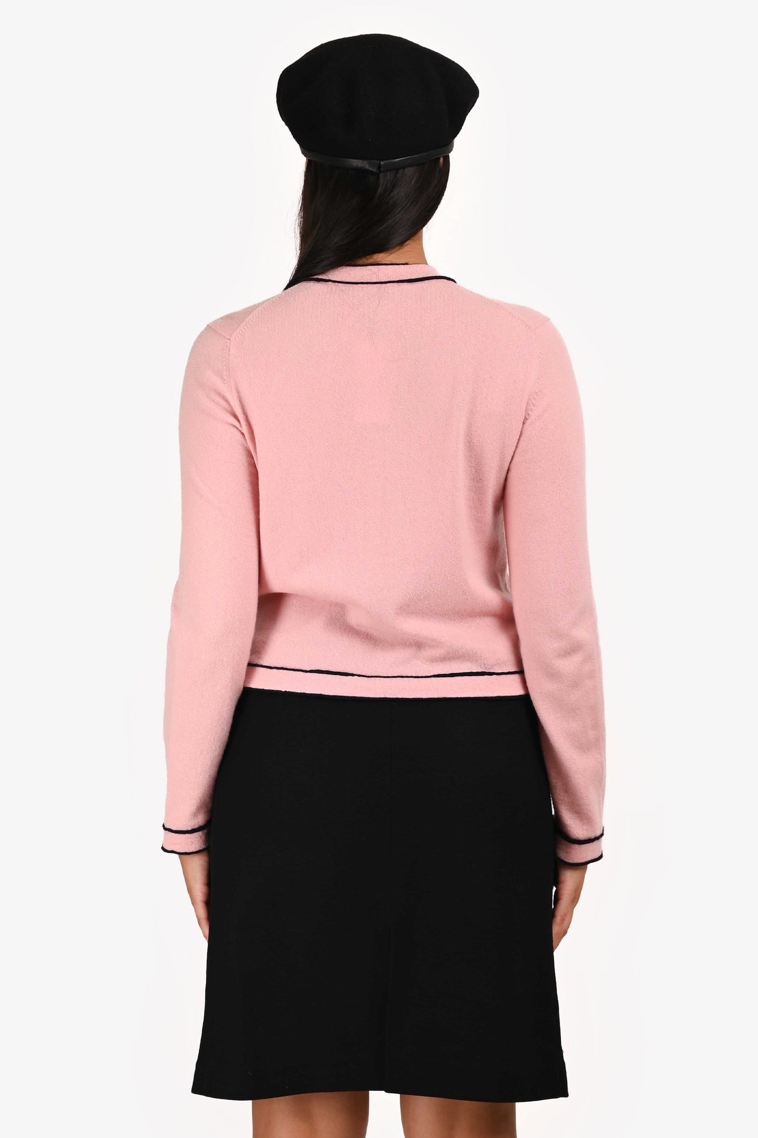 Pre-Loved Chanel™ 2021 Spring Runway Pink Cashmere 'Number 5' Button Cardigan Size 38