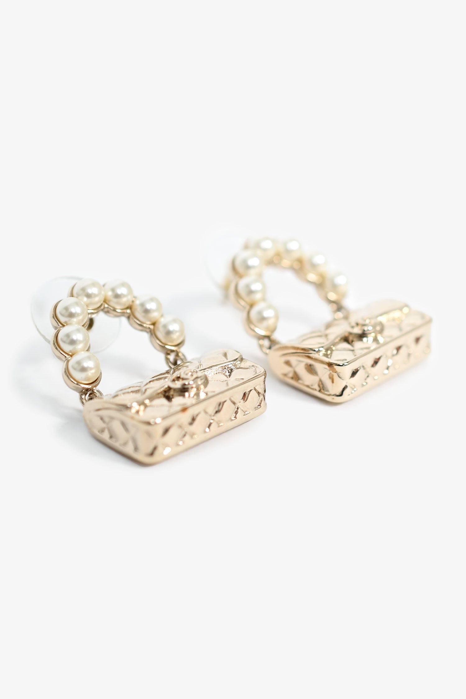 Refresh availabilityPre-Loved Chanel™ 2022 Champagne Gold Toned Flap Bag Earrings. Push-pin closure.