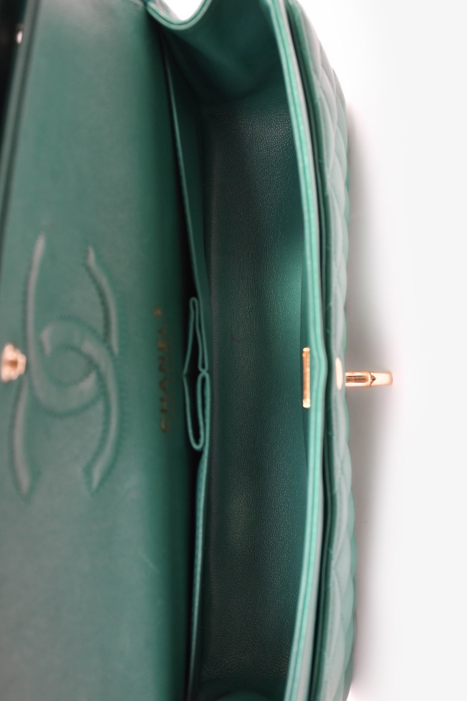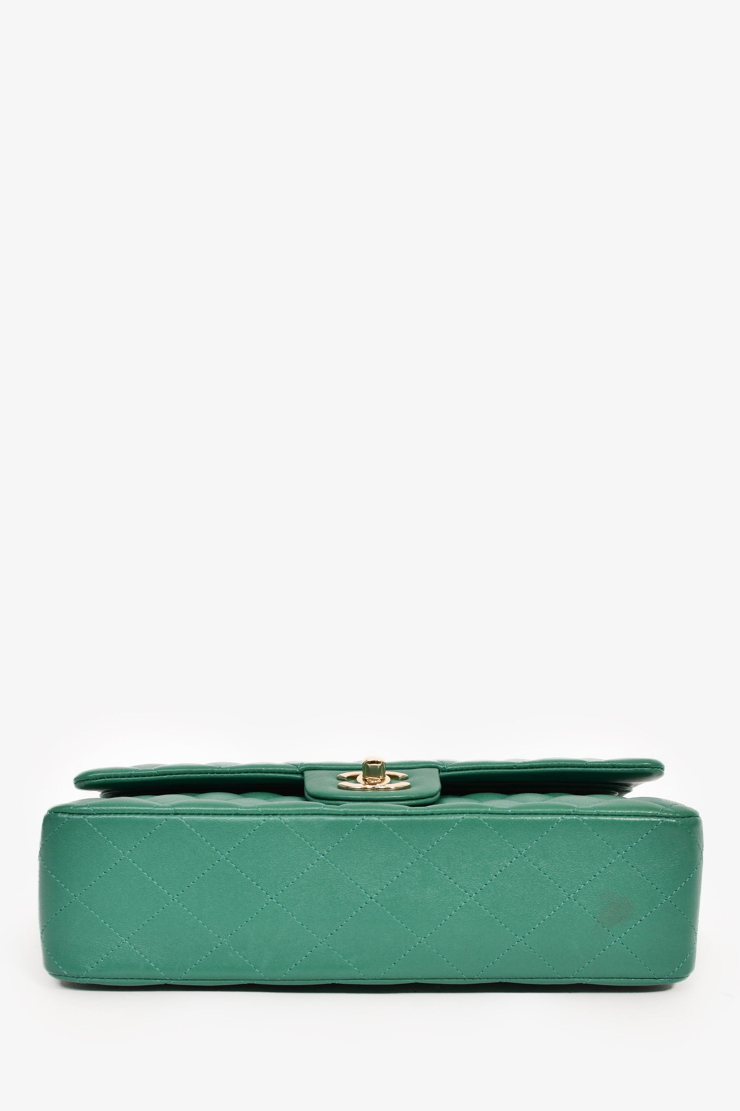 Pre-Loved Chanel™ 2022 Dark Green Lambskin Medium Classic Double Flap Shoulder Bag
