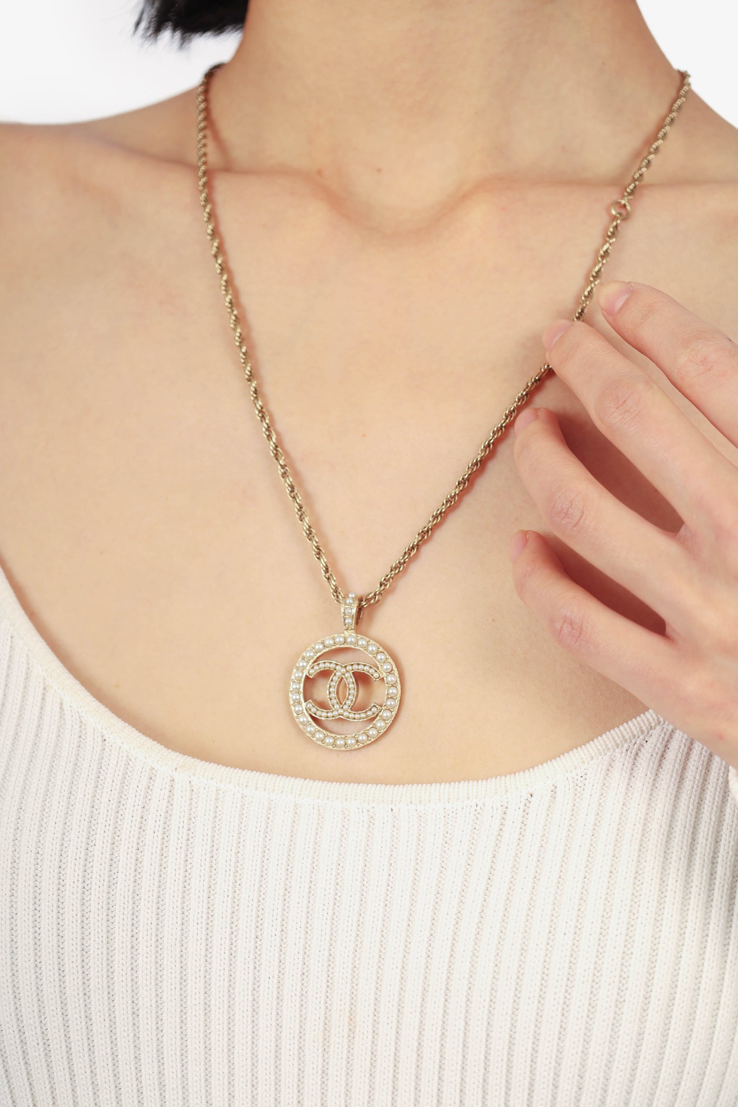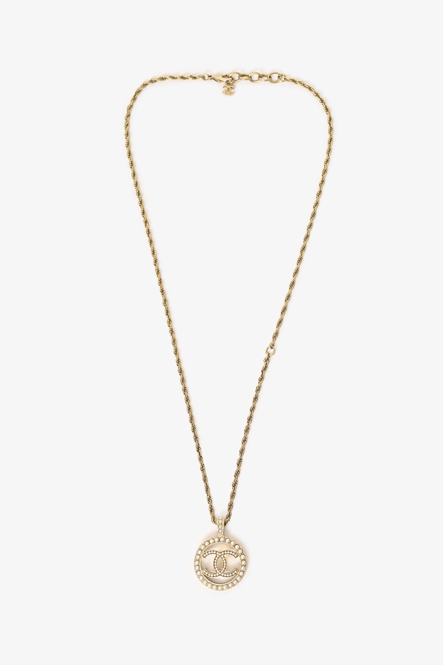 Refresh availabilityPre-loved Chanel™ 2022 Gold-Tone Faux Pearl CC Pendant Necklace. Lobster clasp closure.