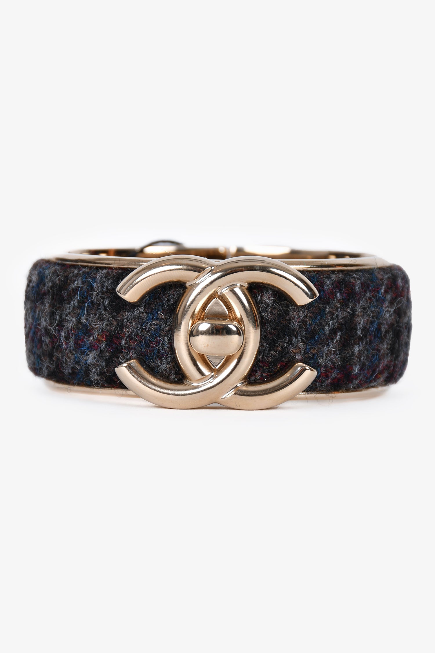 Refresh availabilityPre-loved Chanel™ 2022 Grey Tweed 'CC' Turnlock Bangle.