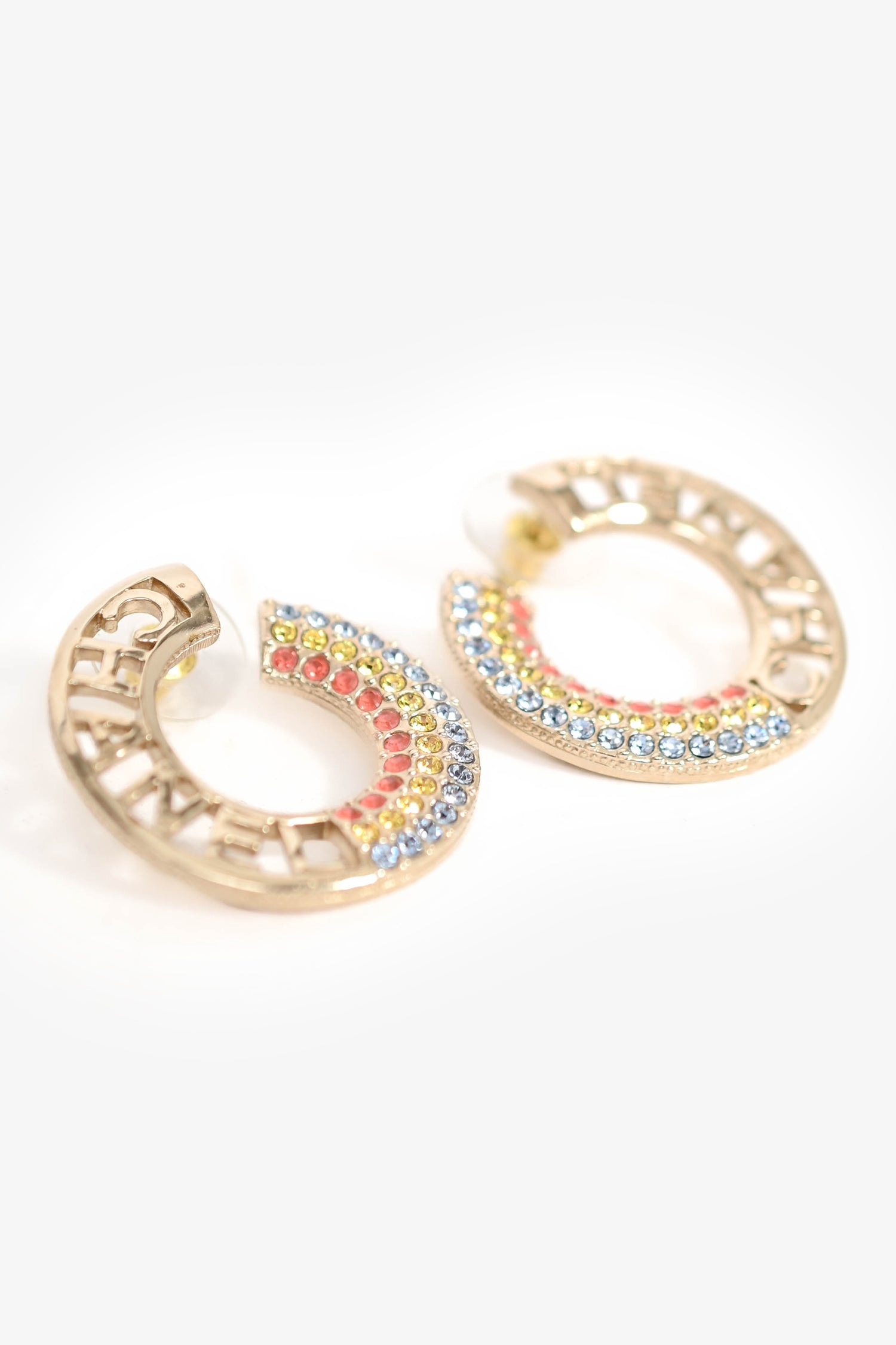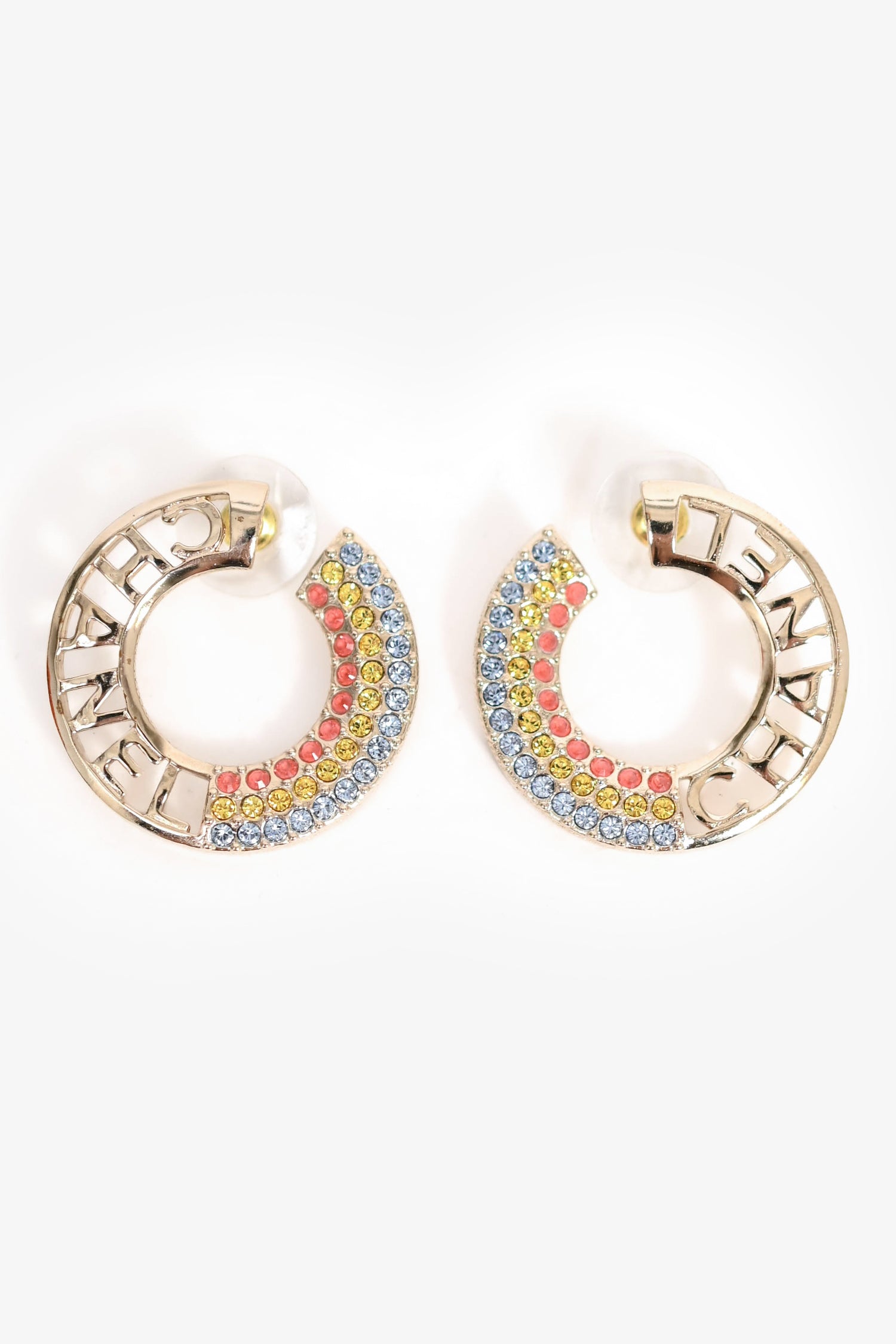 Pre-Loved Chanel™ 2023 Gold Toned Multicoloured Crystal Round Stud Earrings