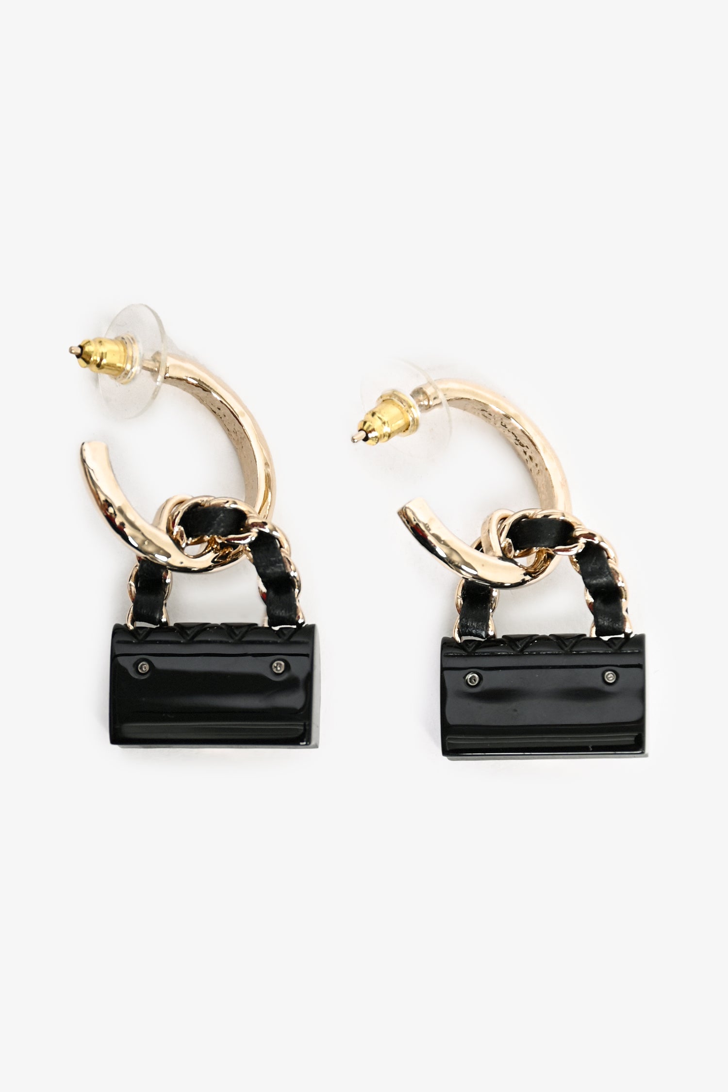 Pre-Loved Chanel™ 2023 Gold Toned Resin/Leather Purse Drop CC Earrings