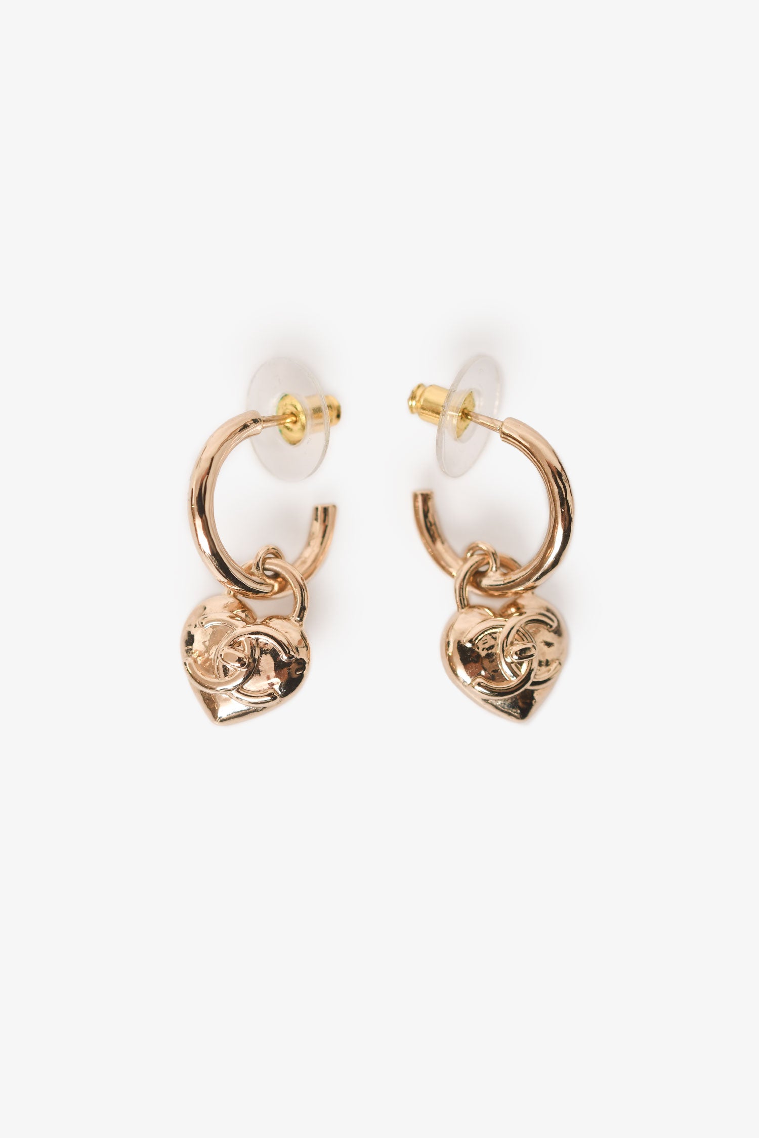 Refresh availabilityPre-Loved Chanel™ 2023 Yellow Gold Toned Heart Lock Small Hoop Earrings. Push-pin closures.