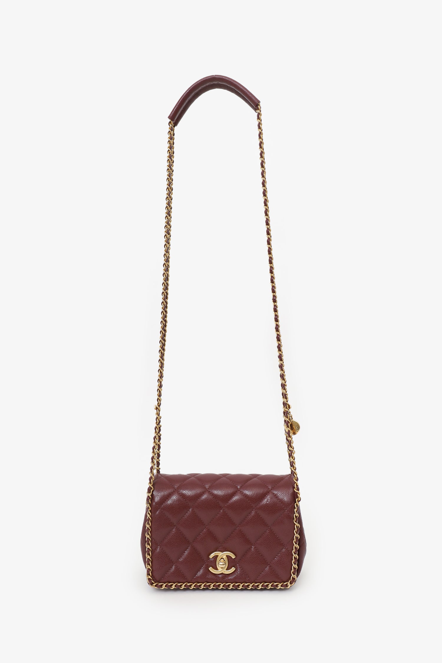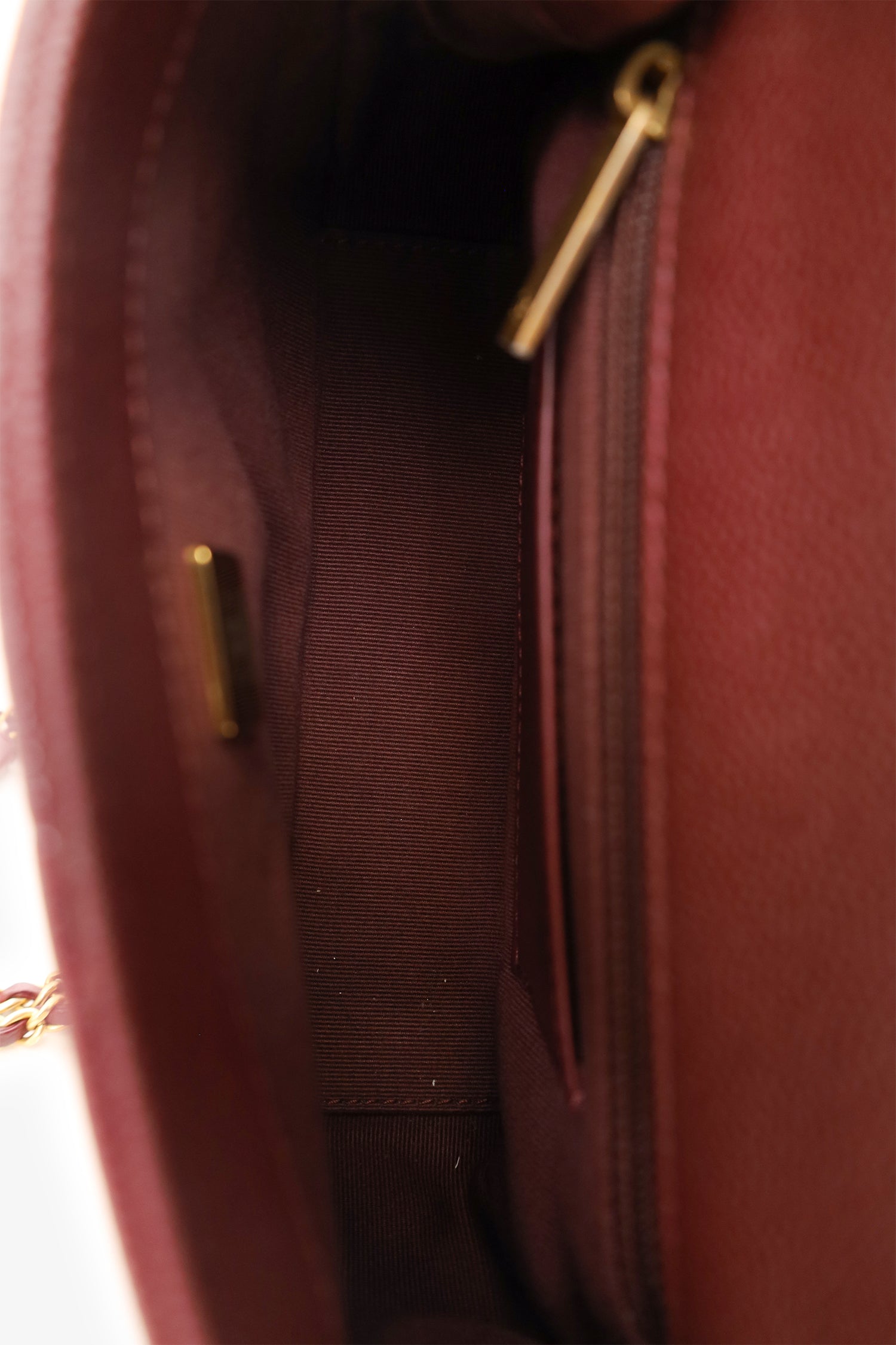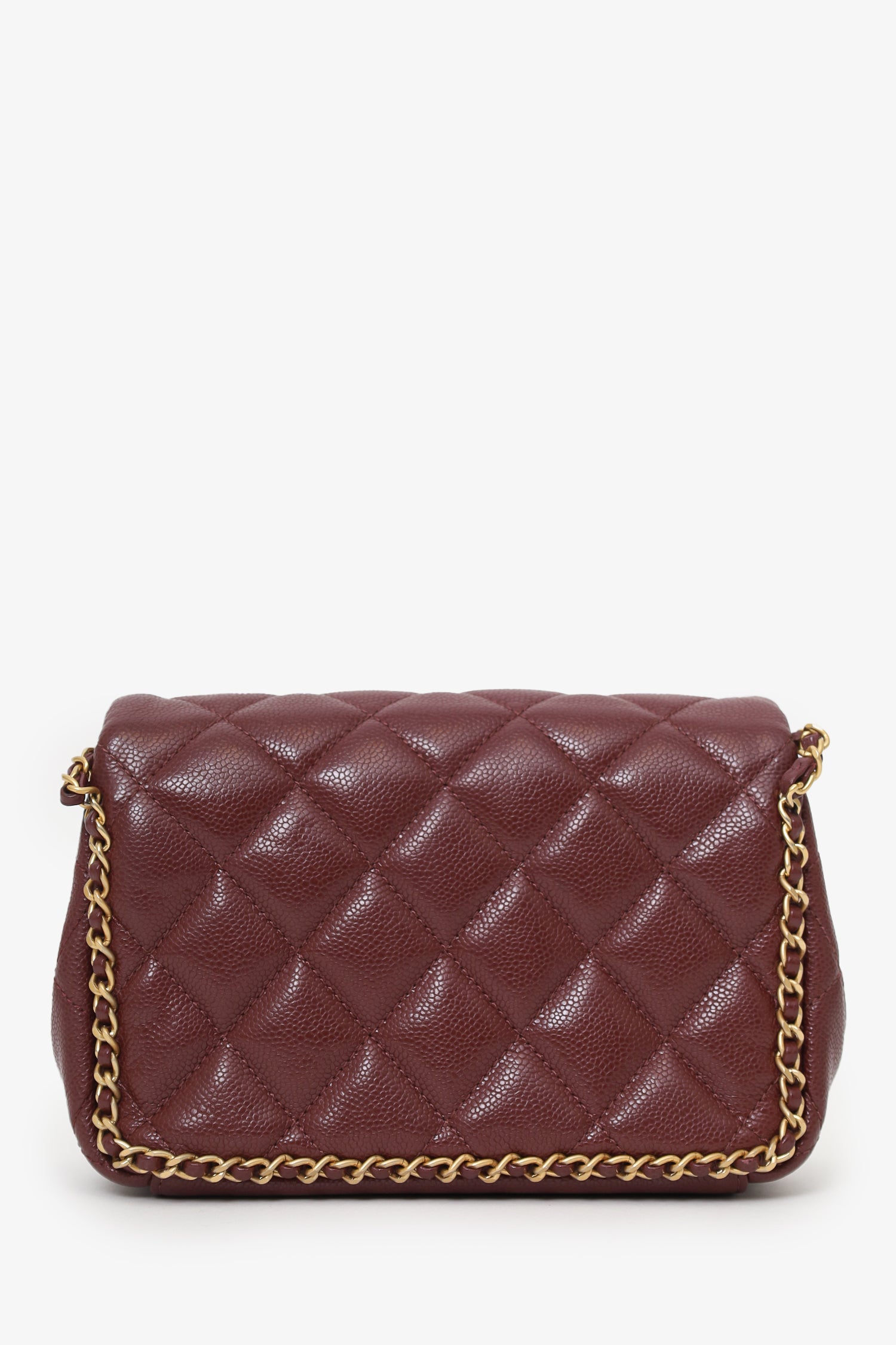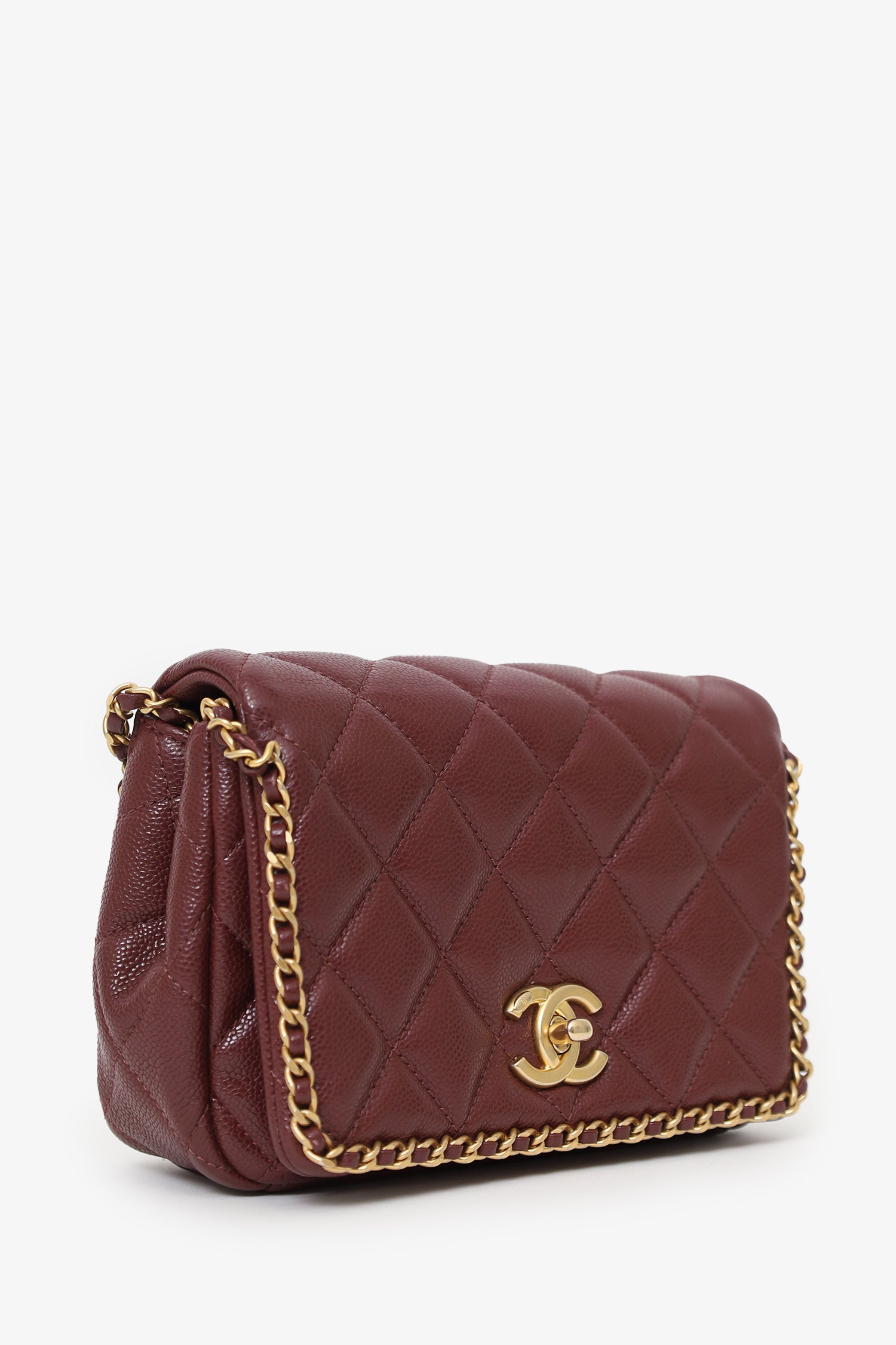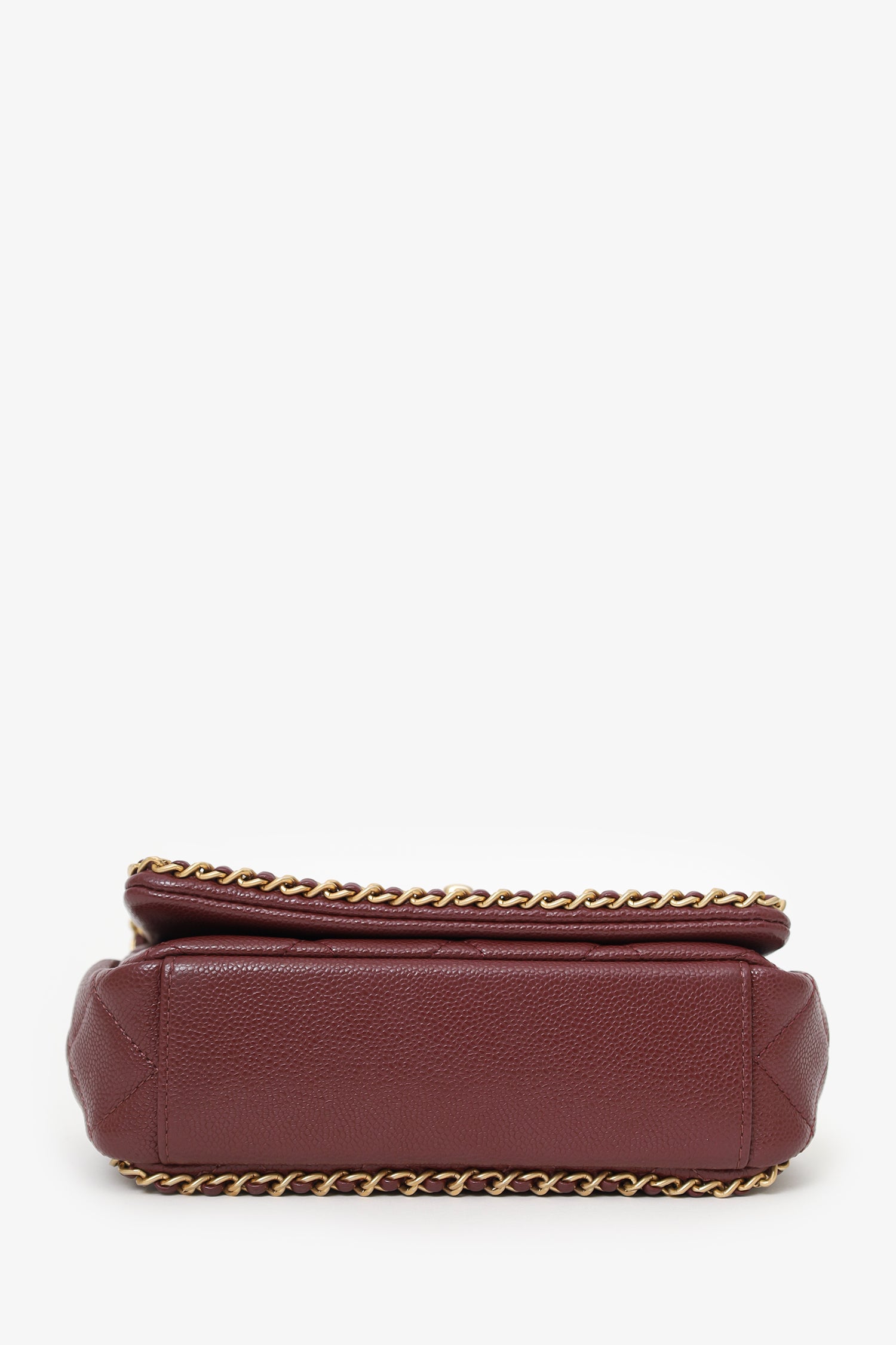 Refresh availabilityPre-Loved Chanel™ 22B Burgundy Caviar Never Ending Chain Flap Bag. Front fold-over flap with turn-lock closure. Chainlink strap. Lined interior. Single interior zip pocket and 1 card slot. Gold-tone hardware. Tonal stitching.