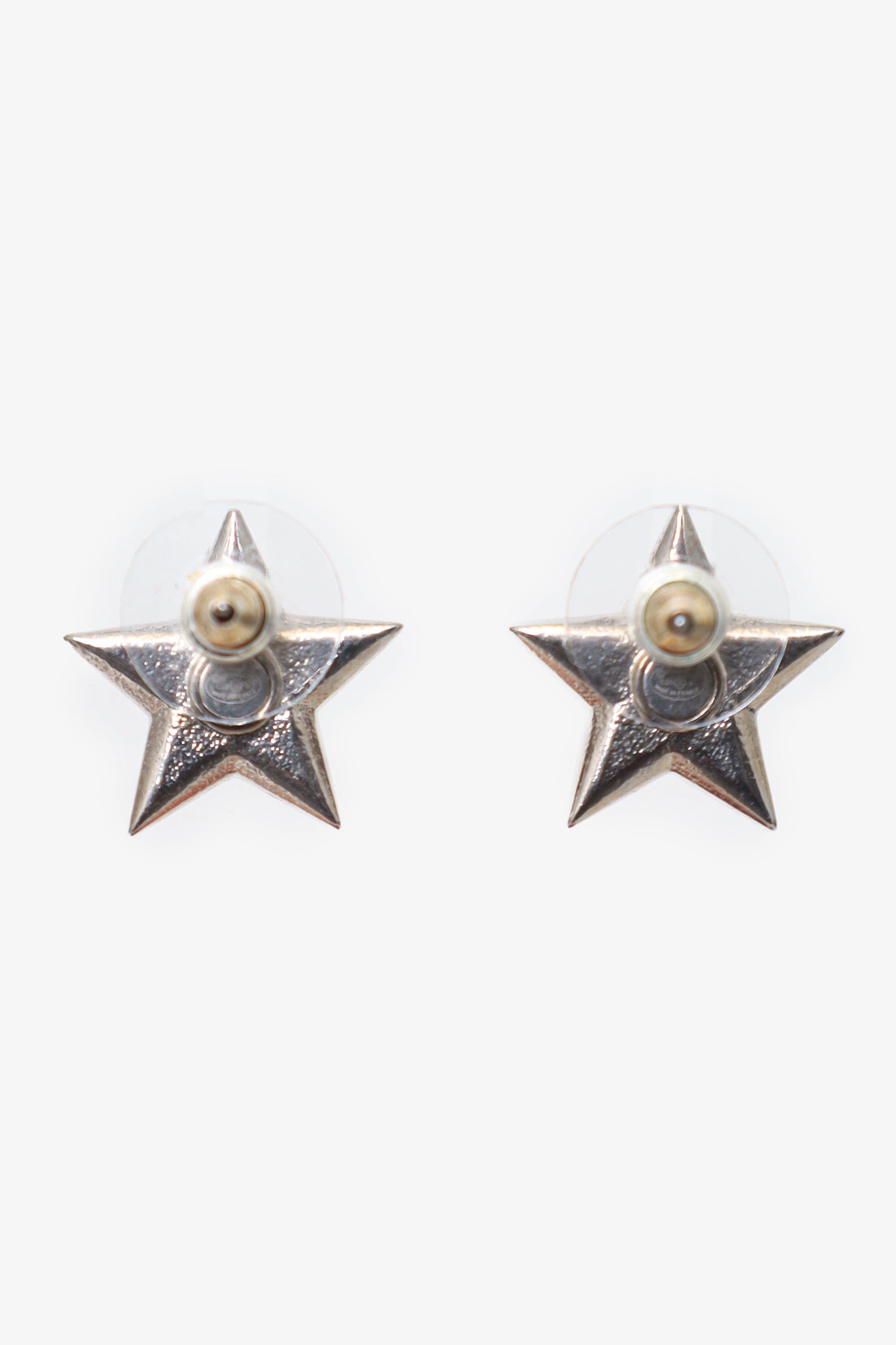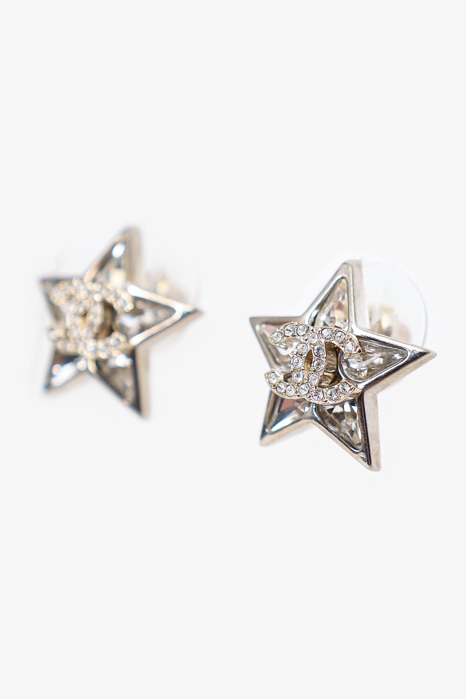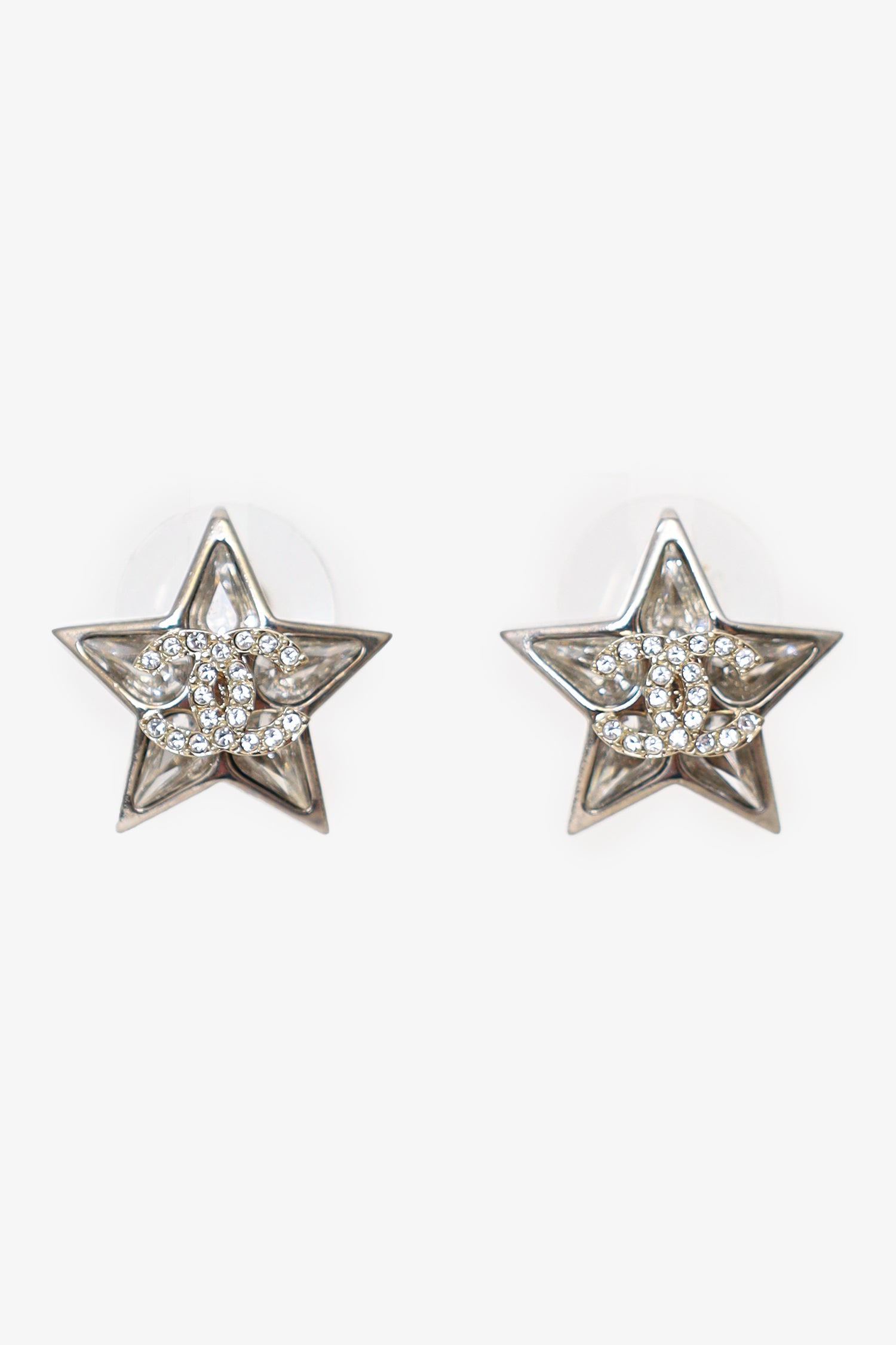 Refresh availabilityPre-Loved Chanel™ 23S Silver Tone Crystal CC Star Earrings. Push-pin closure.