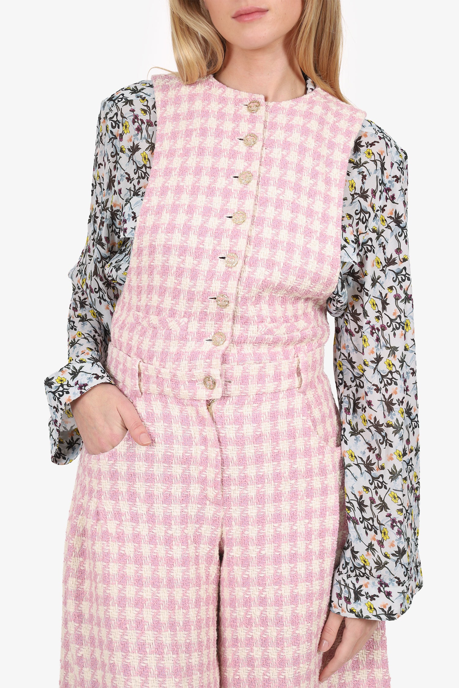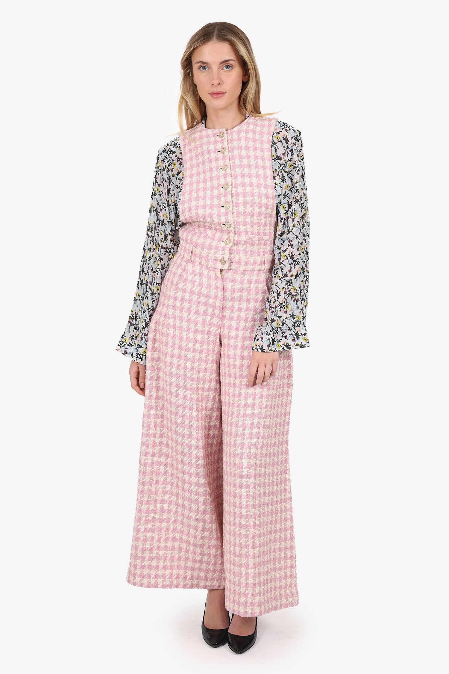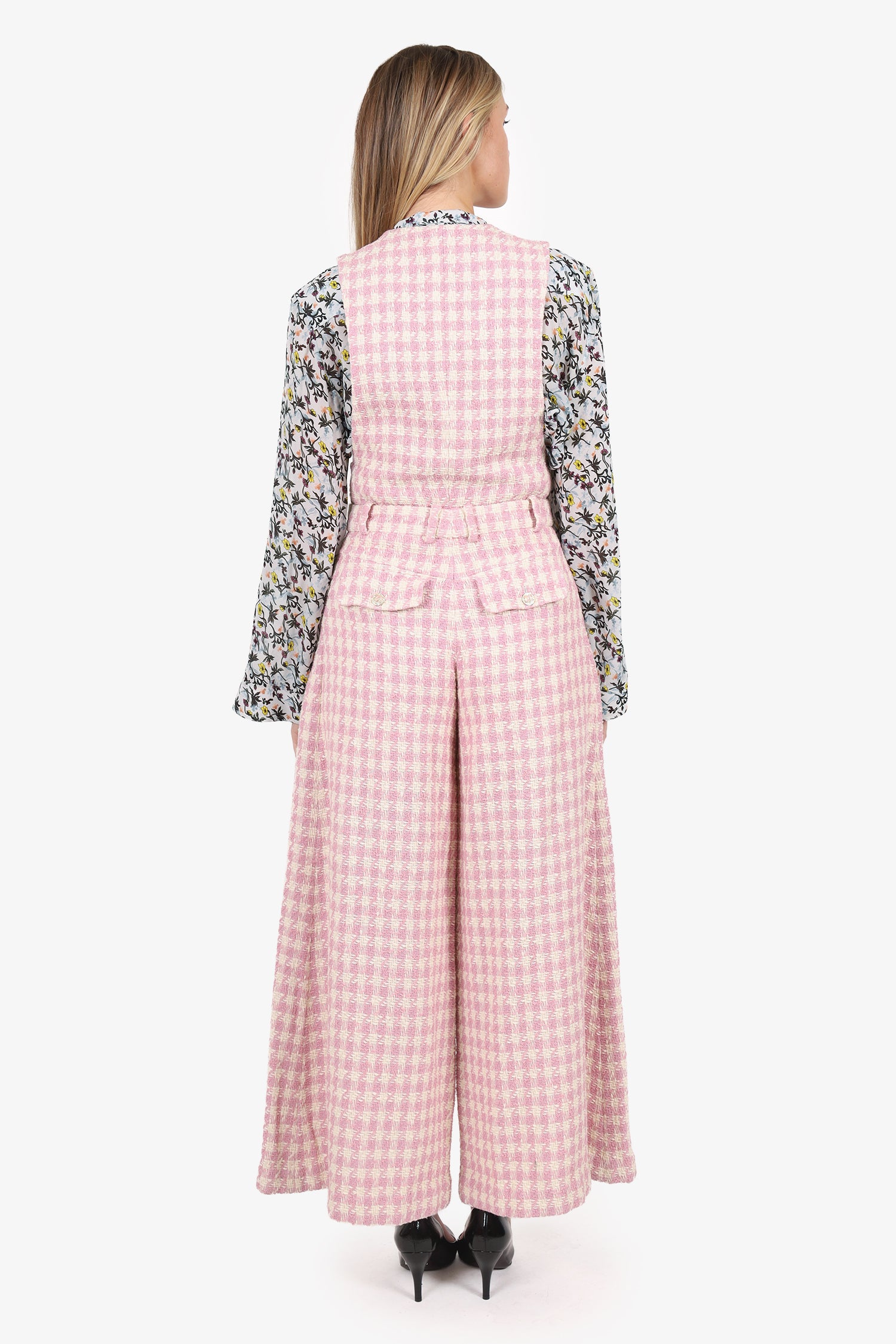 Pre-Loved Chanel™ 23SS Pink/White Tweed Plaid Sleeveless Jumpsuit Size 36