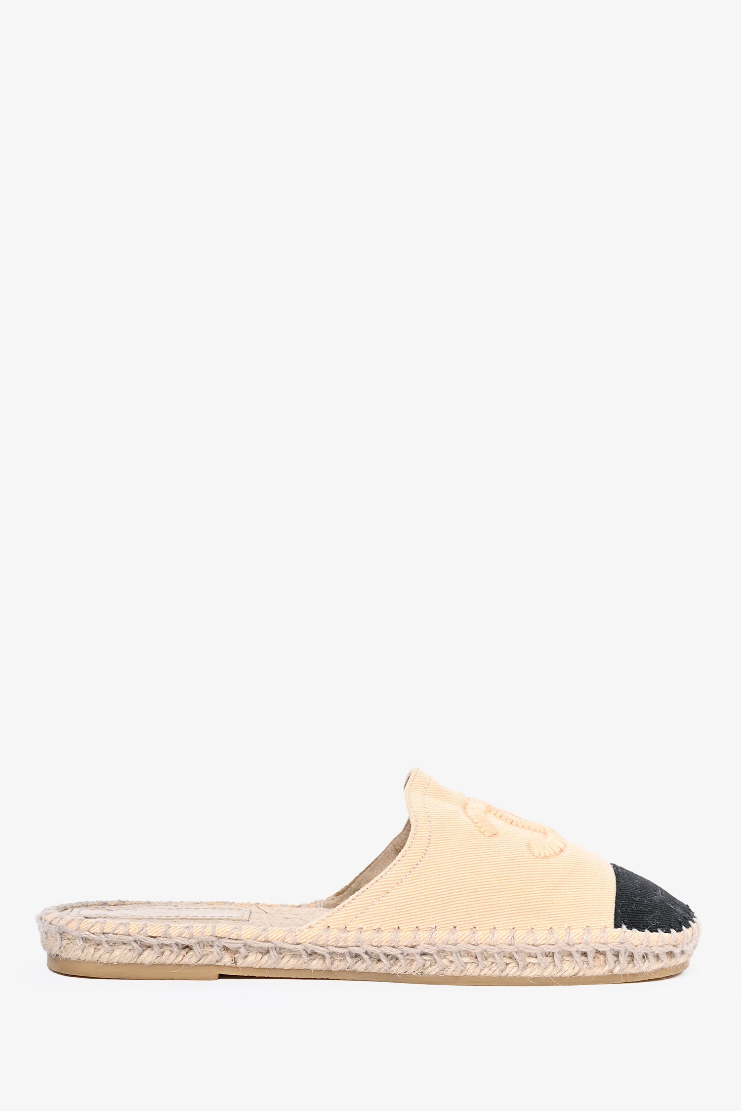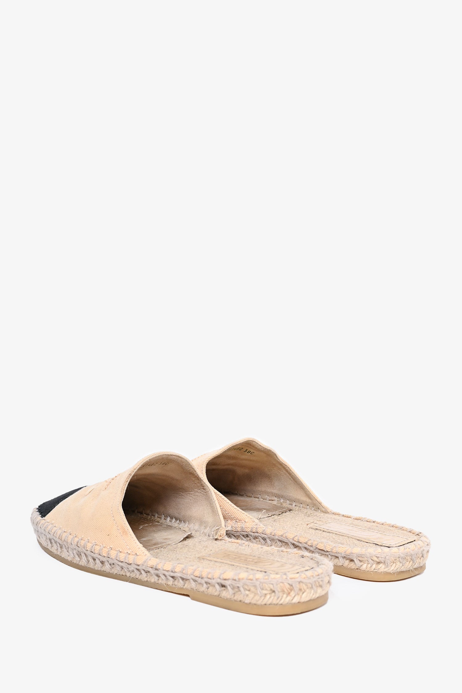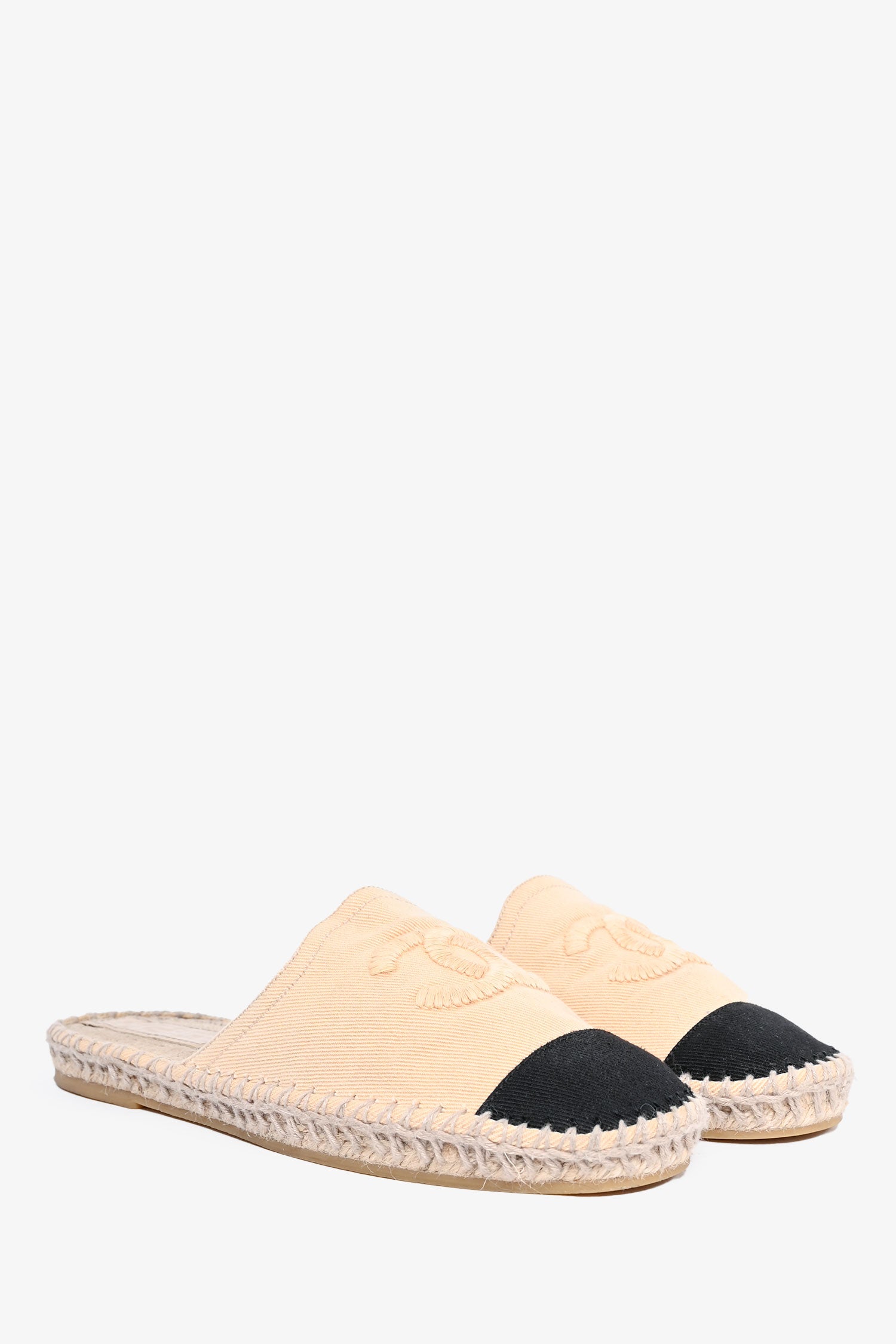 Refresh availabilityPre-Loved Chanel™ Beige/Black CC Slip-On Espadrilles. Open back. Slip-on.