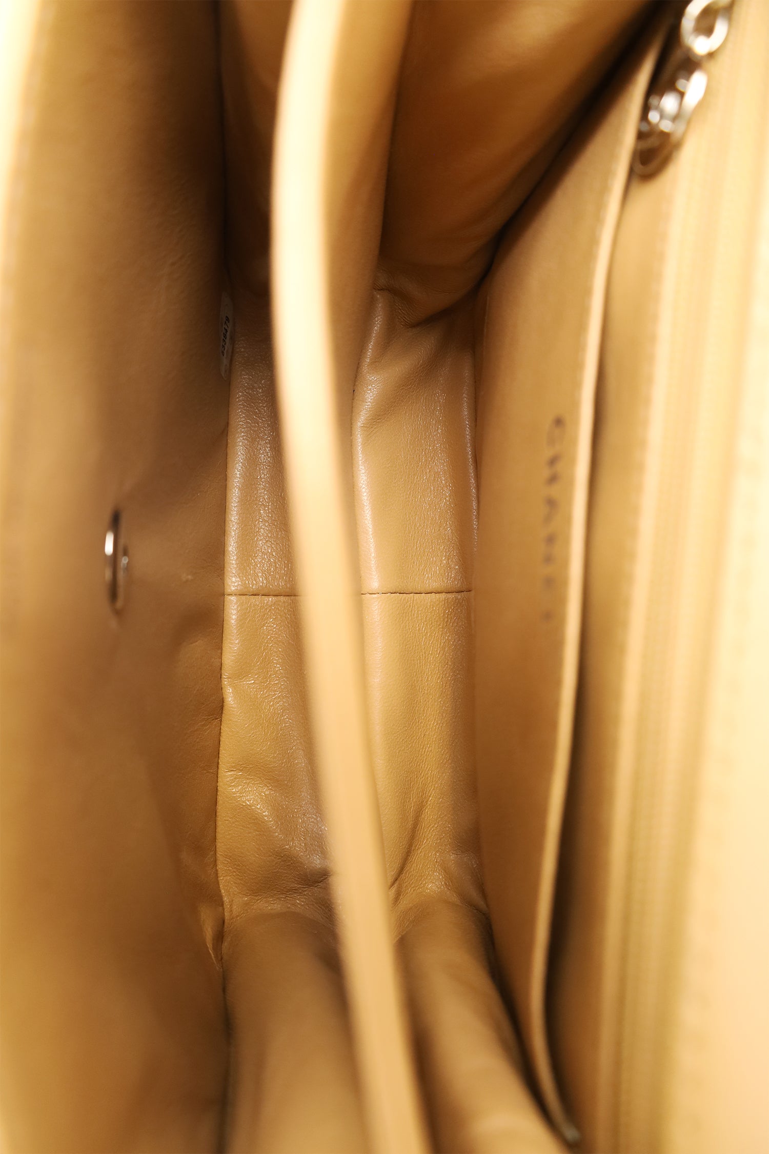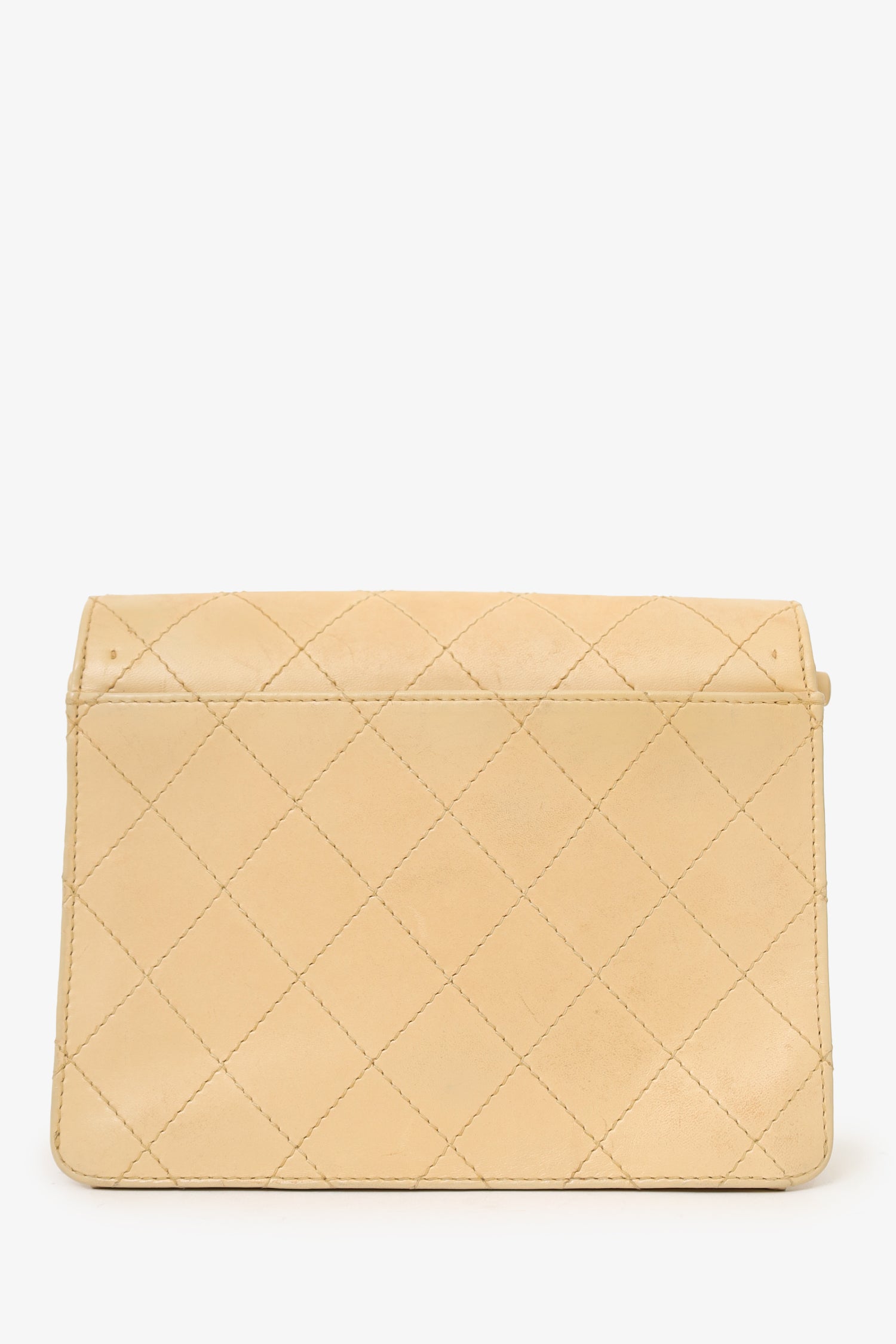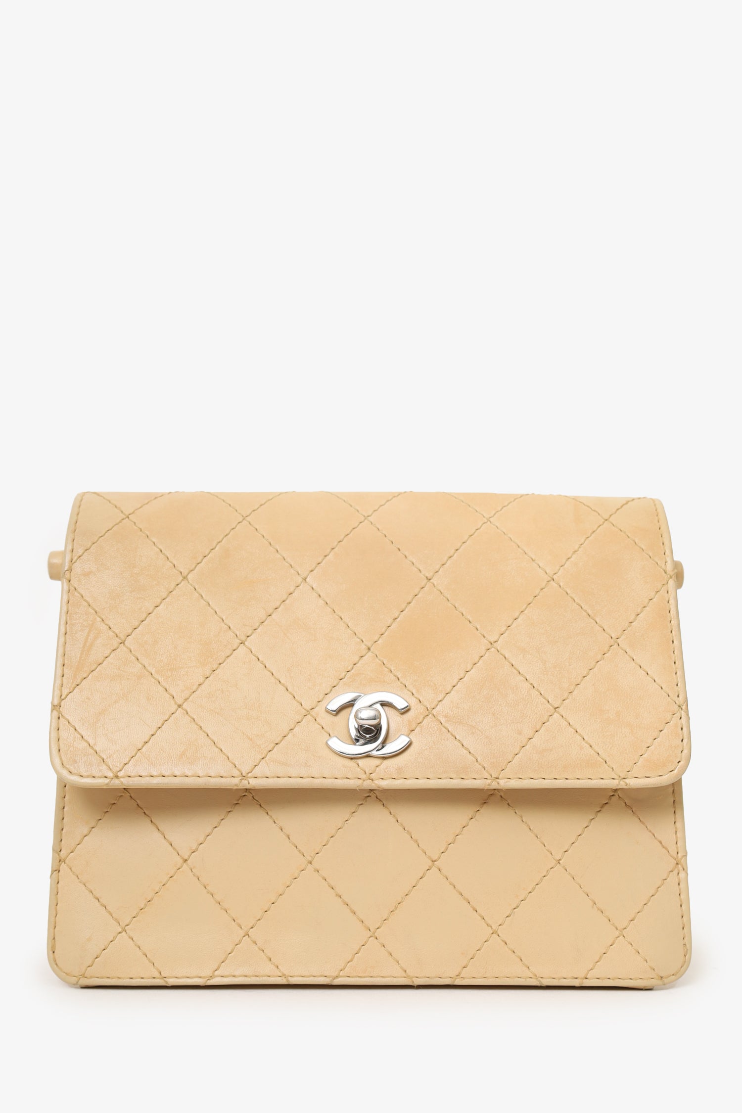 Refresh availabilityPre-Loved Chanel™ Beige Quilted CC Shoulder Bag. Front front-over flap with turn-lock closure. Single exterior rear slip pocket. 2 interior compartments; front open and rear with 2 pockets; 1 slip and 1 zip. Silver-tone hardware. Tonal stitching.