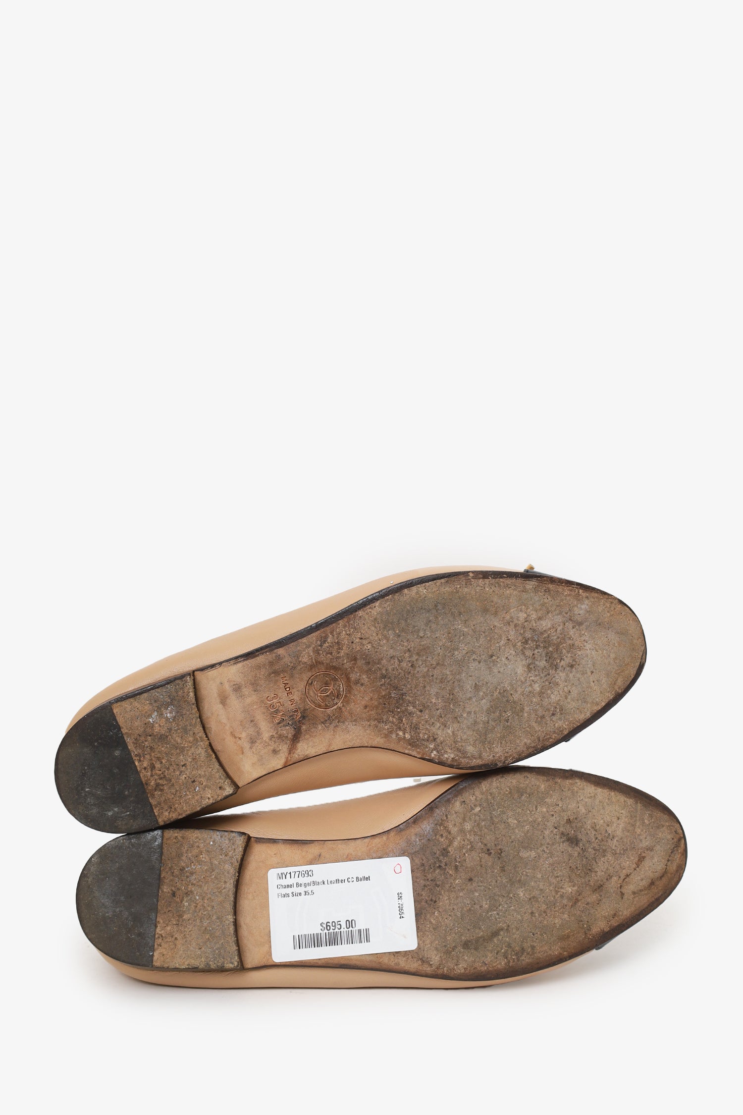 Pre-Loved Chanel™ Beige/Black Leather CC Ballet Flats Size 35.5