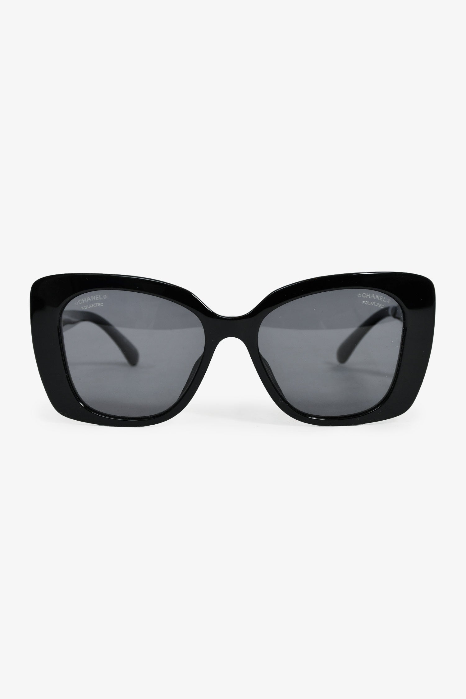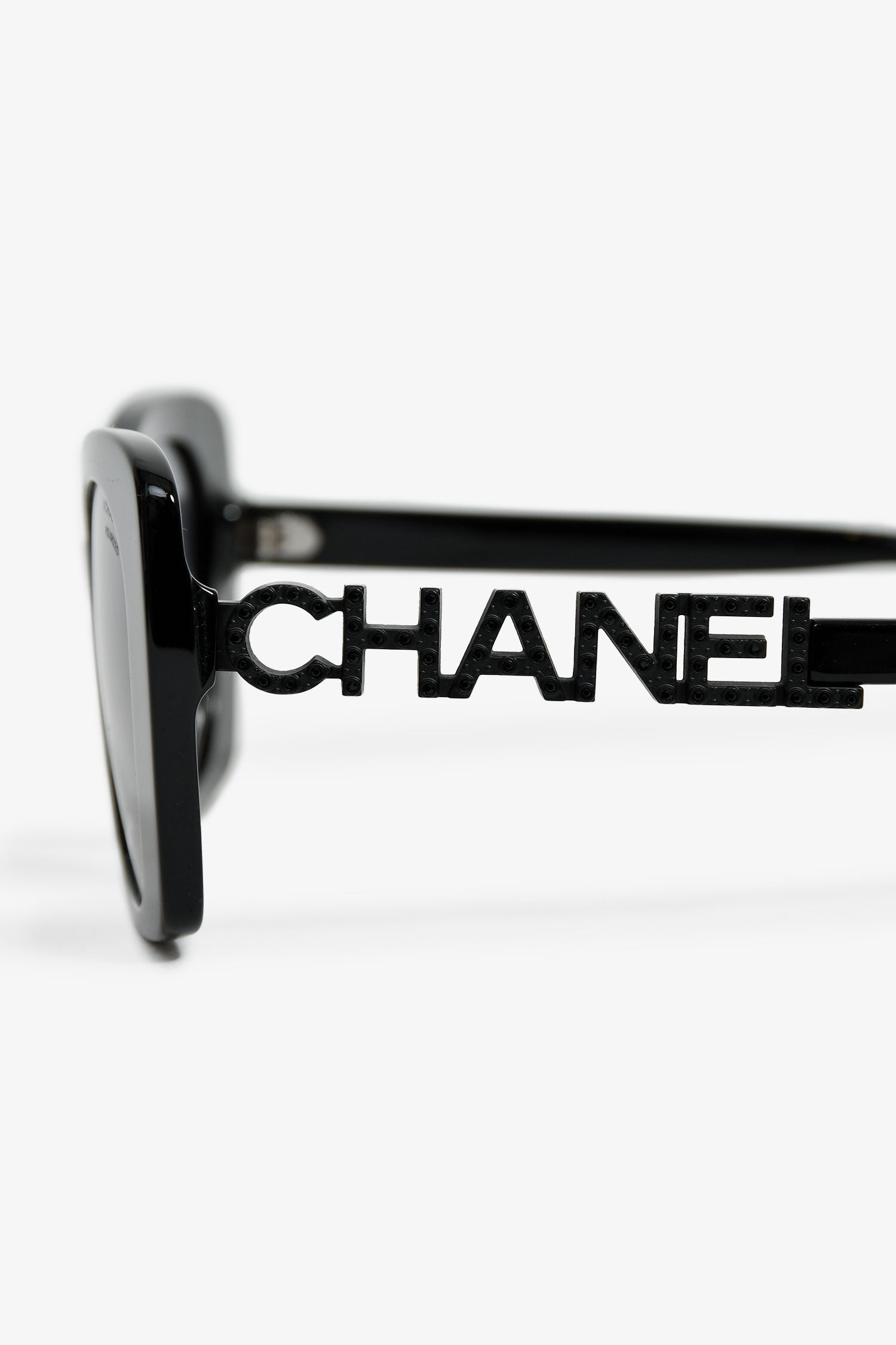 Pre-Loved Chanel™ Black Acrylic Embellished Logo Sunglasses