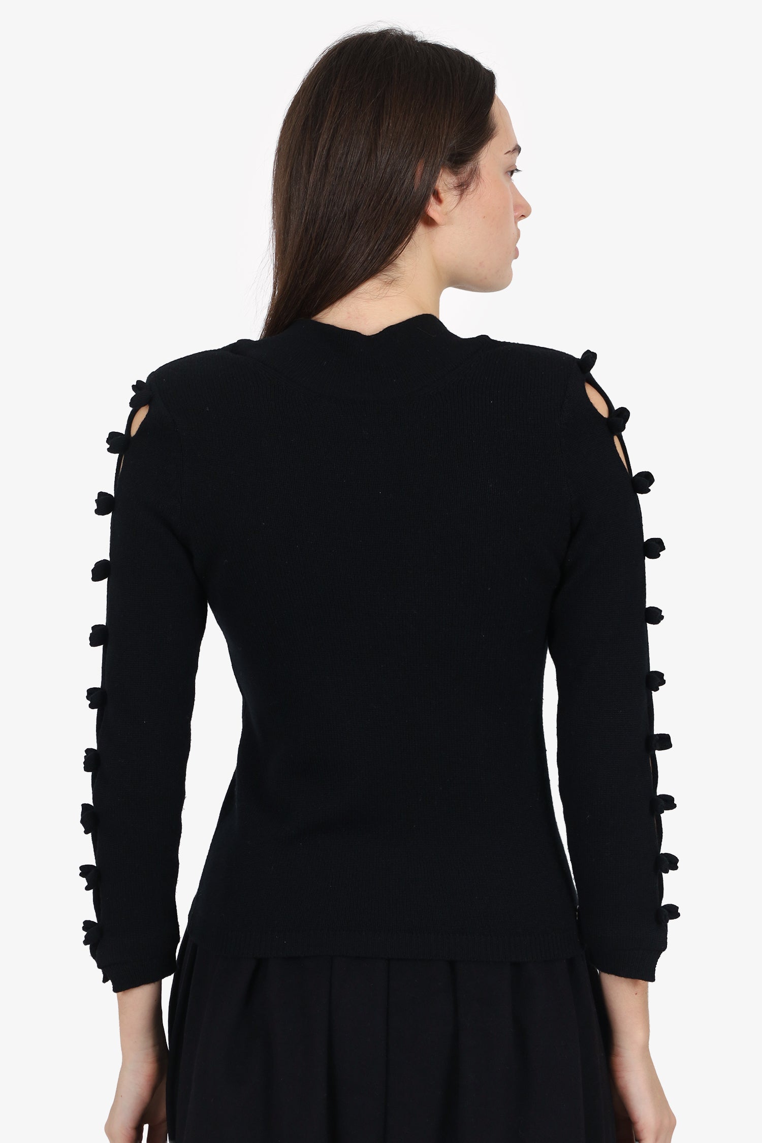 Pre-Loved Chanel™ Black Cashmere Bow Sleeve Sweater Size 36