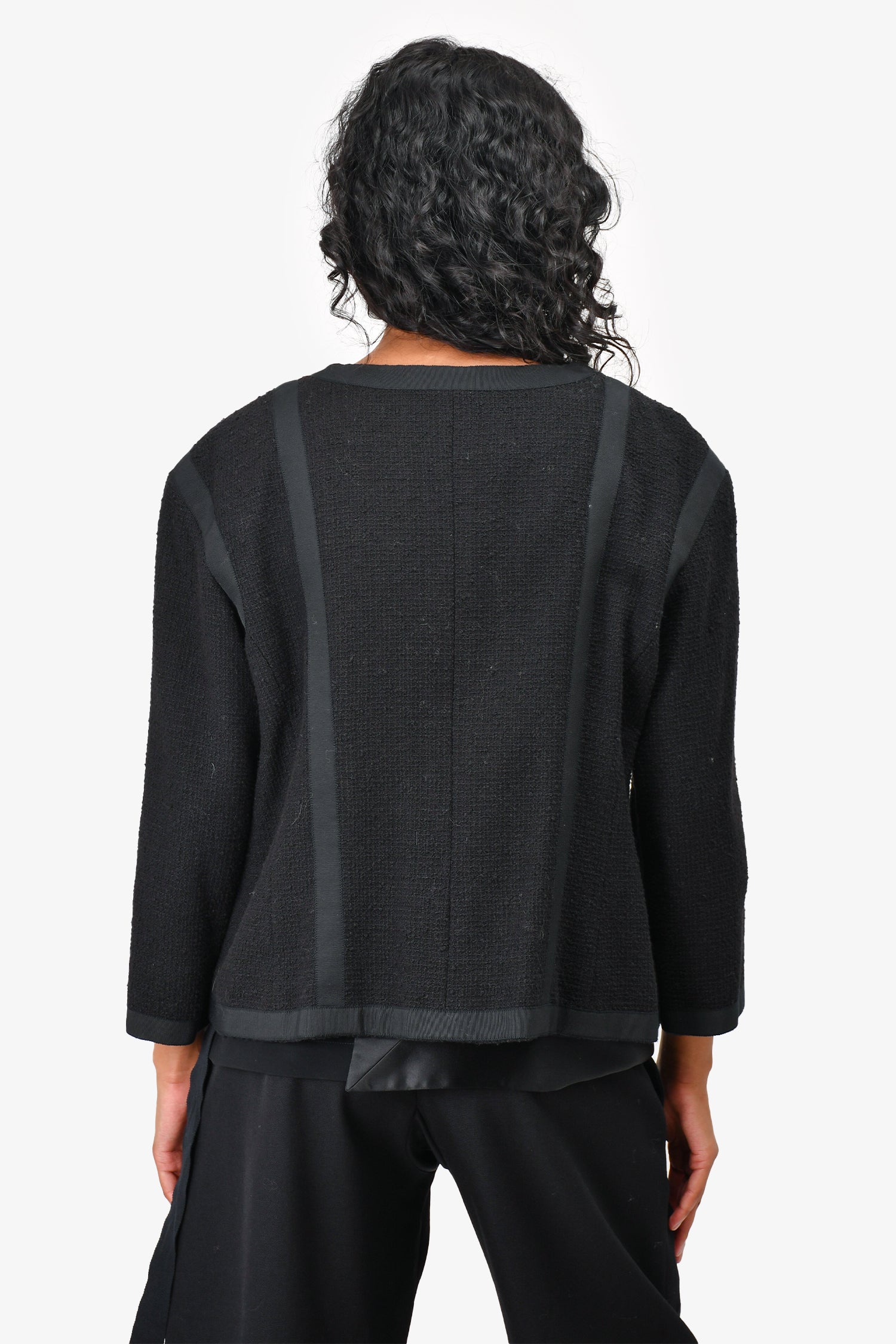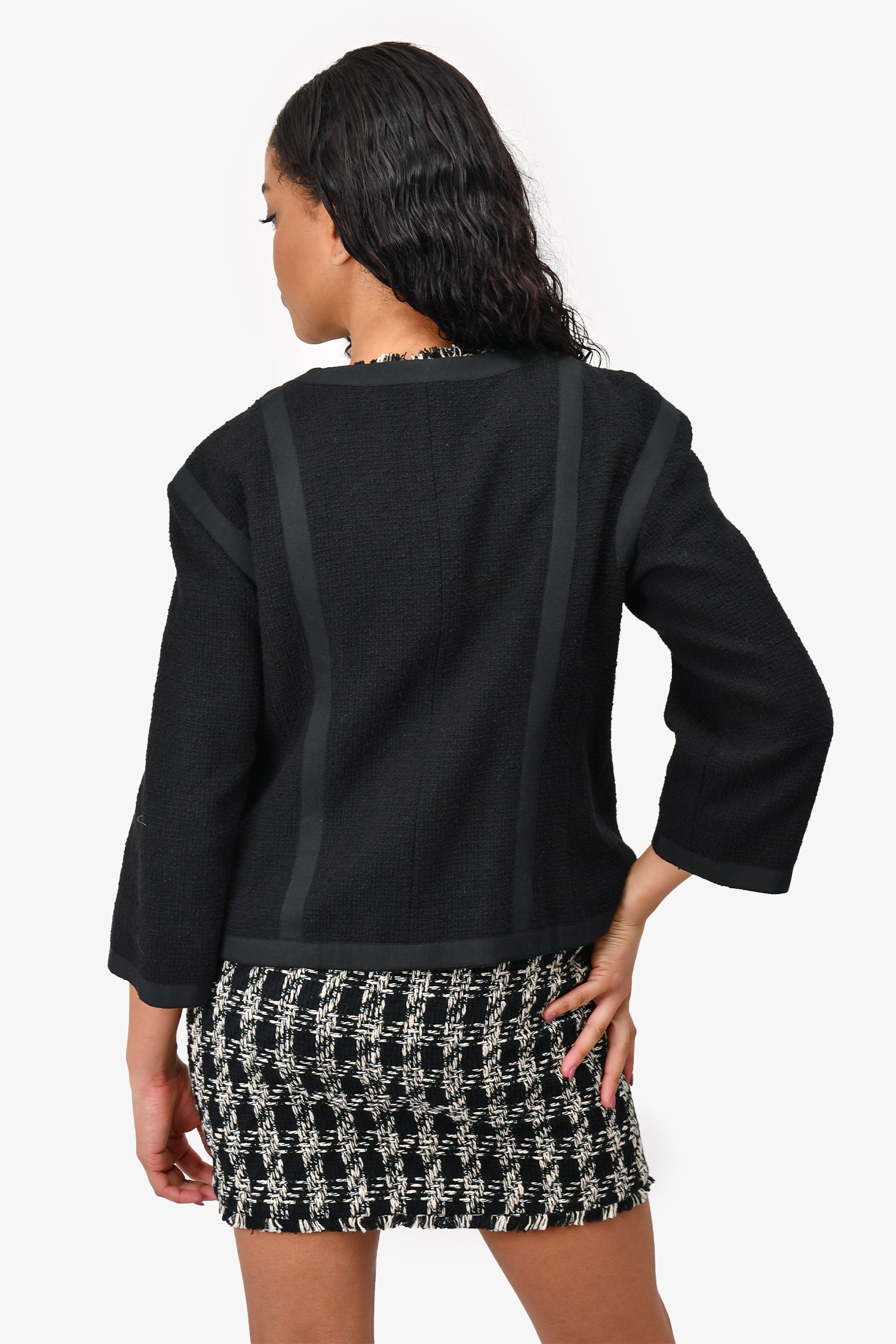 Pre-Loved Chanel™ Black Cotton Gunmetal Buttoned 'Timeless' Jacket Size 44