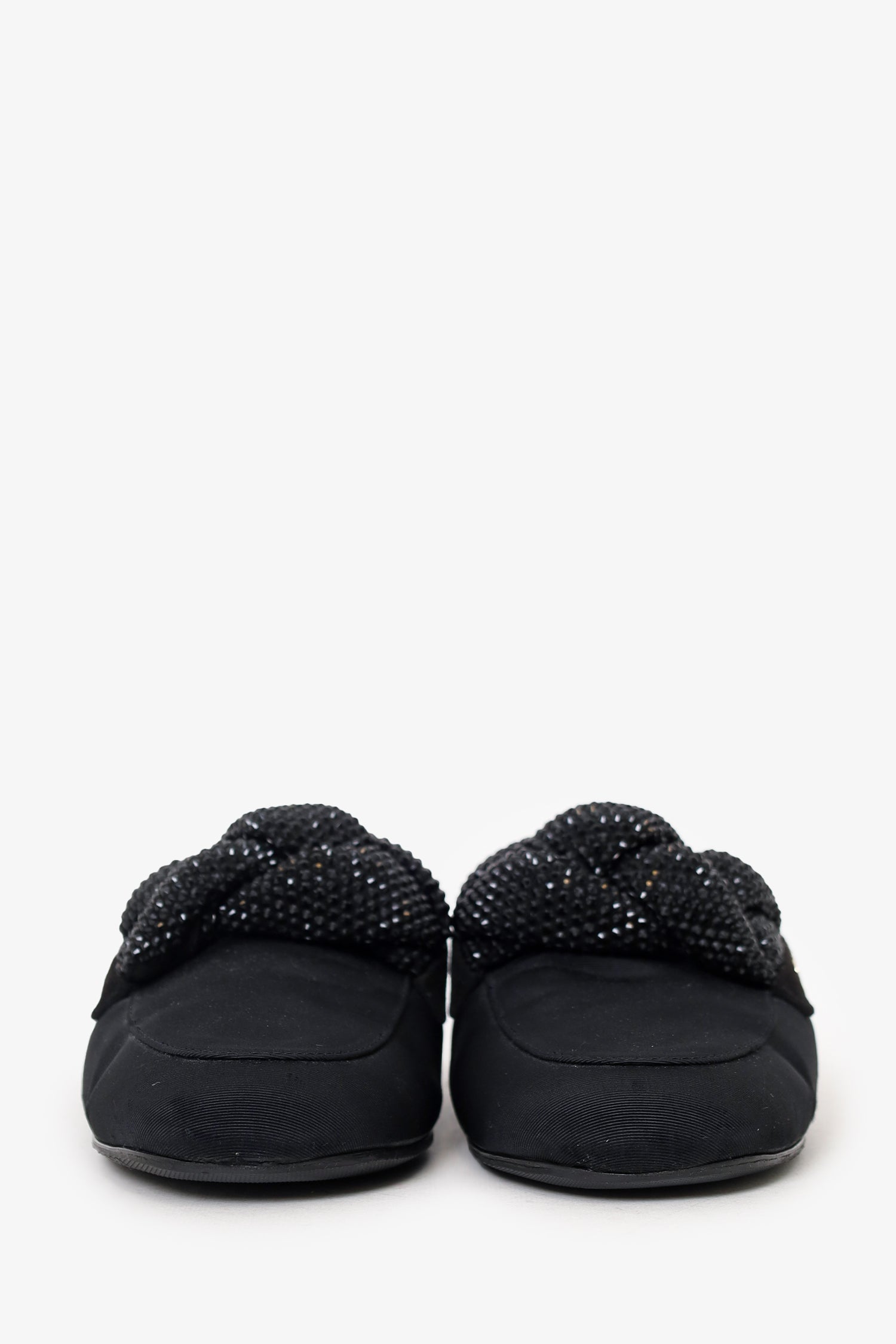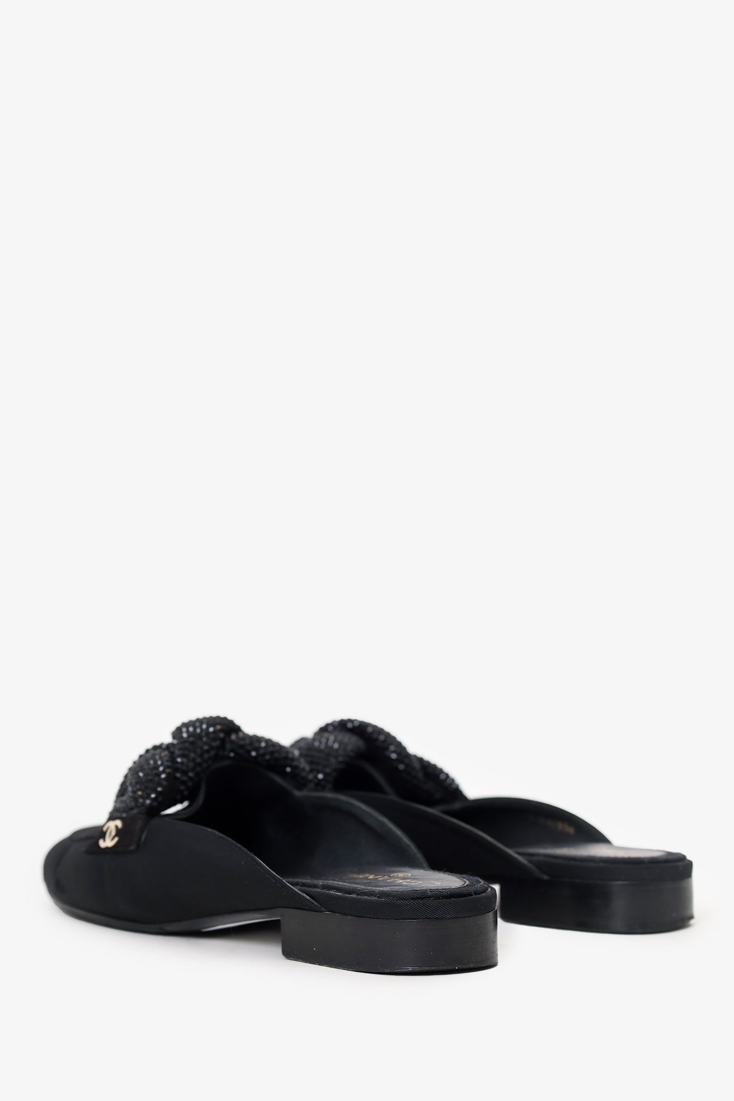 Pre-Loved Chanel™ Black Crystal Embellished Braid Detailed Mules Size 38.5 (As Is)