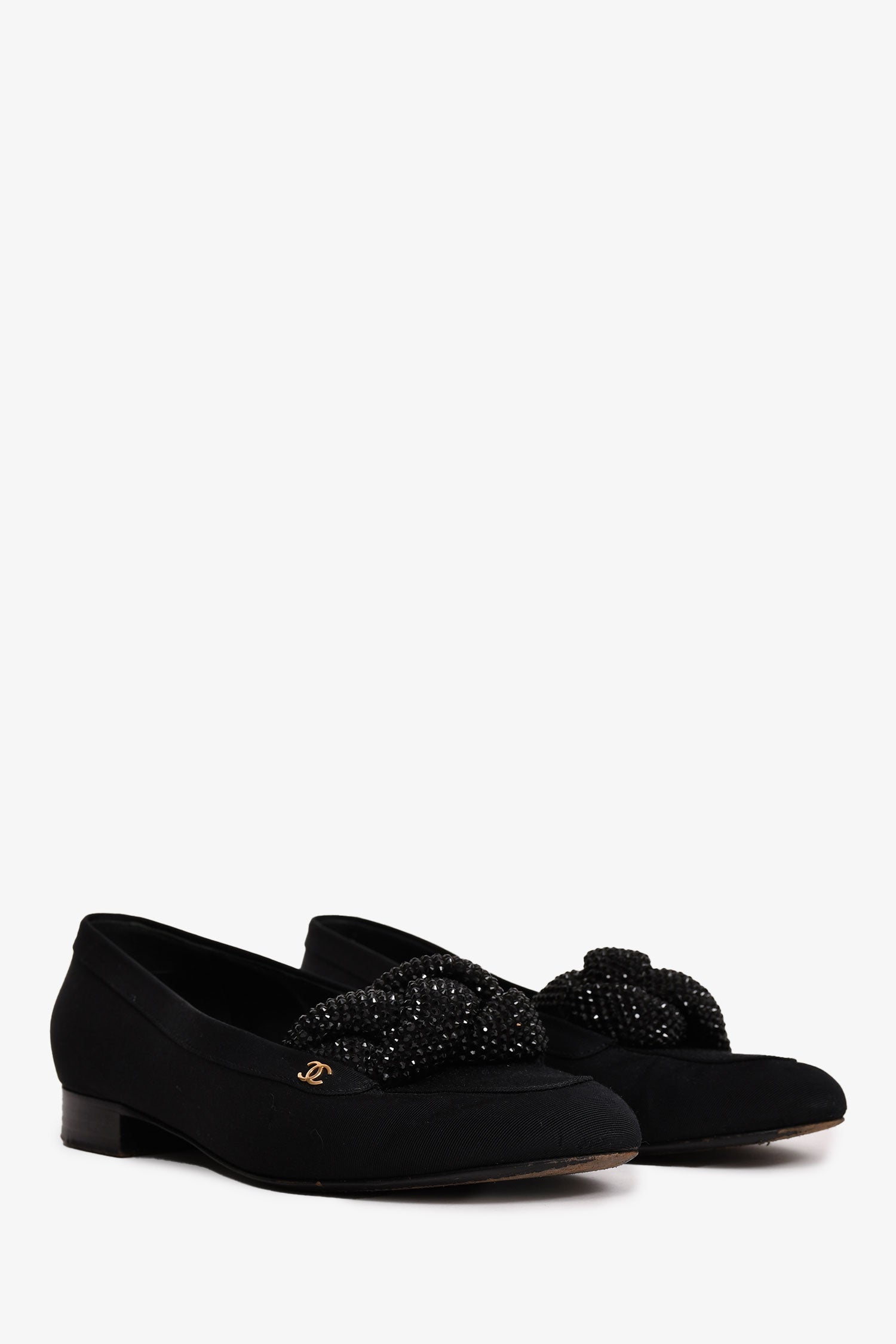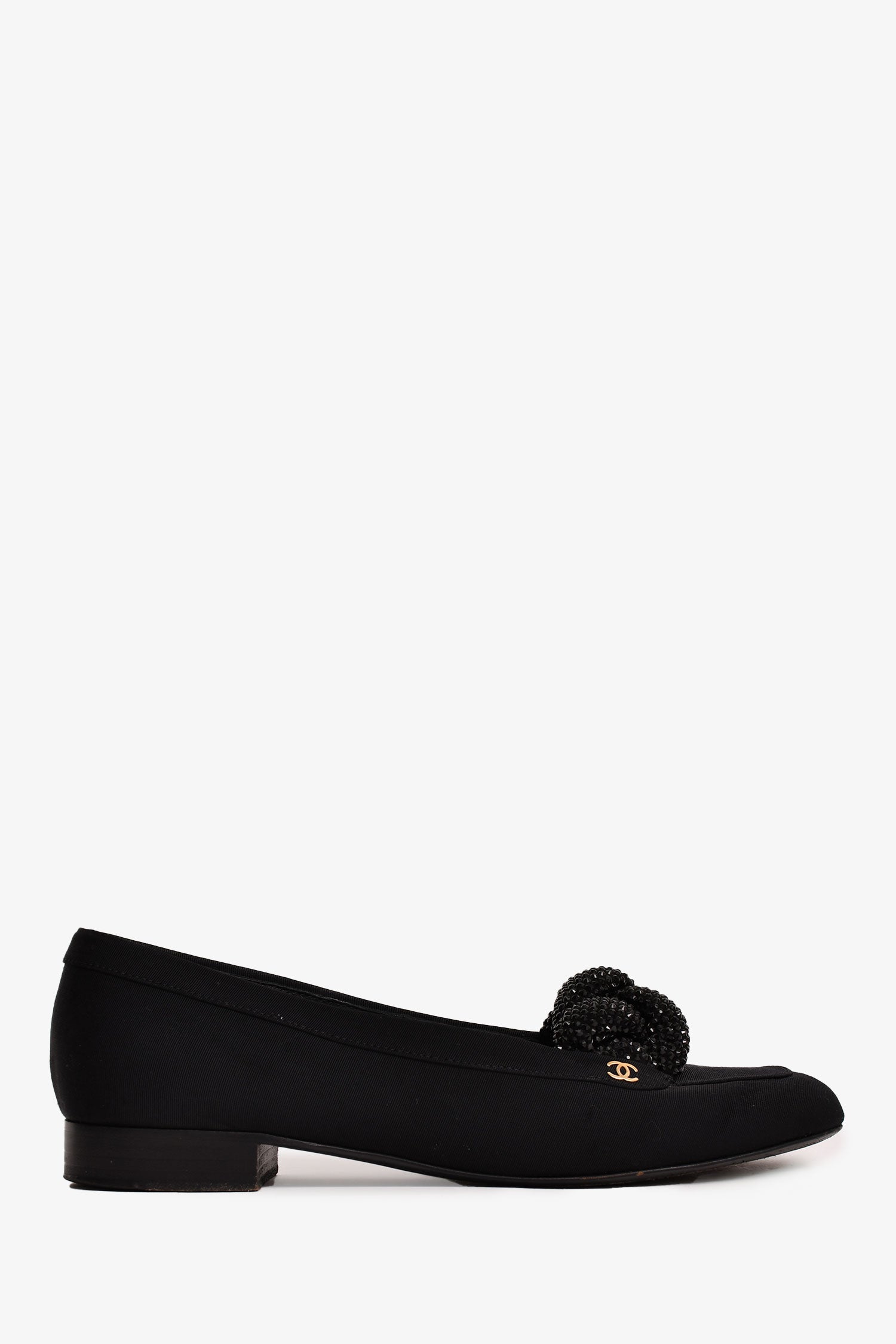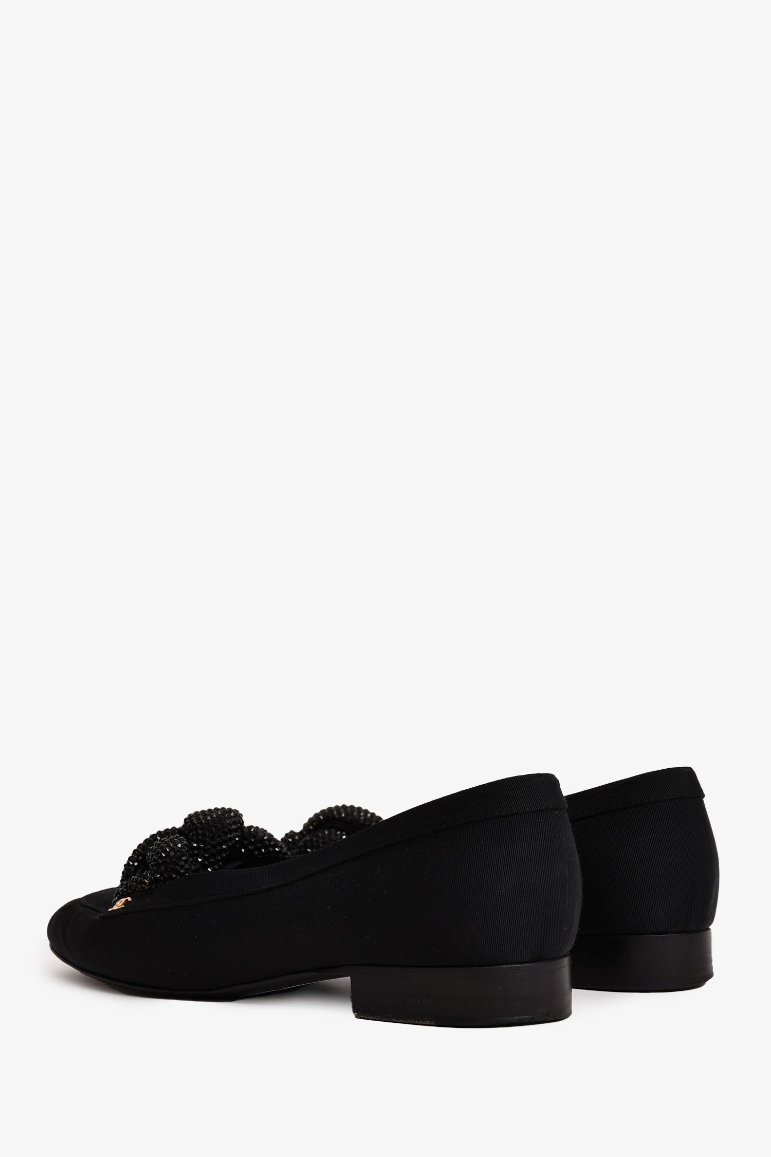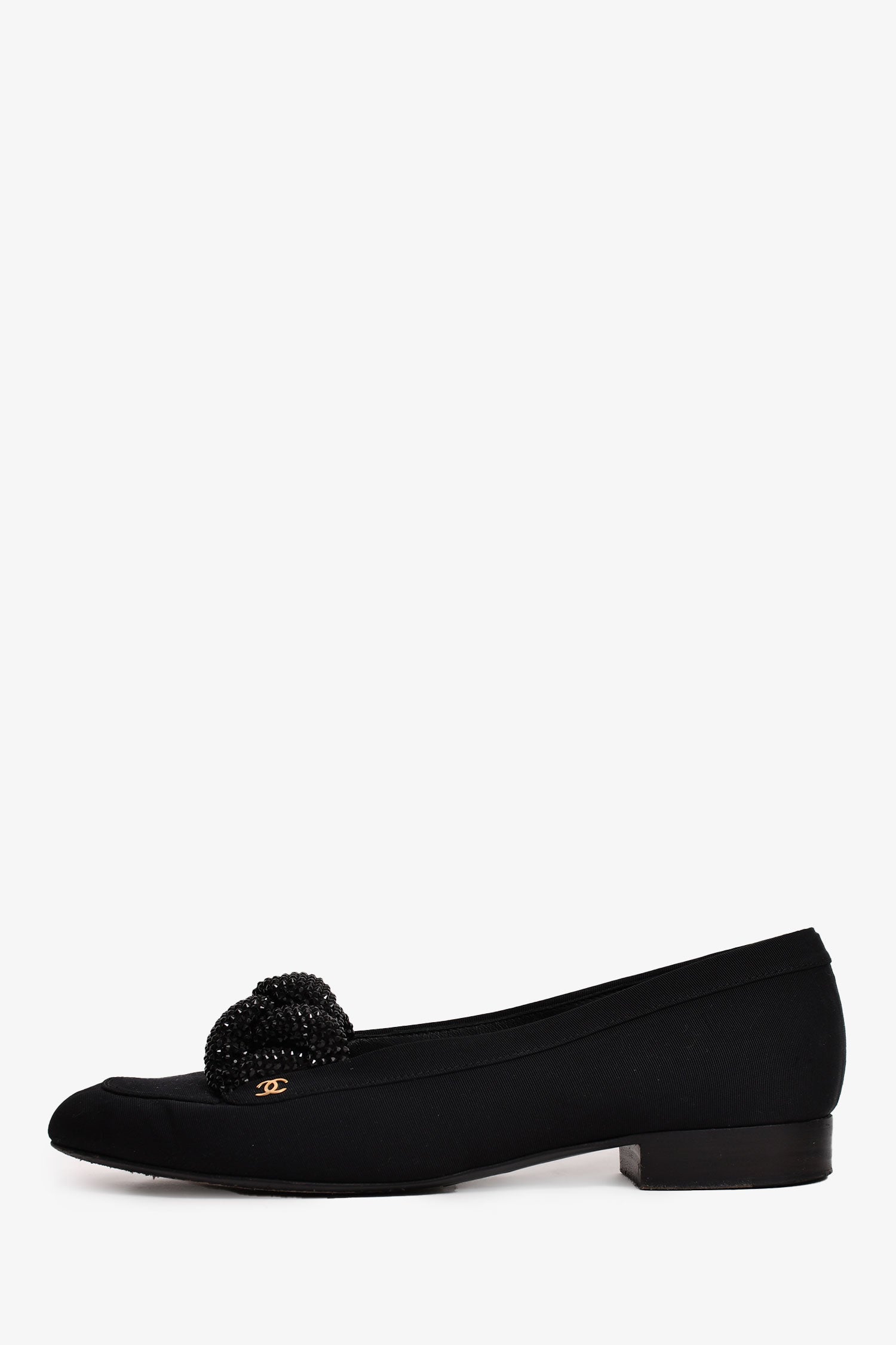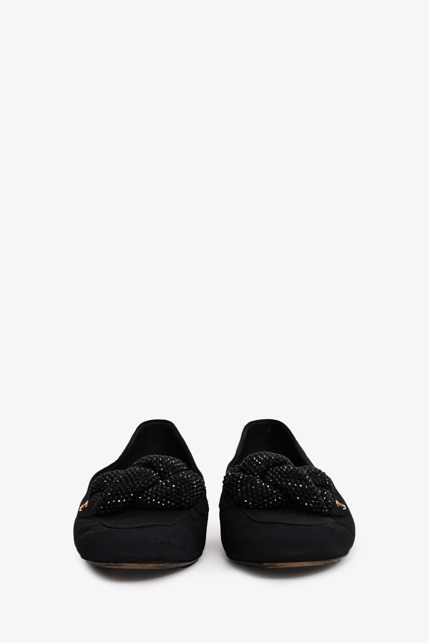 Pre-Loved Chanel™ Black Crystal Knotted Heeled Flats Size 39.5