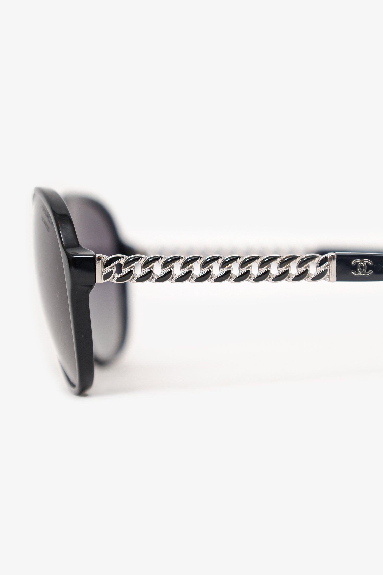 Pre-Loved Chanel™ Black Frame Chain-Link Sunglasses