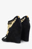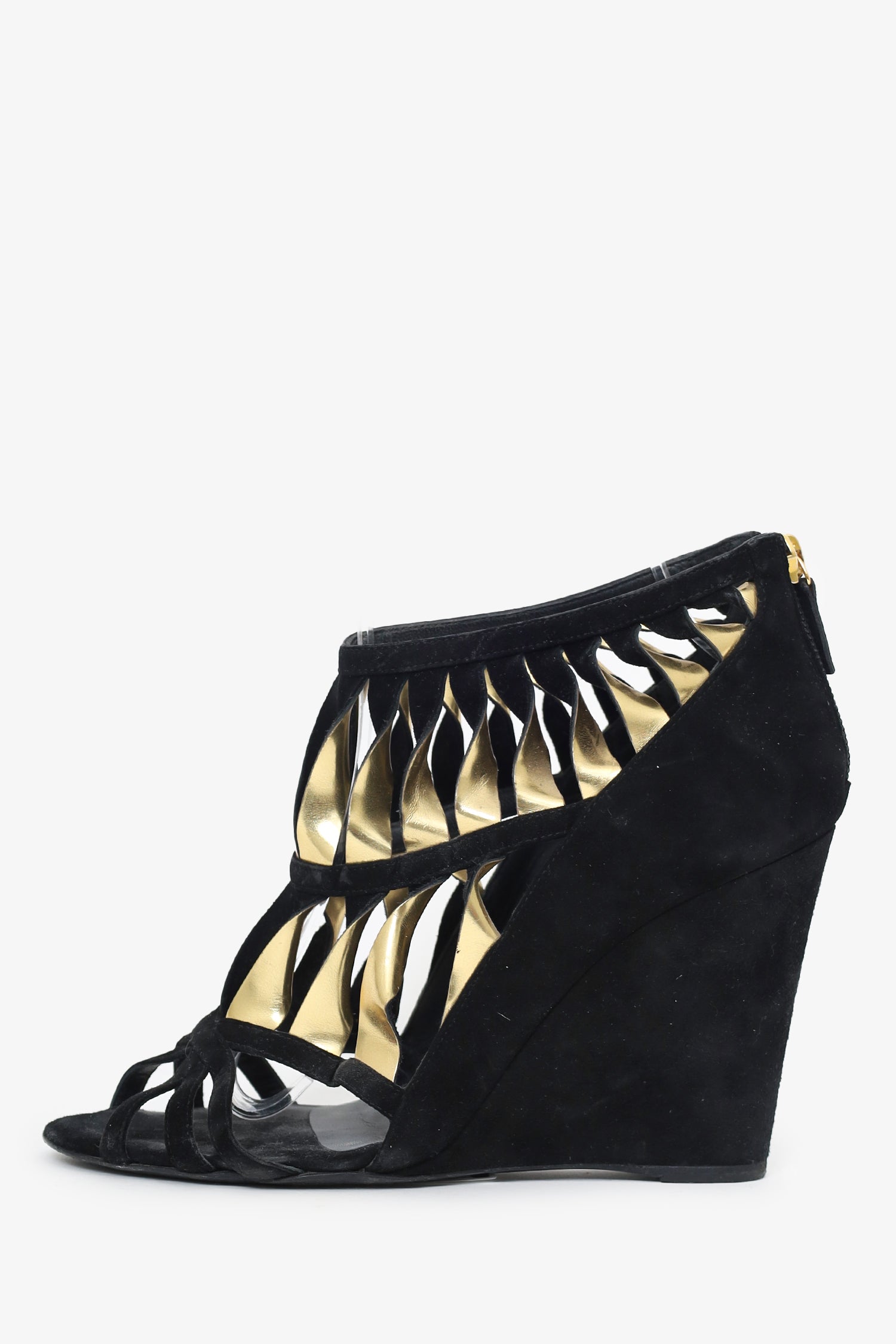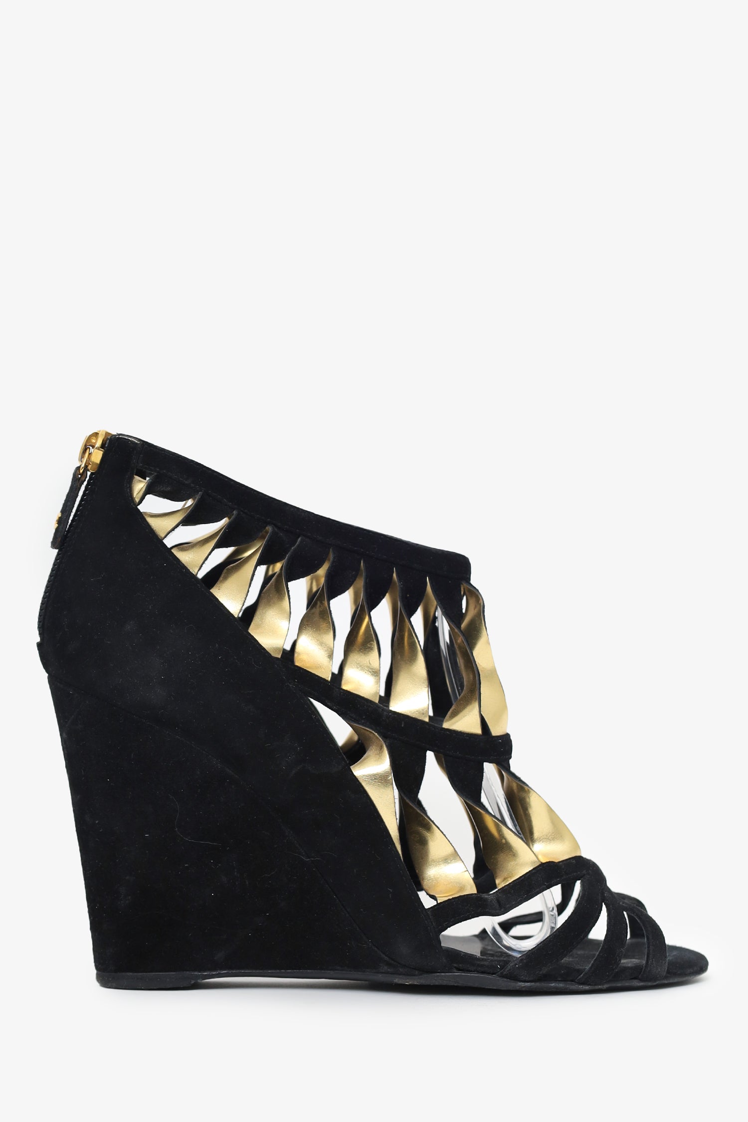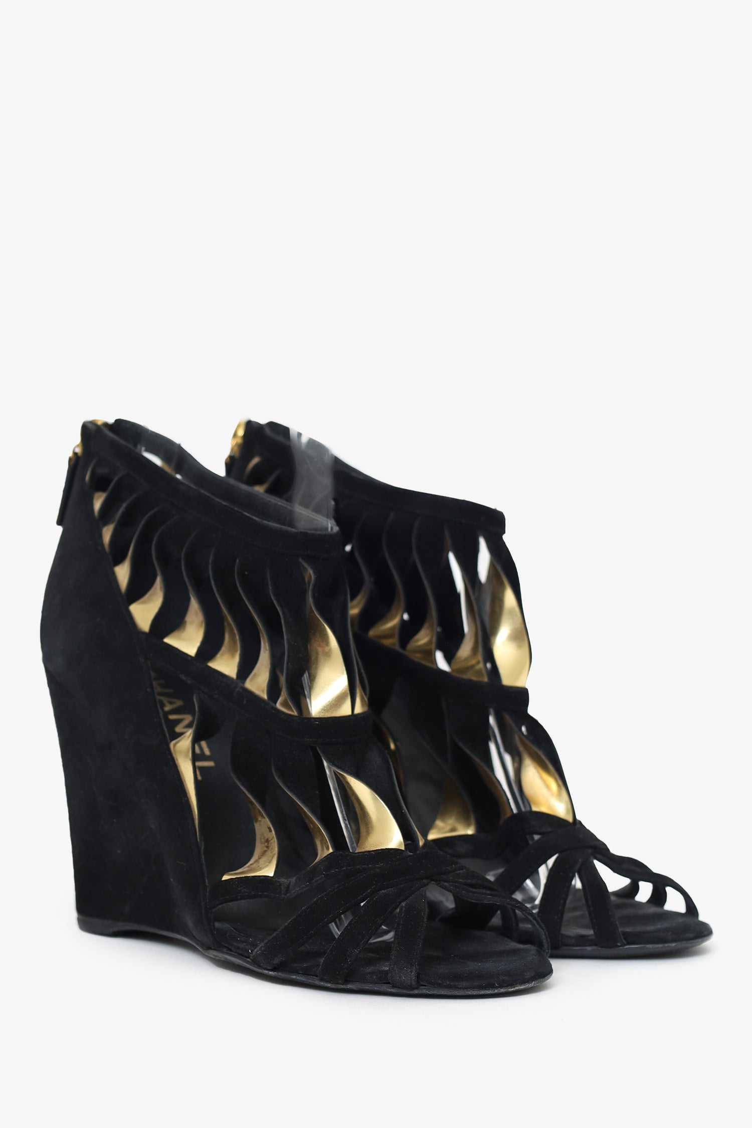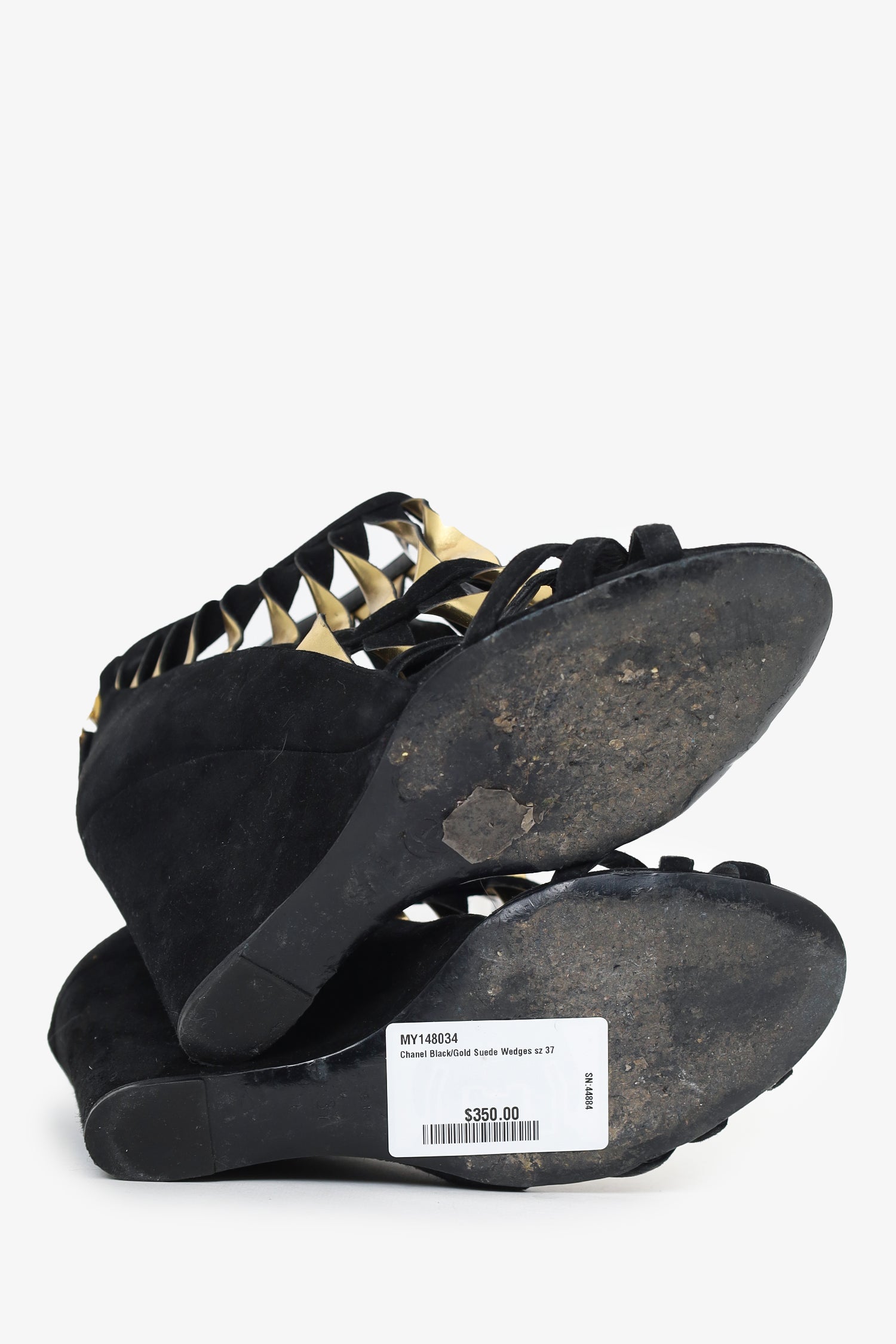 Pre-Loved Chanel™ Black/Gold Suede Wedges Size 37