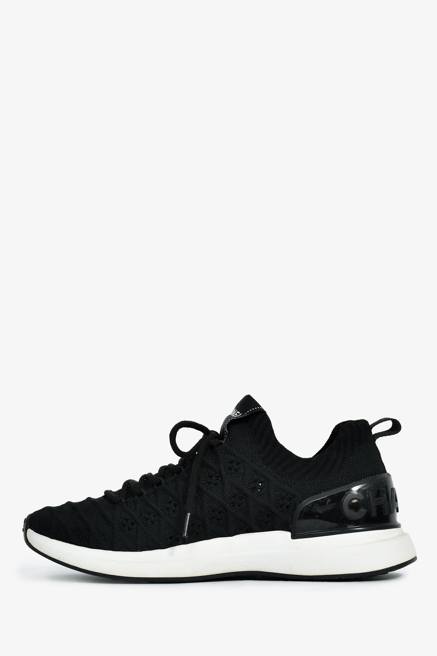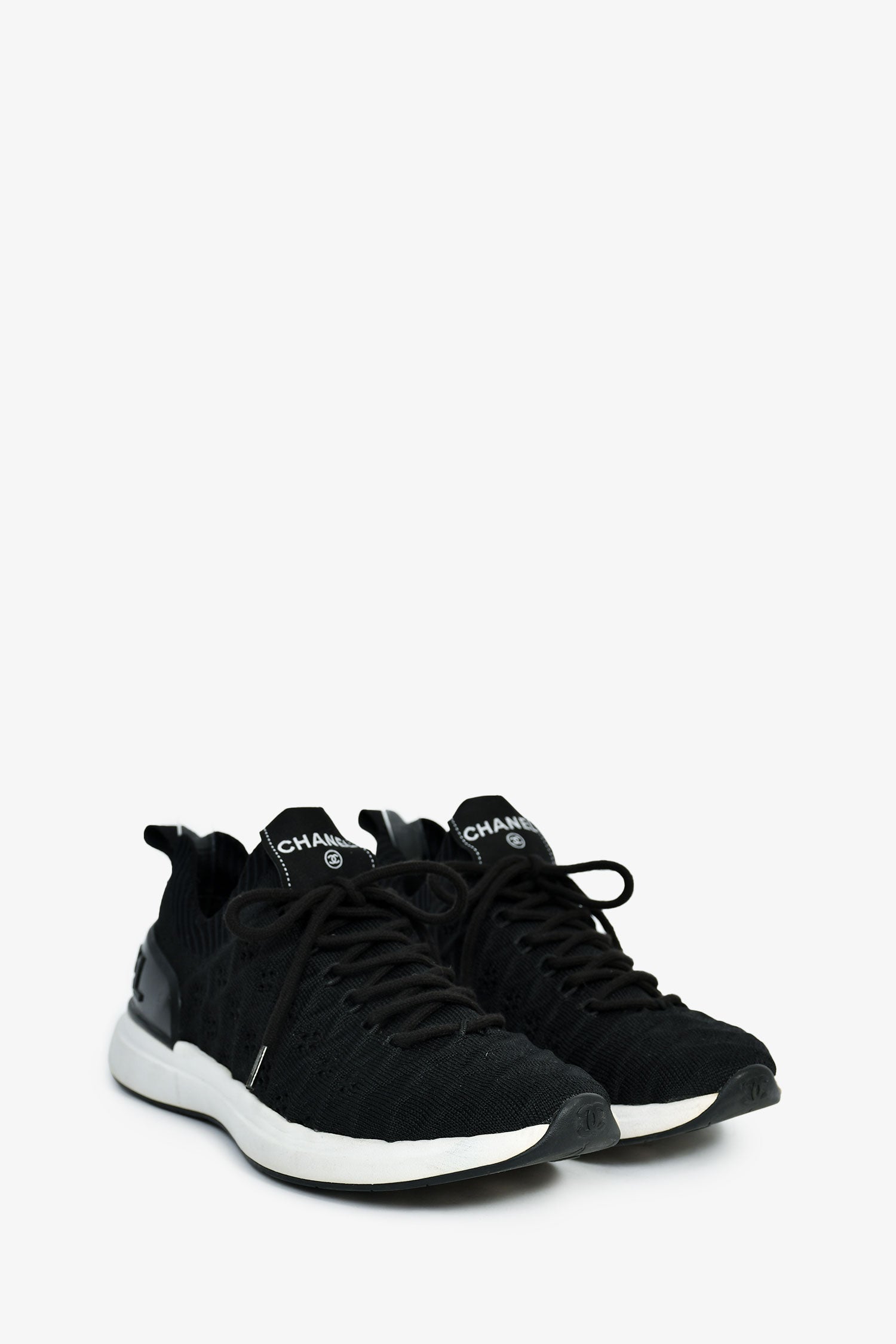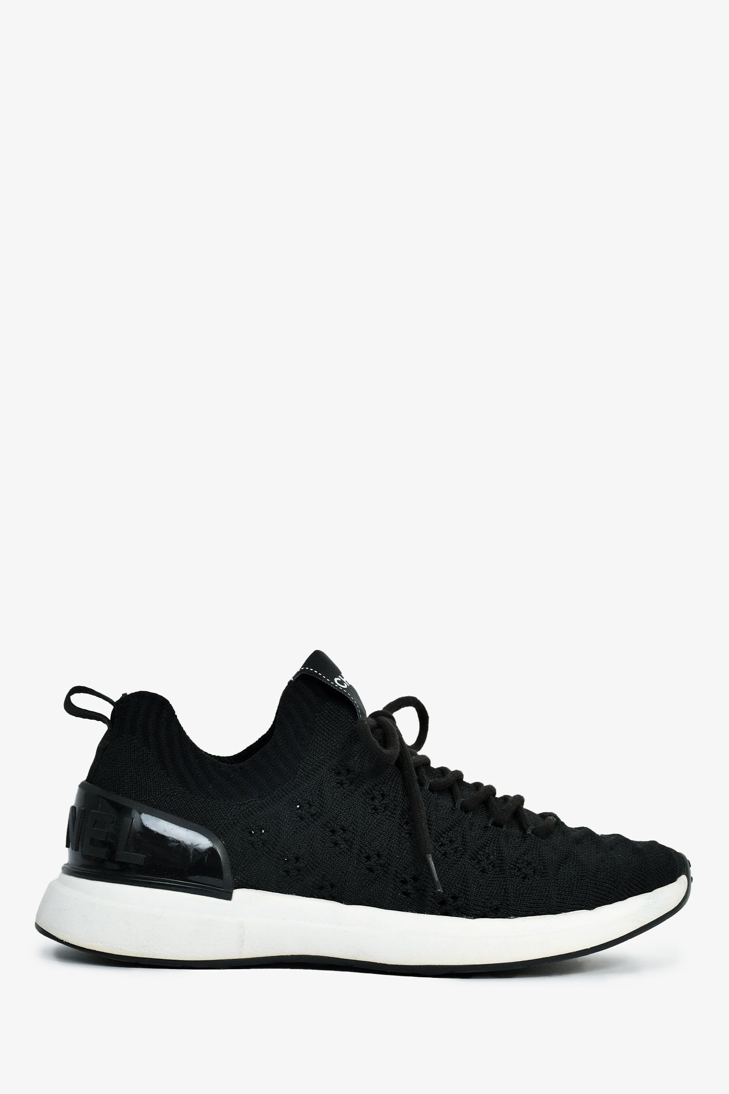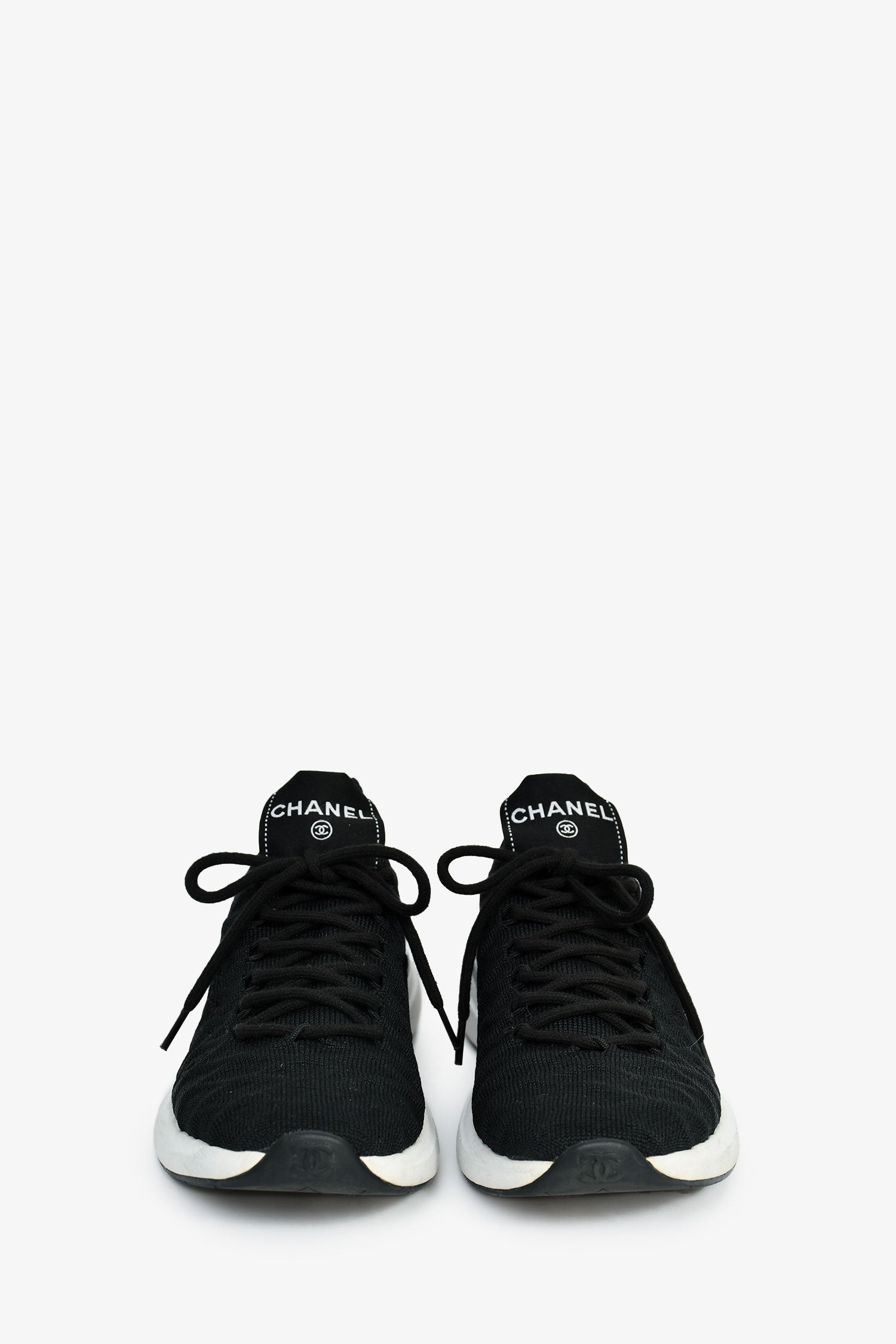 Pre-Loved Chanel™ Black Knit Logo Sneakers Size 36