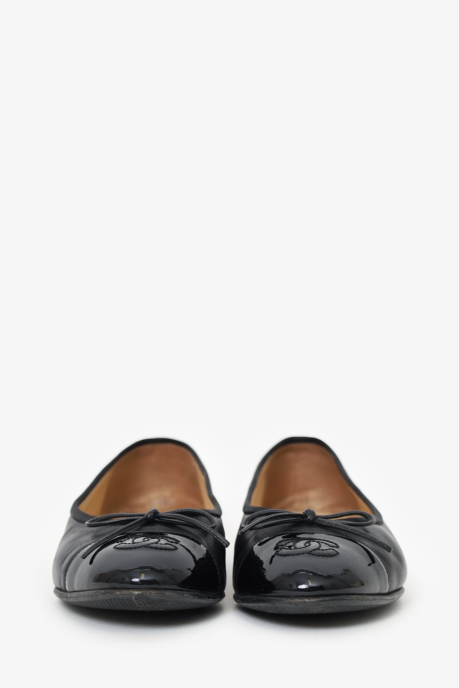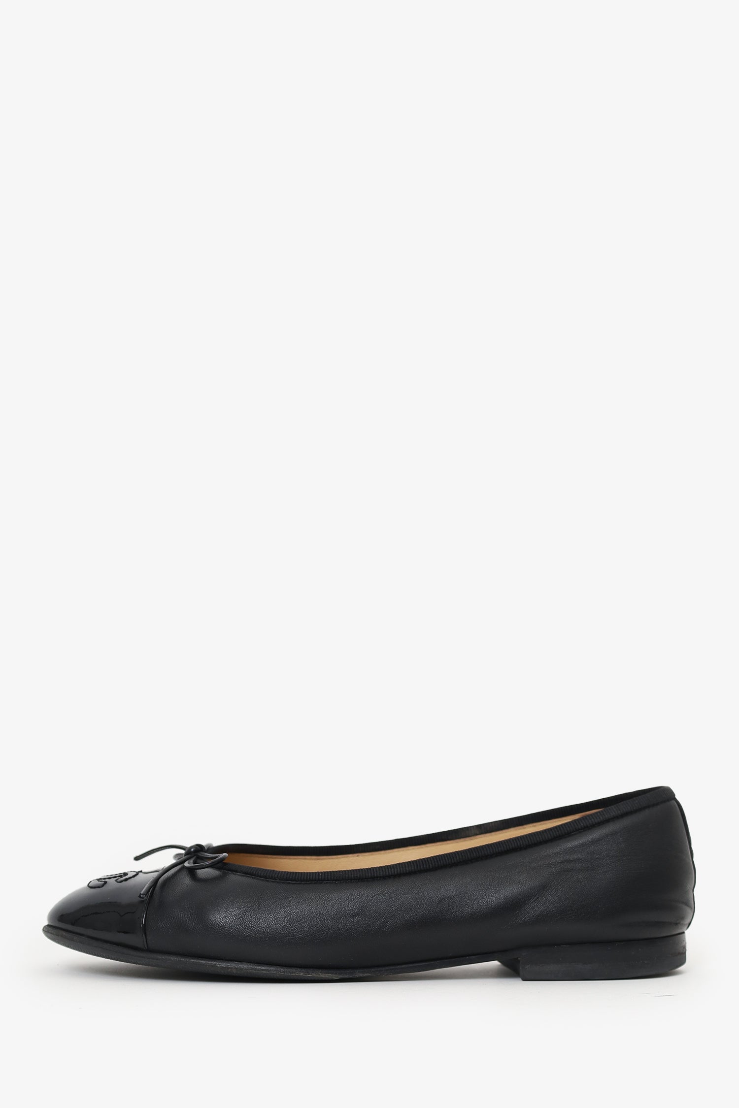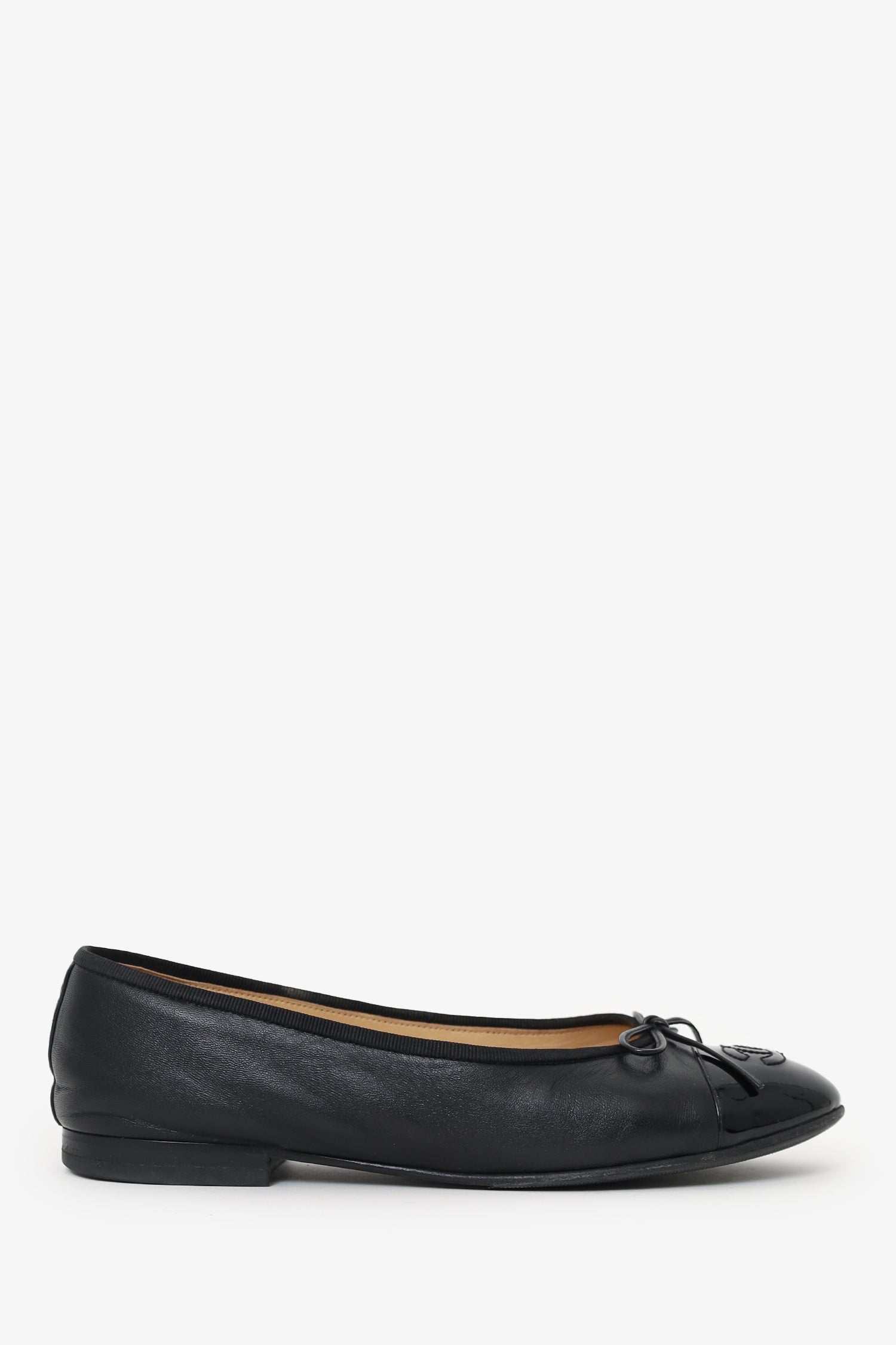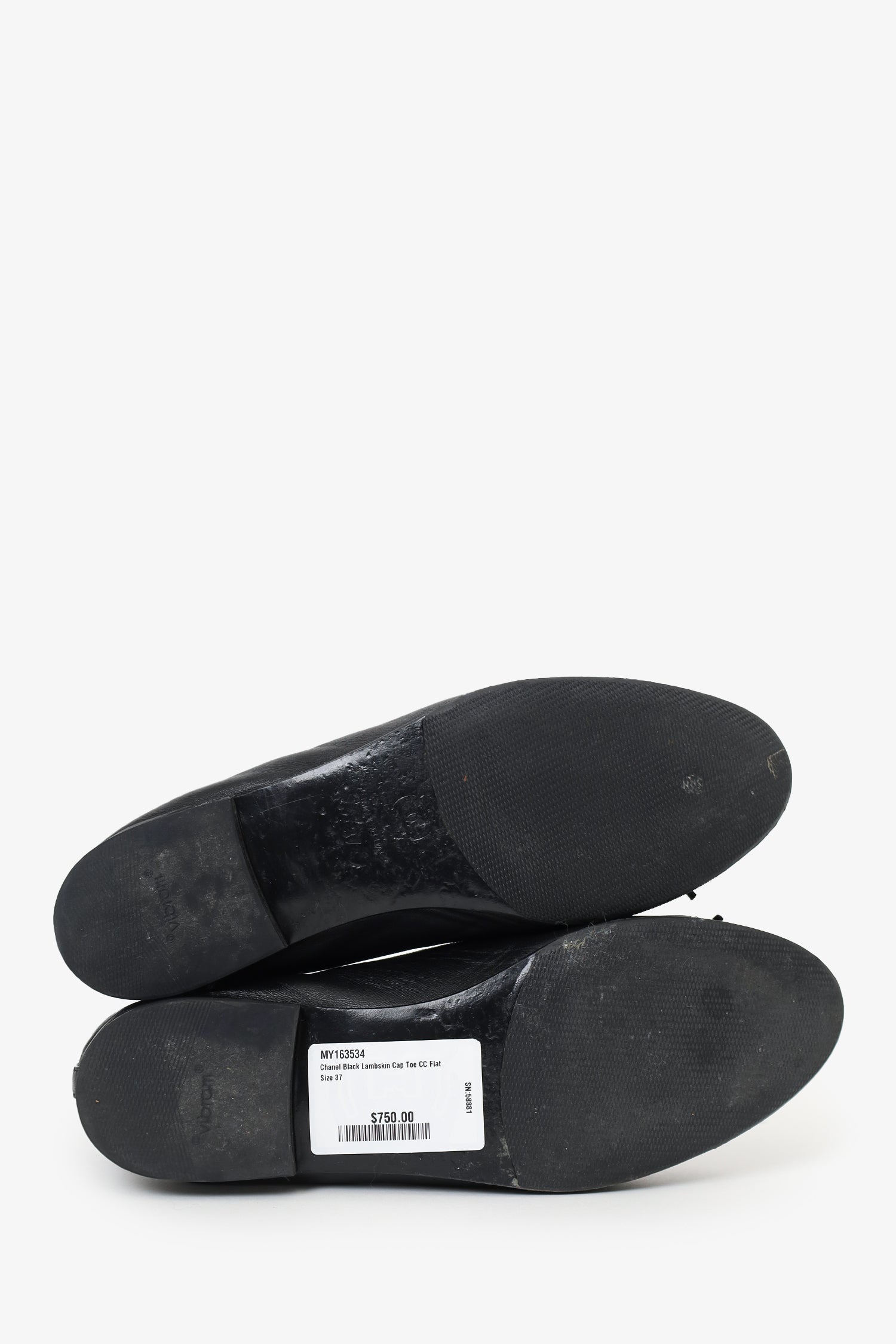 Pre-Loved Chanel™ Black Lambskin Cap Toe CC Flat Size 37