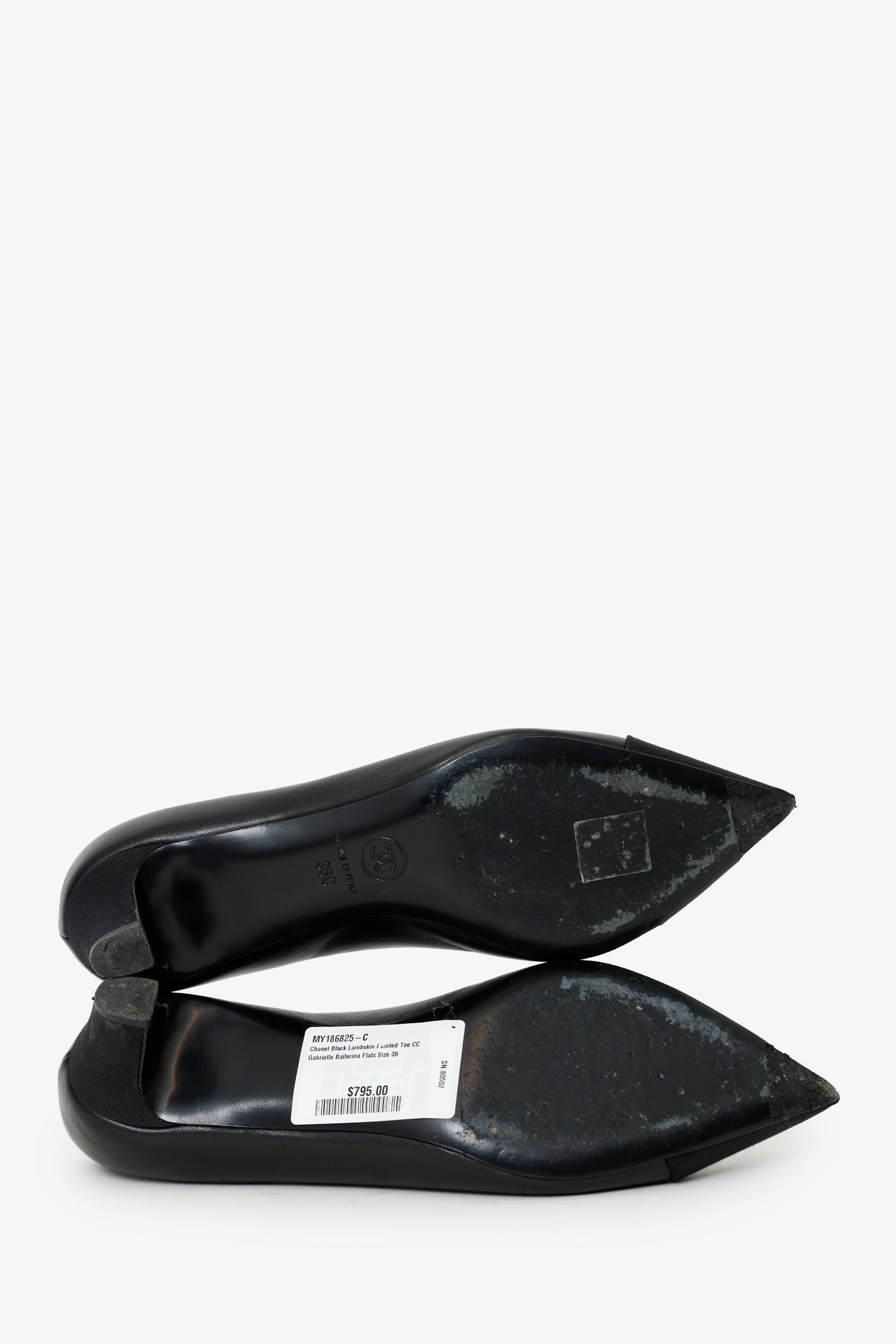 Pre-Loved Chanel™Black Lambskin Pointed Toe CC Gabrielle Ballerina Flats Size 36