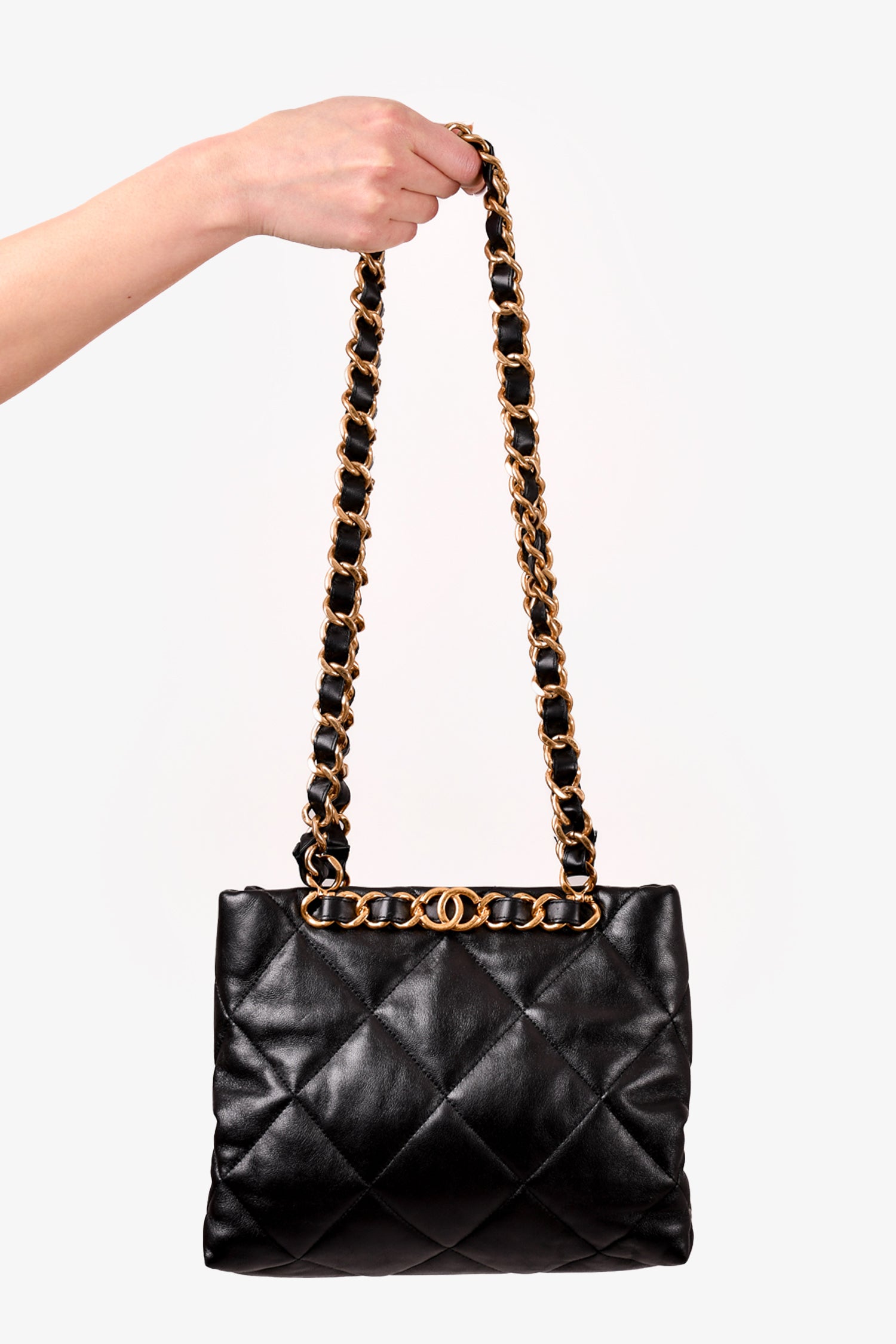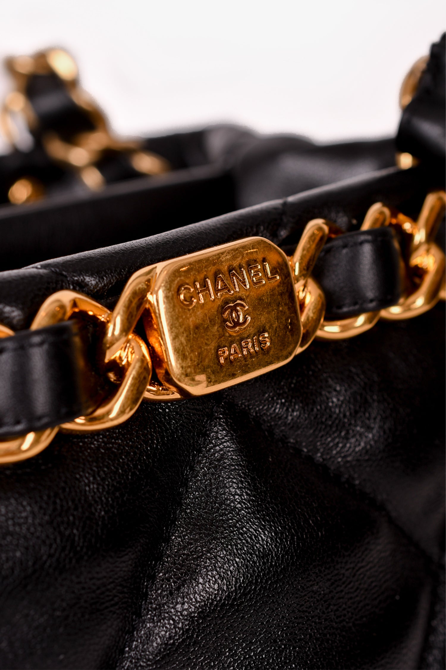 Pre-loved Chanel™ Black Lambskin Quilted Small Shopping Shoulder Bag