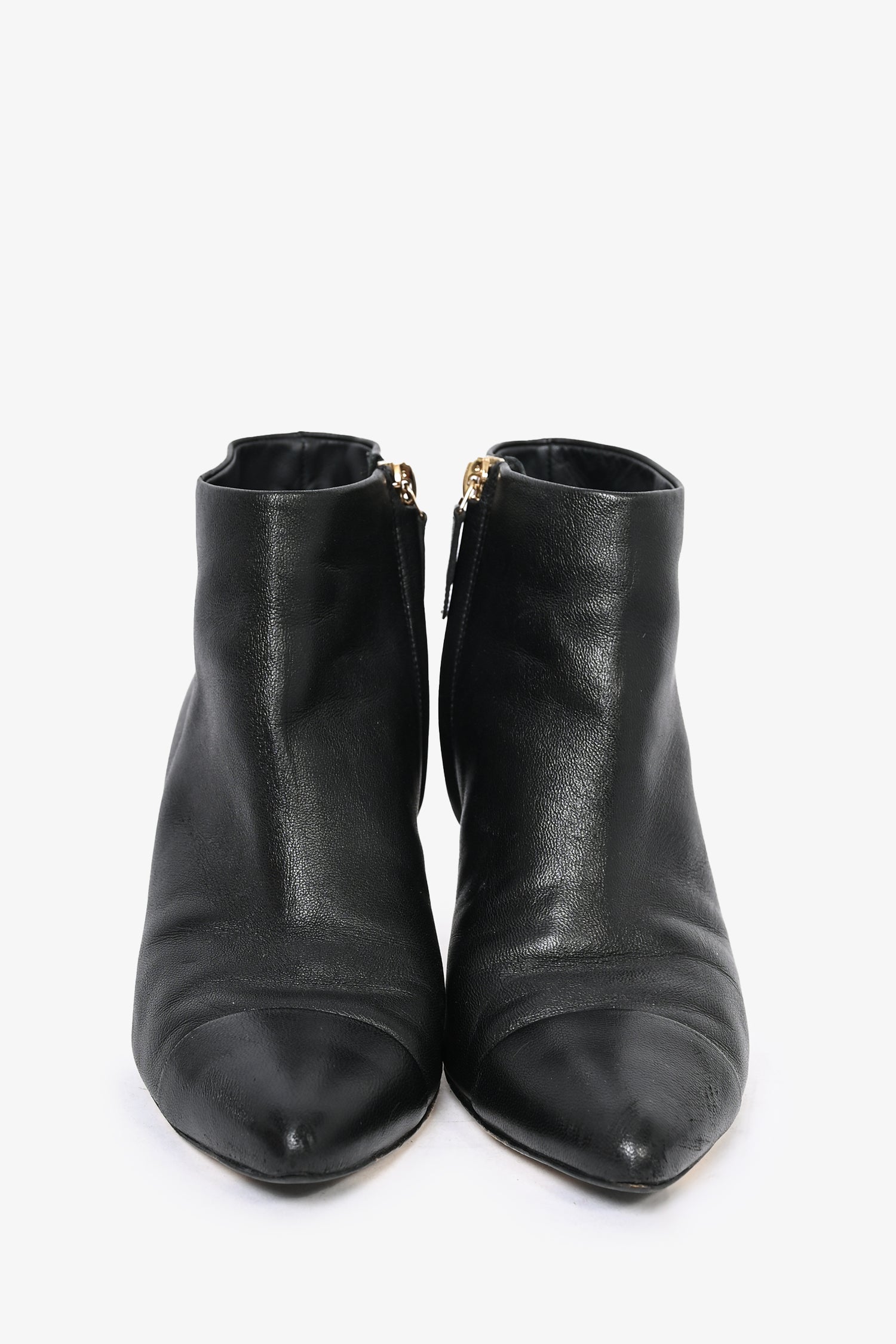 Pre-Loved Chanel™ Black Leather CC Pearl Kitten Heel Ankle Boots Size 35.5