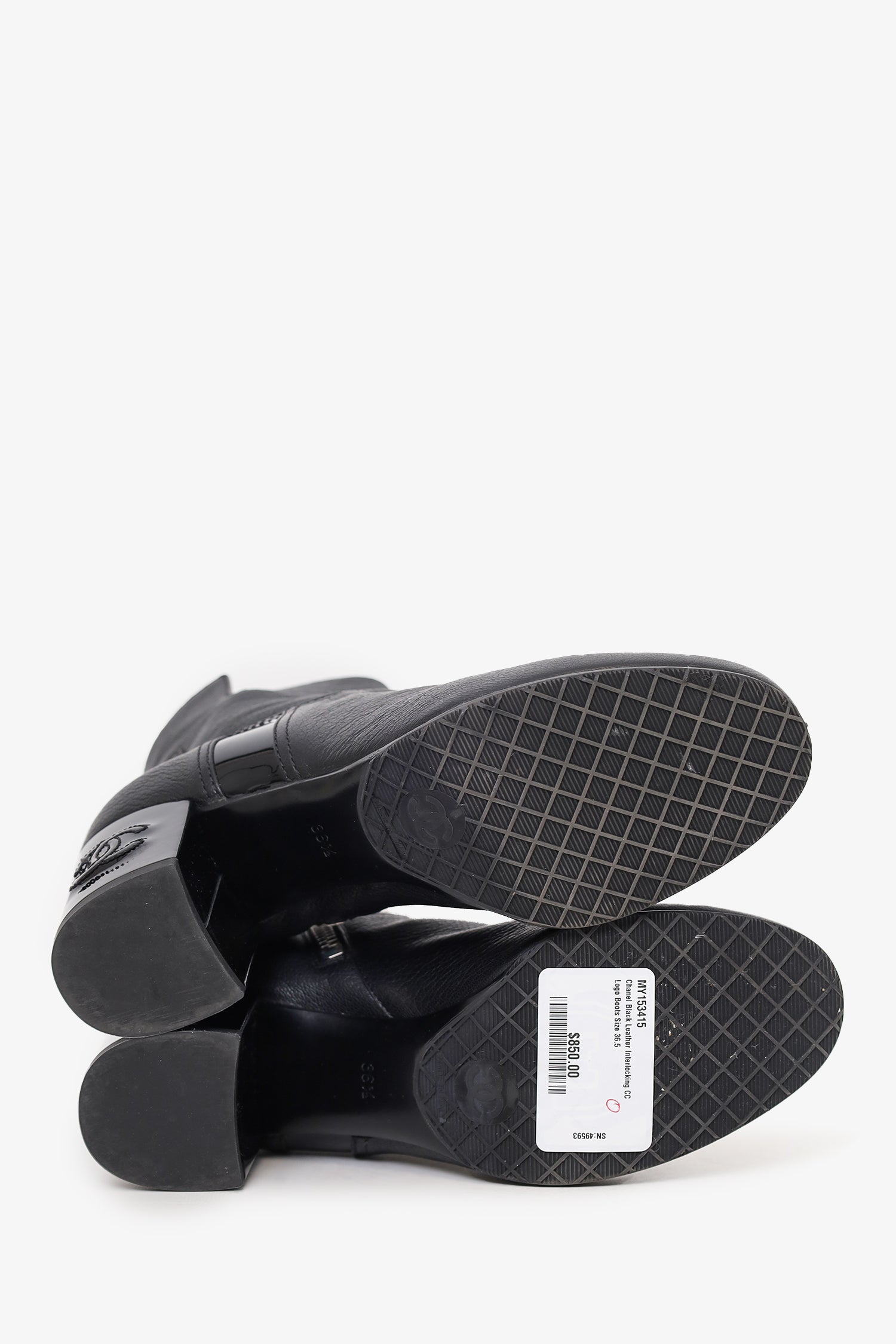 Pre-loved Chanel™ Black Leather Interlocking CC Logo Boots Size 36.5