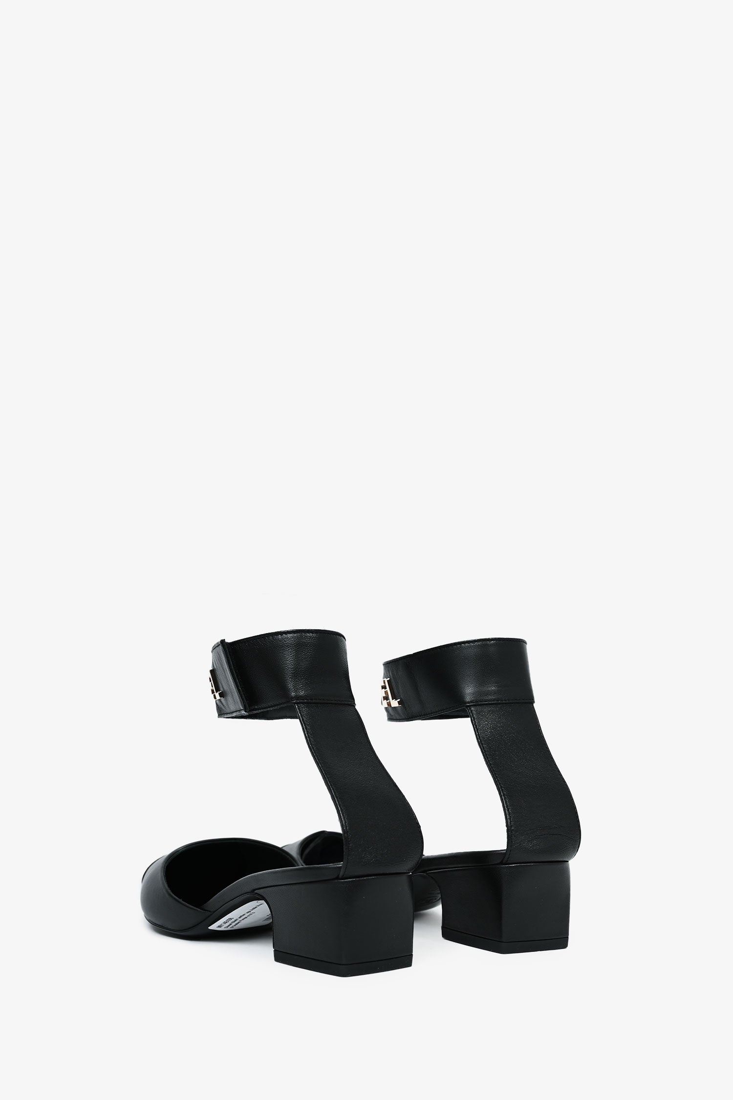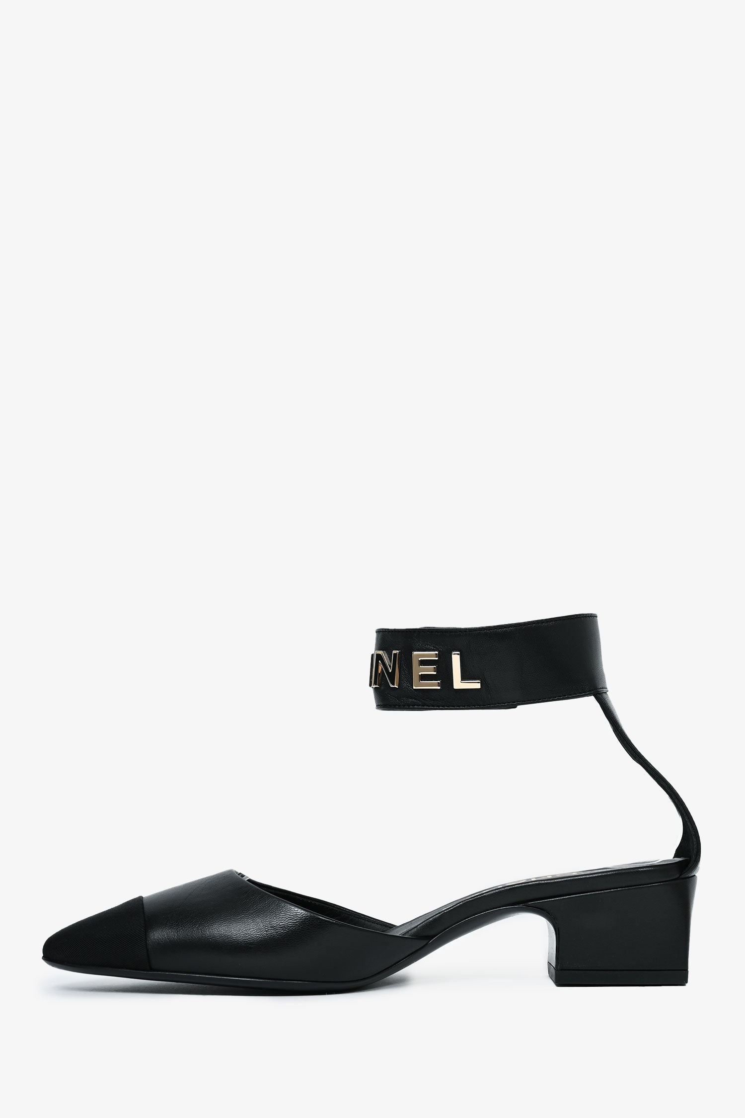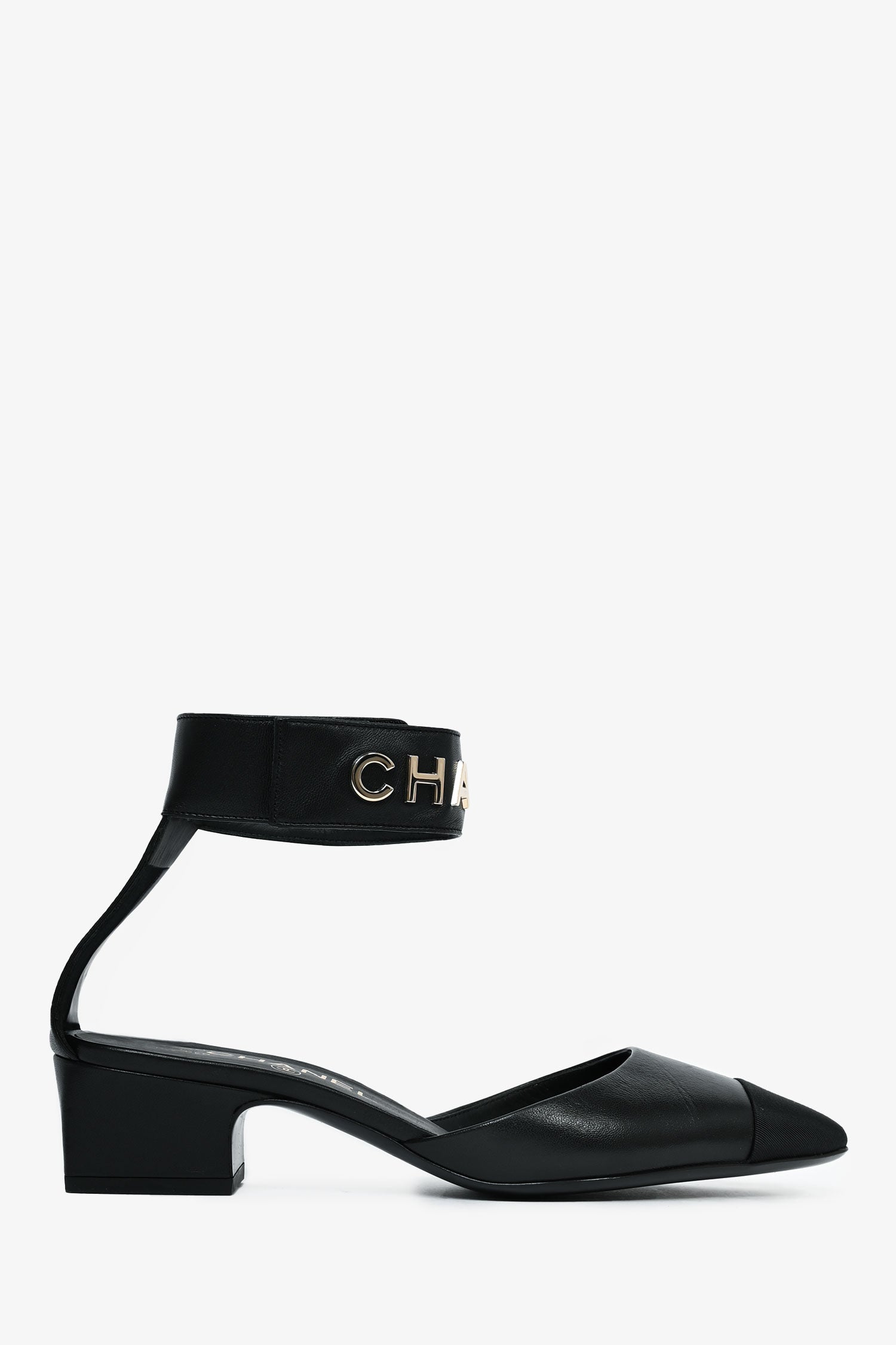 Refresh availabilityPre-Loved Chanel™ Black Leather Logo Ankle Strap D'Orsday Pumps. Grosgrain toe cap. Leather ankle strap with a velcro strip. Tonal stitching.