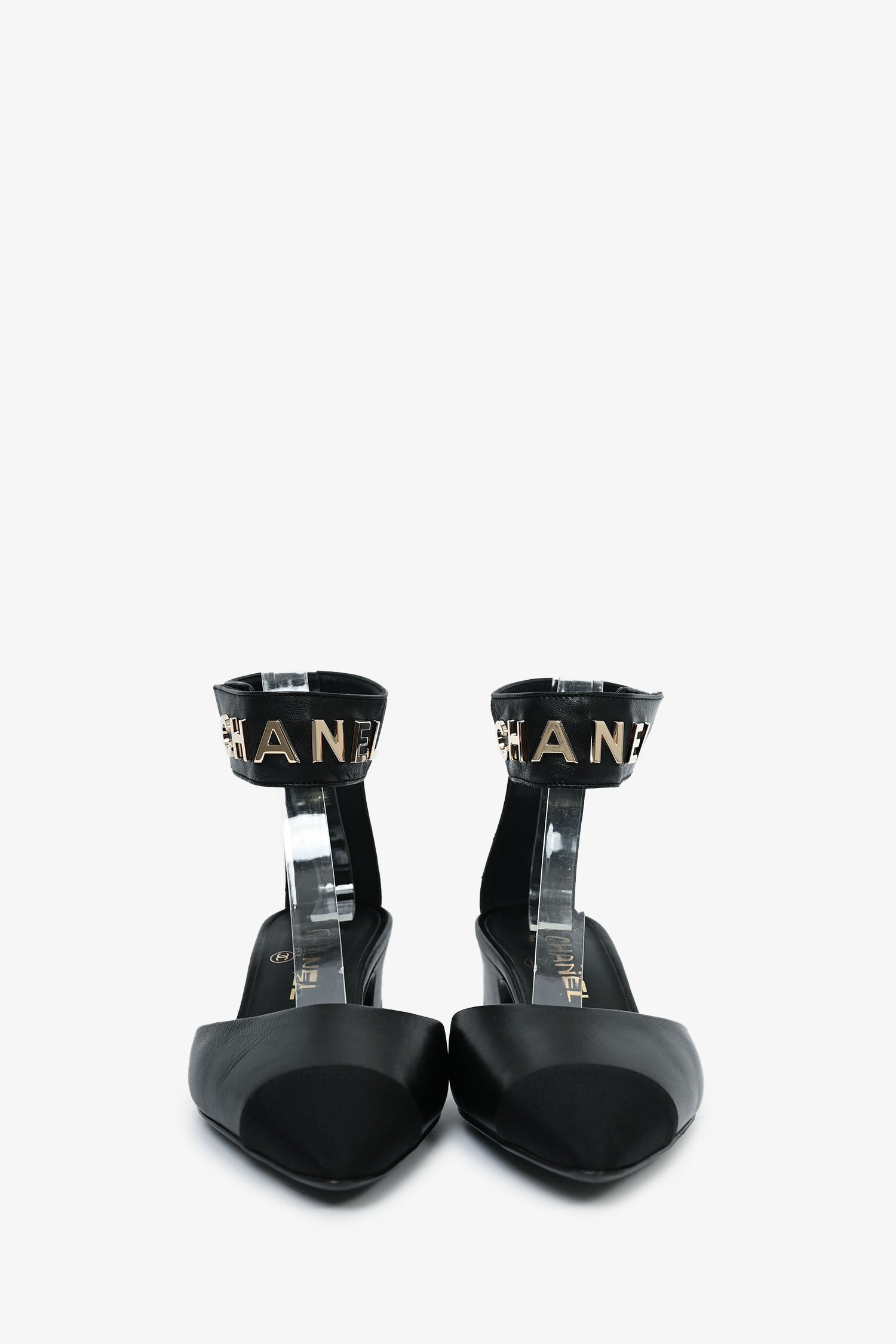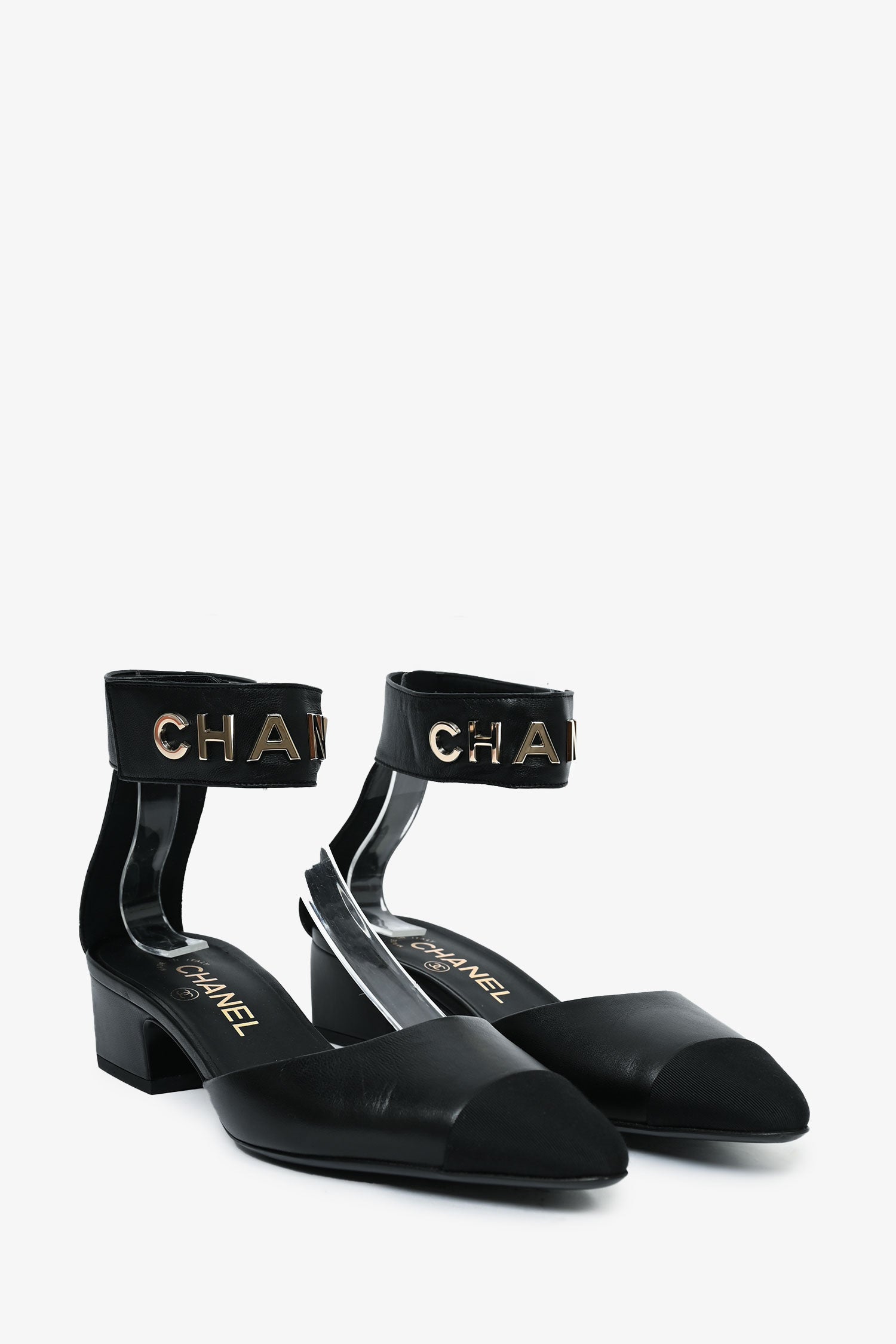 Pre-Loved Chanel™ Black Leather Logo Ankle Strap D'Orsday Pumps Size 37.5