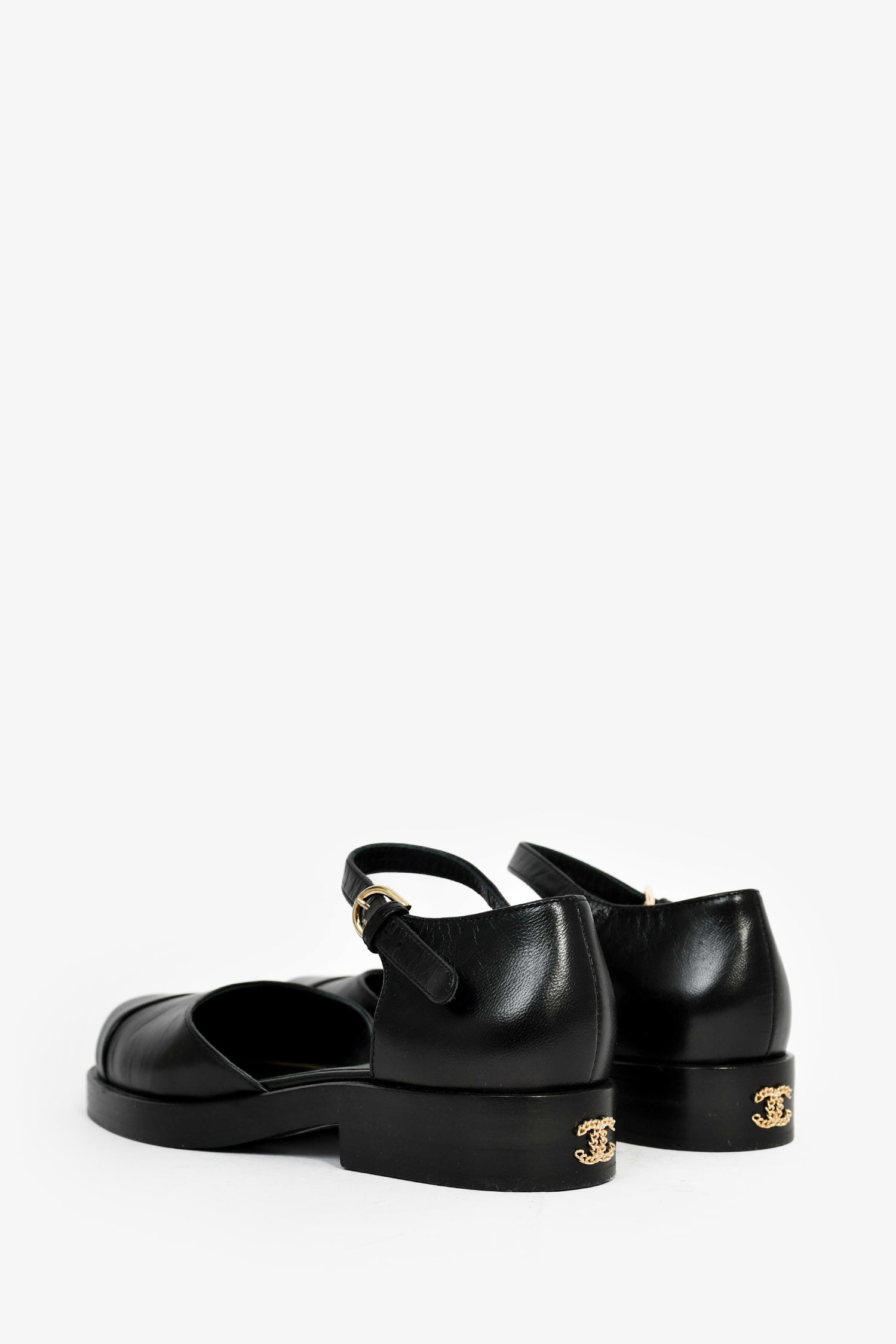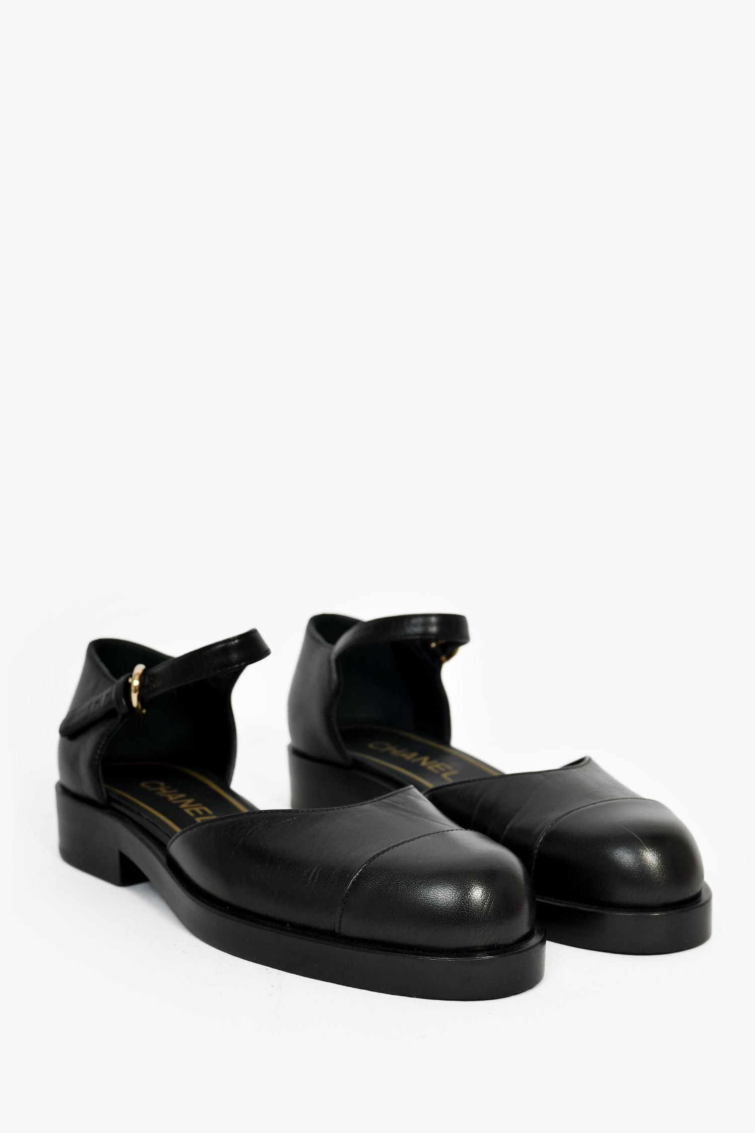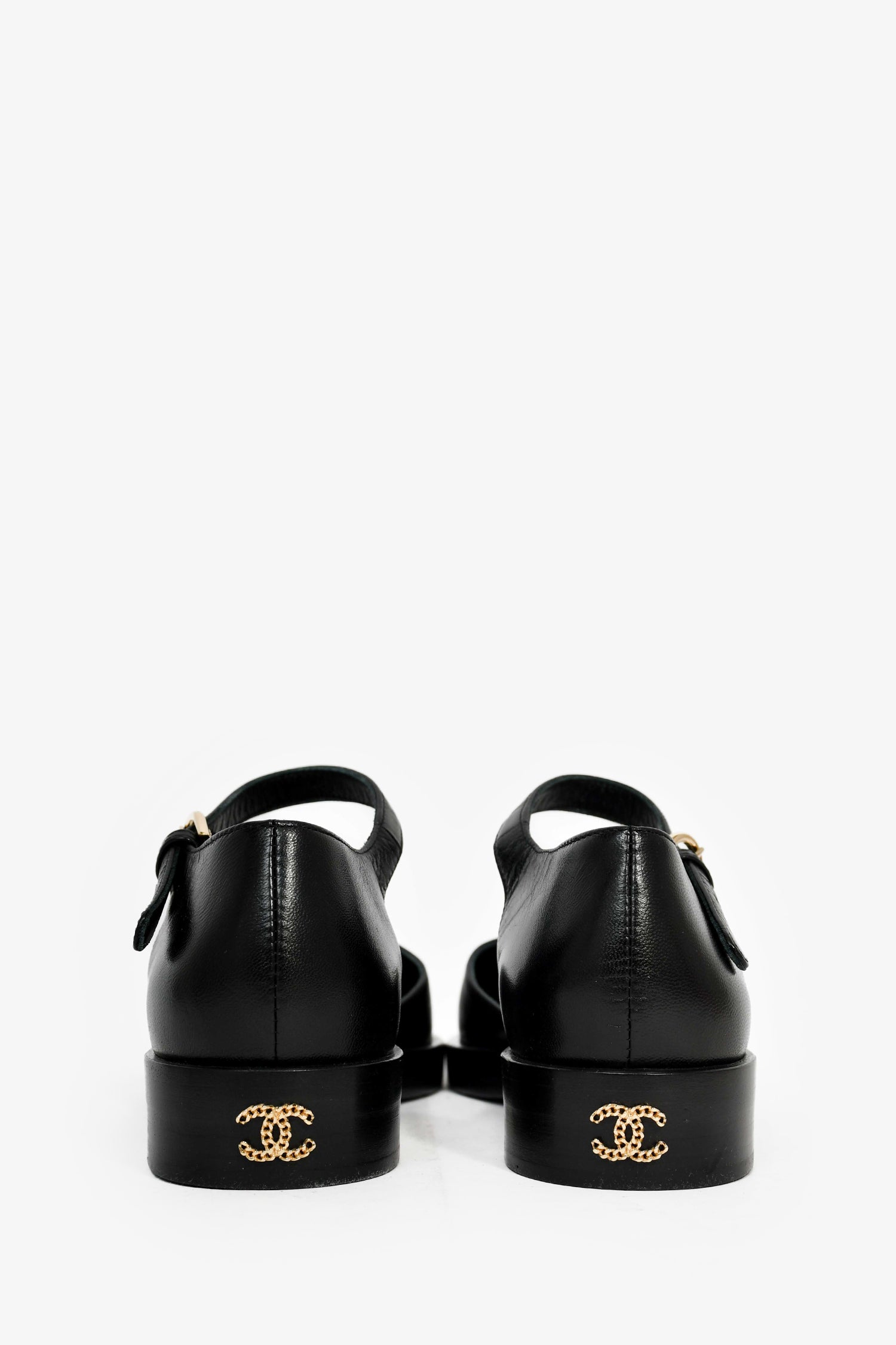 Refresh availabilityPre-Loved Chanel™ Black Leather Mary Jane Flats. Round toe. Adjustable buckle strap. Low block heel. Logo detail at the back in gold-tone. Tonal stitching.
