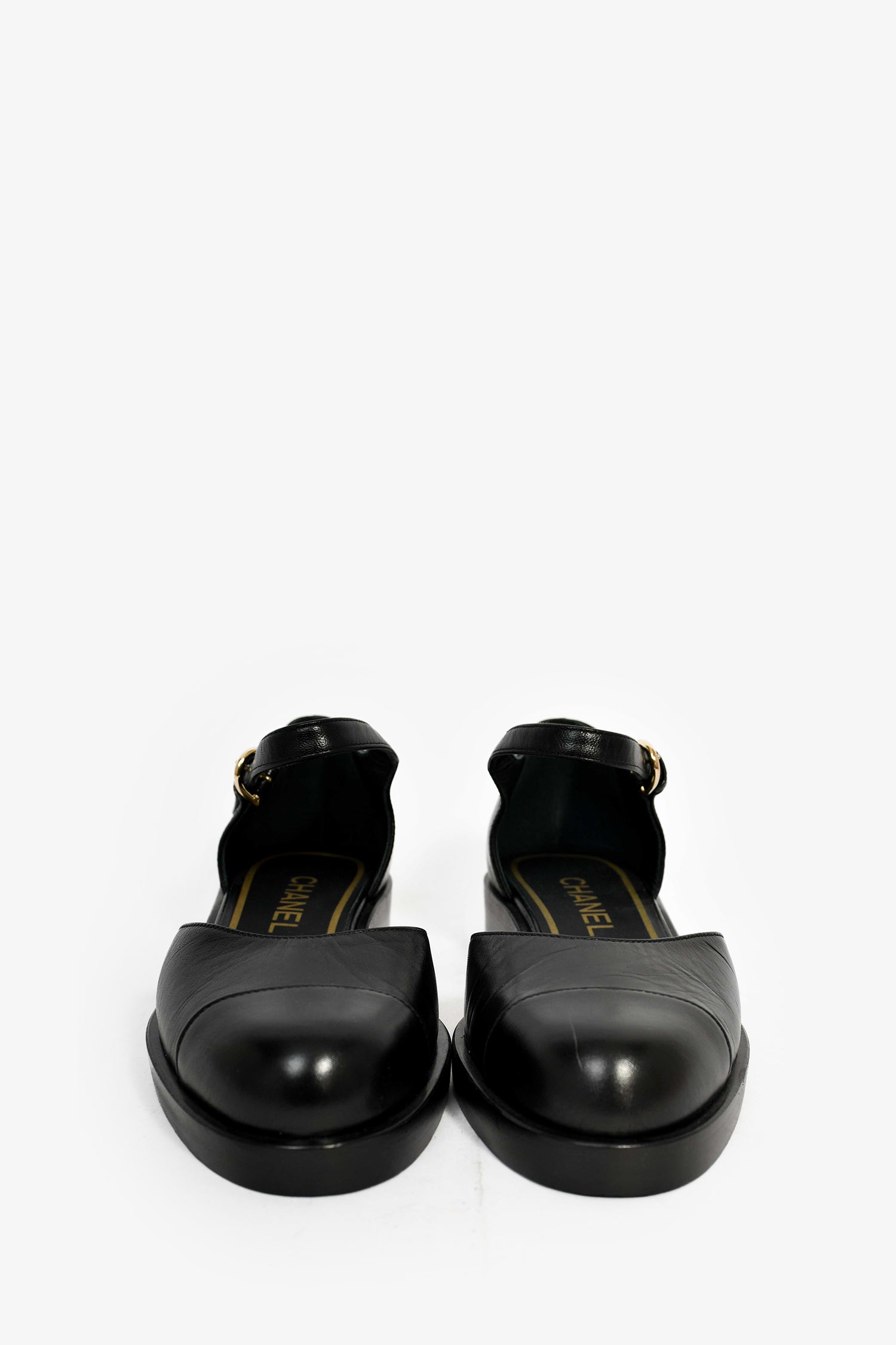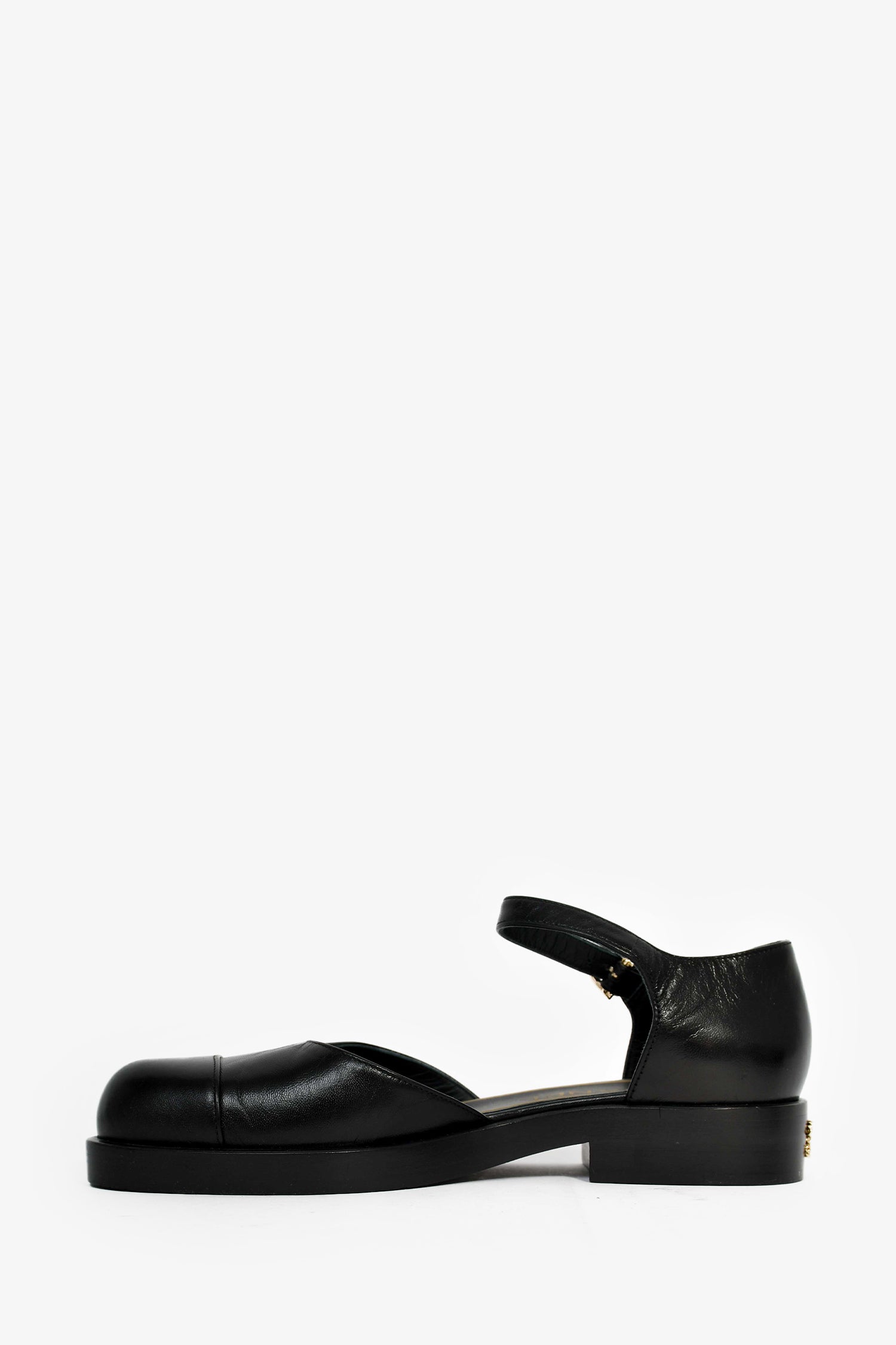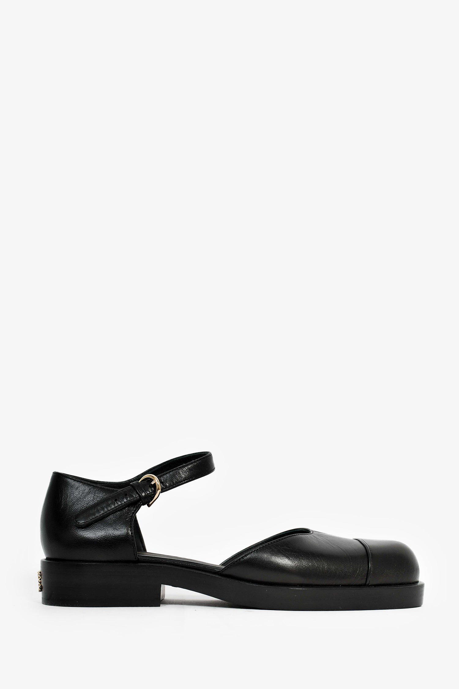 Refresh availabilityPre-Loved Chanel™ Black Leather Mary Jane Flats. Round toe. Adjustable buckle strap. Low block heel. Logo detail at the back in gold-tone. Tonal stitching.