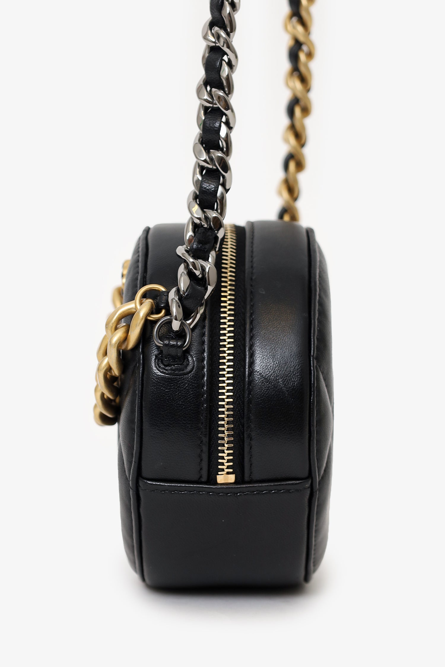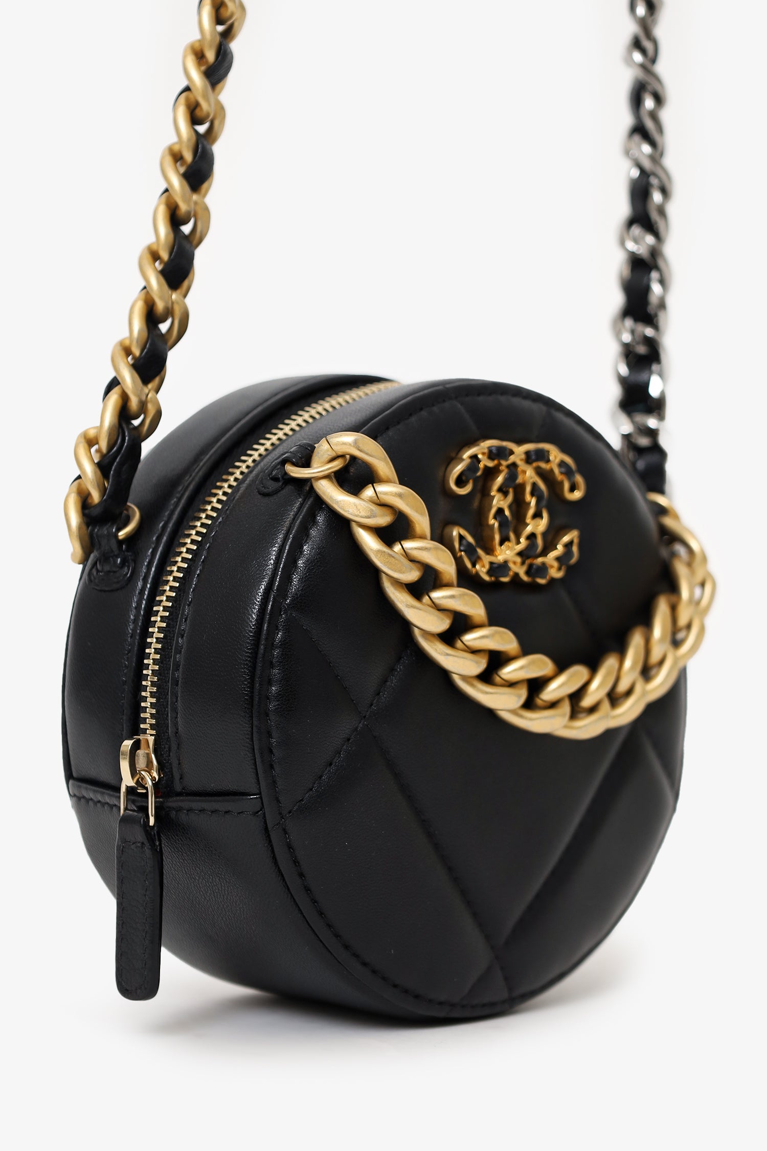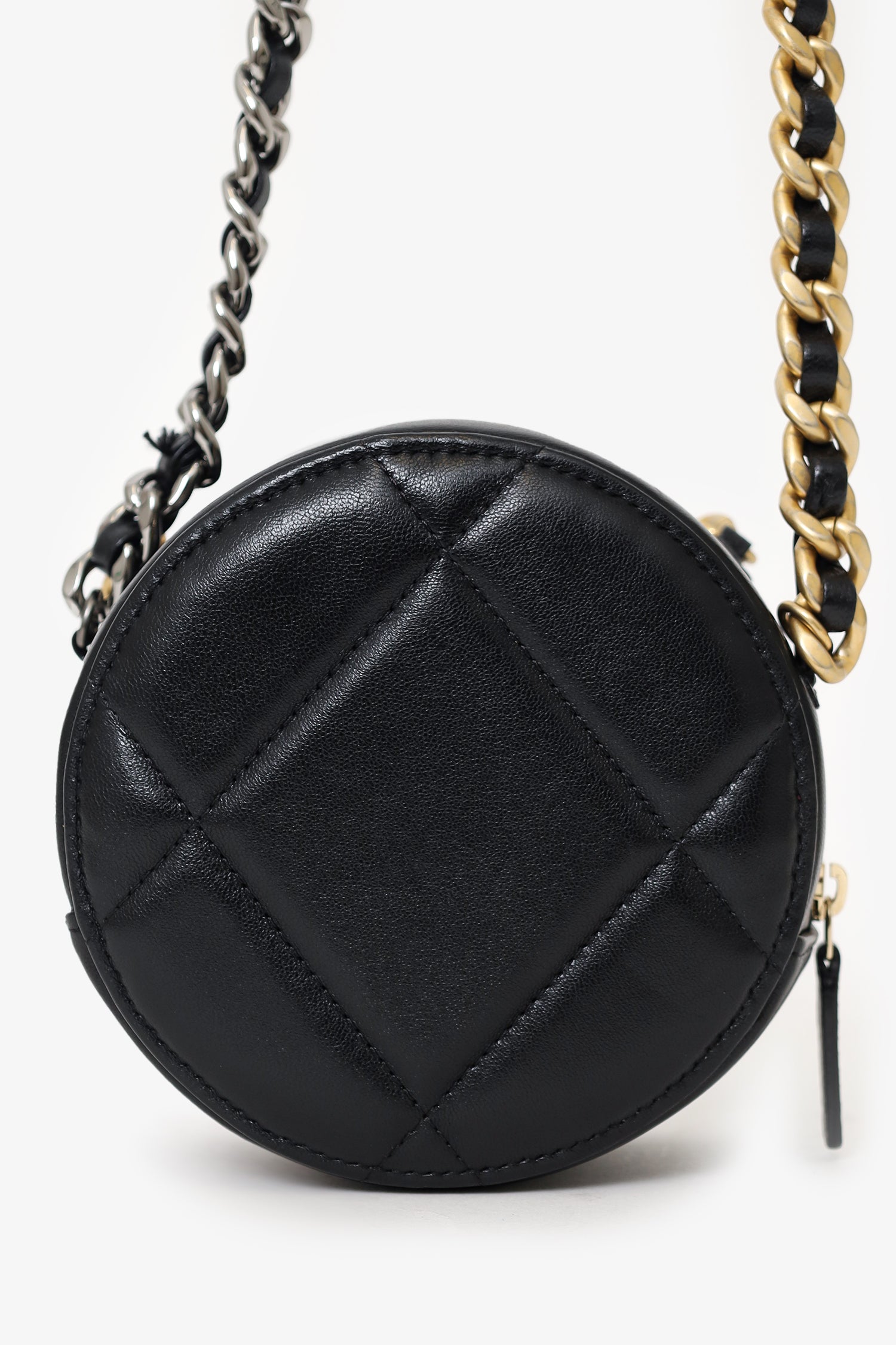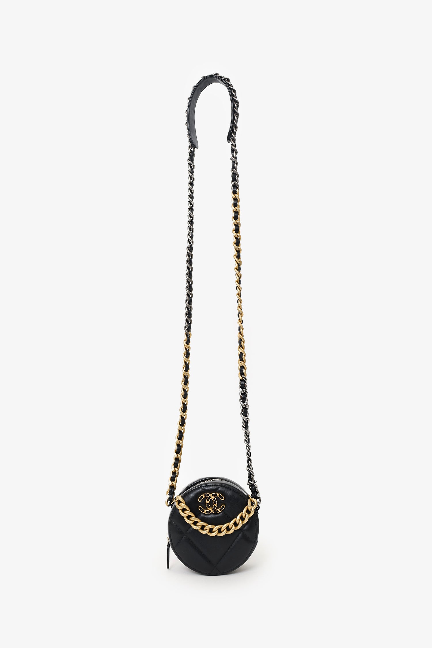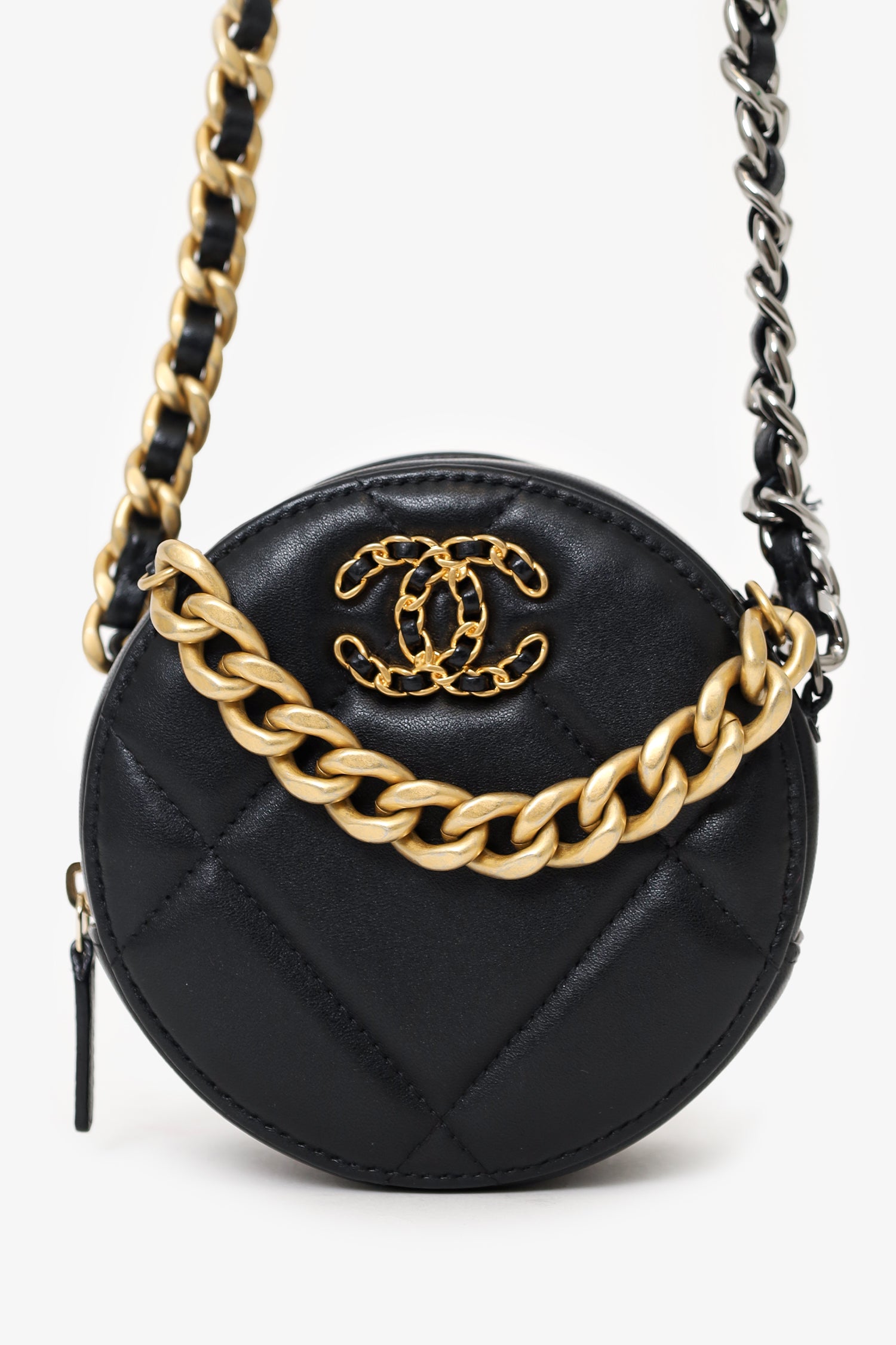 Refresh availabilityPre-Loved Chanel™ Black Leather Quilted 19 Round Crossbody Bag. Top zip closure. Chainlink handle and crossbody strap. Lined interior. 2 interior slip pockets. Gold and silver-tone hardware. Tonal stitching.