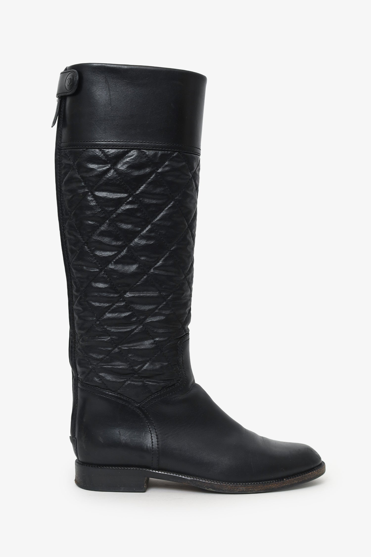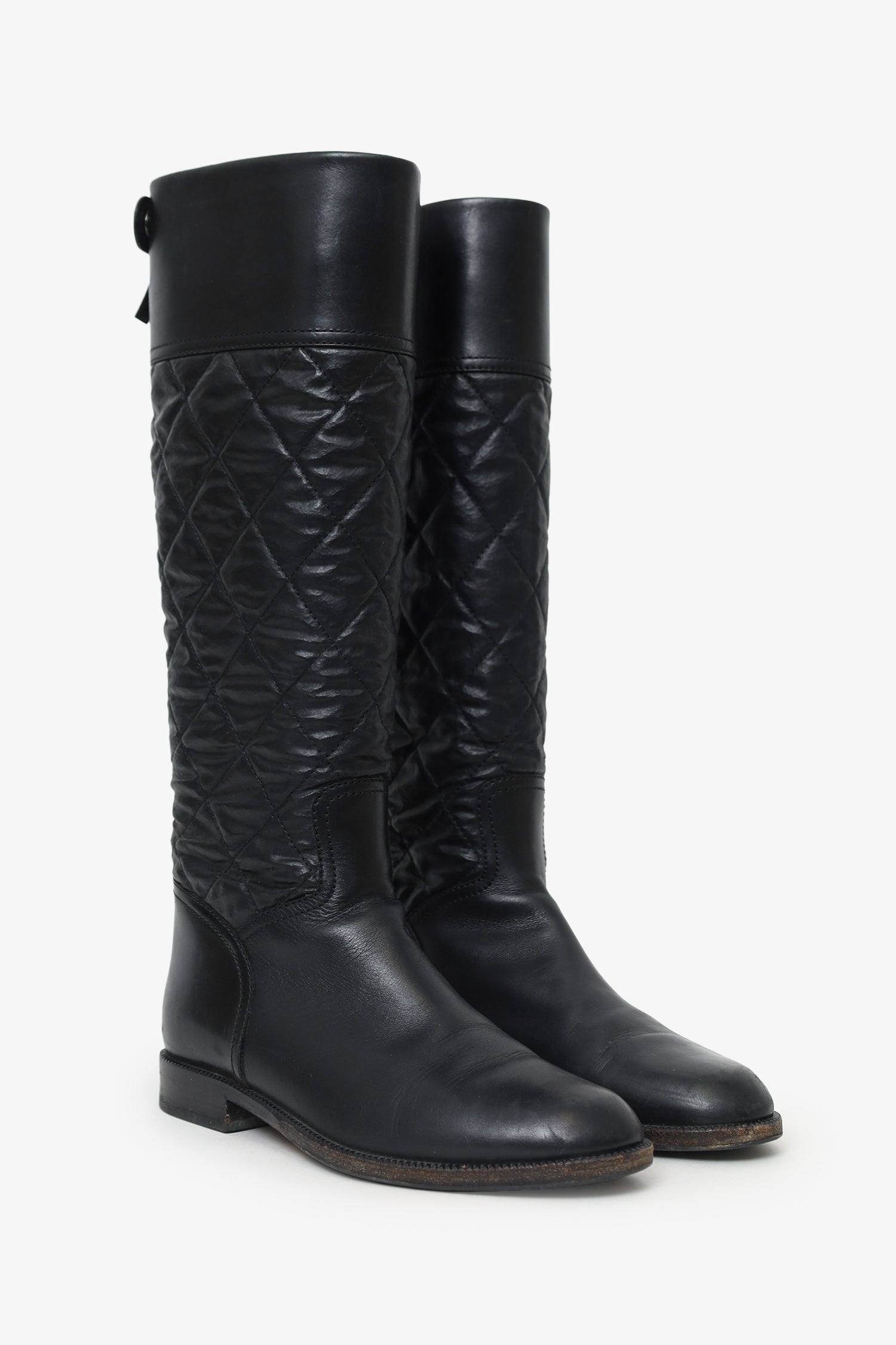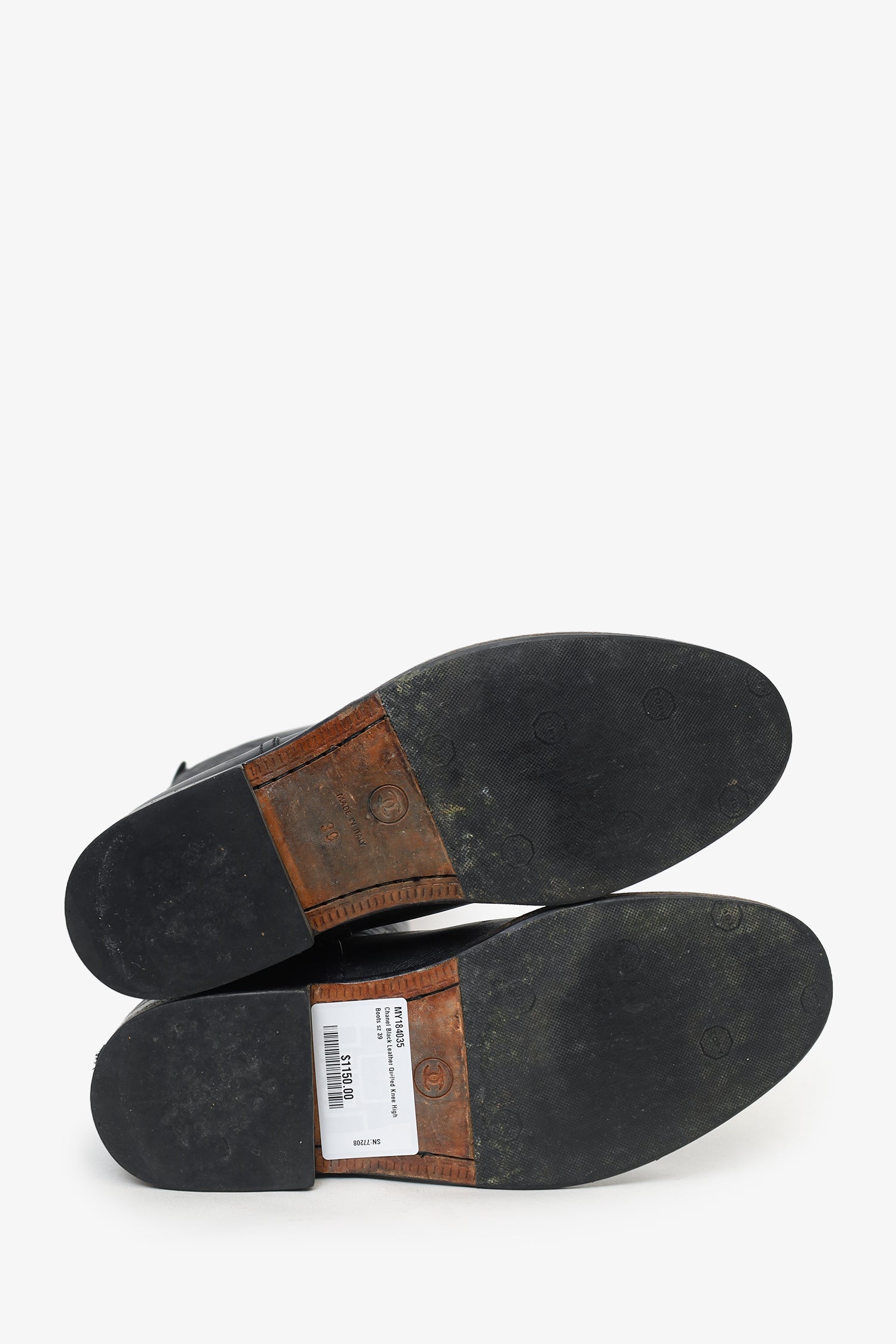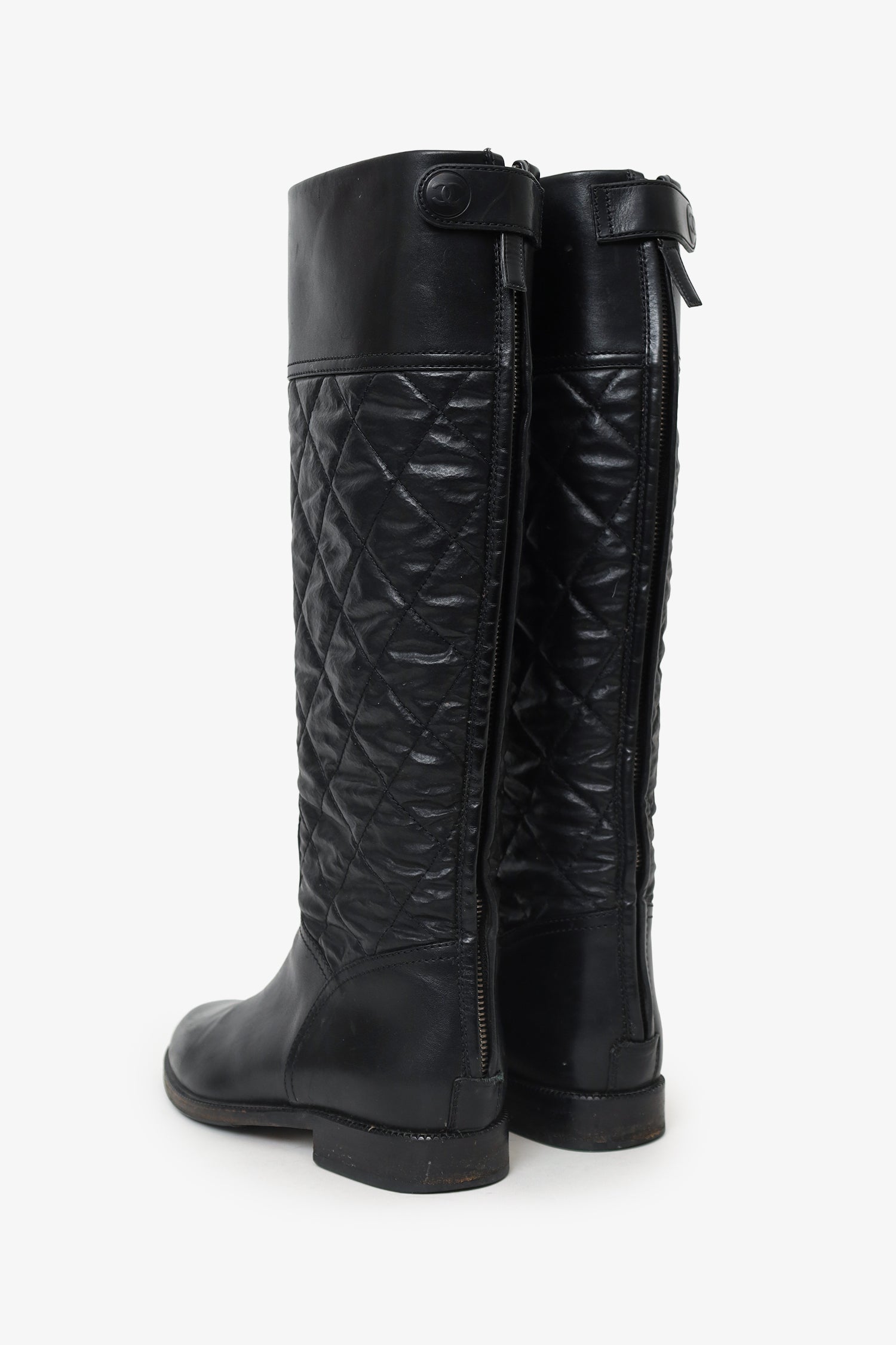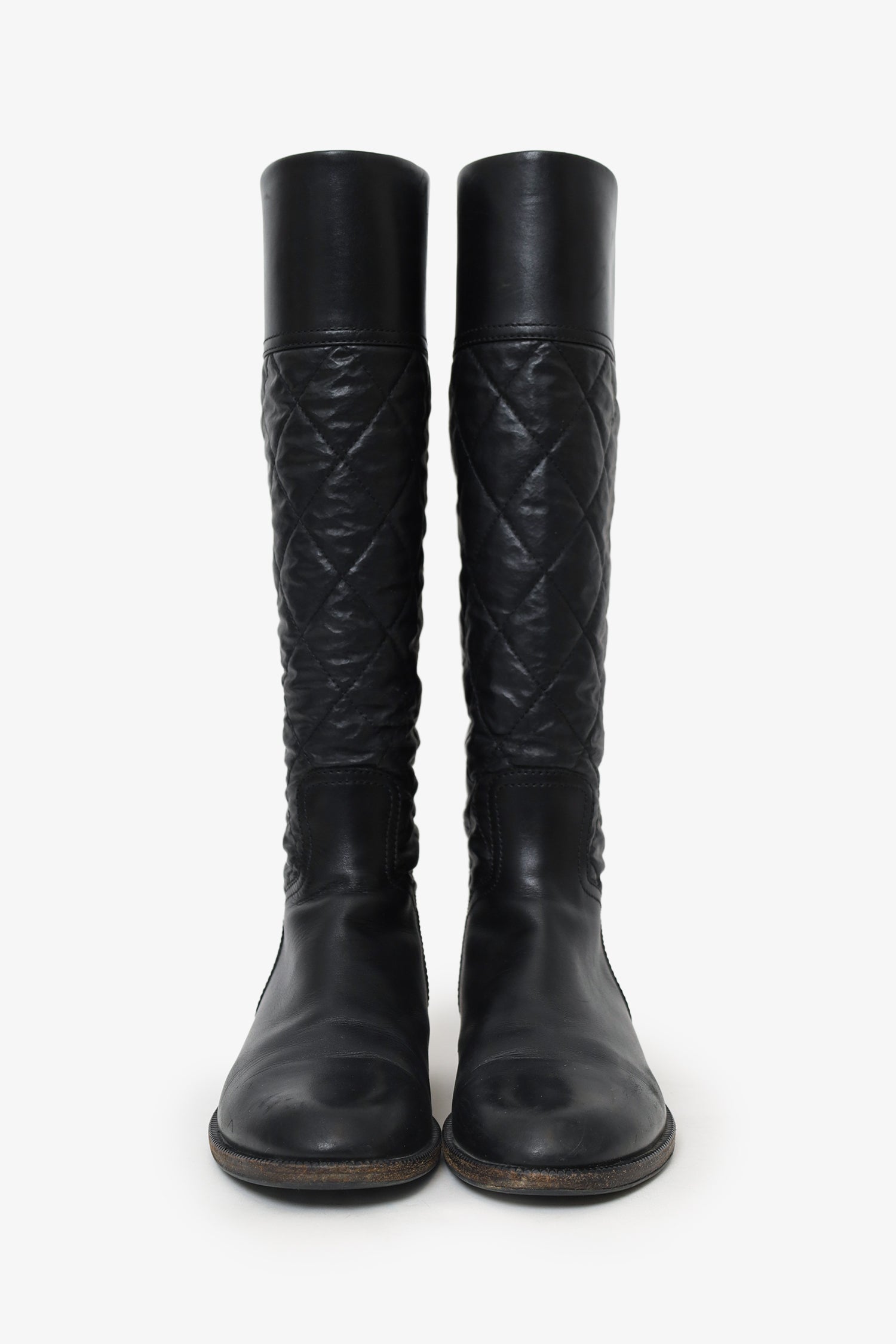 Pre-Loved Chanel™ Black Leather Quilted Knee High Boots Size 39