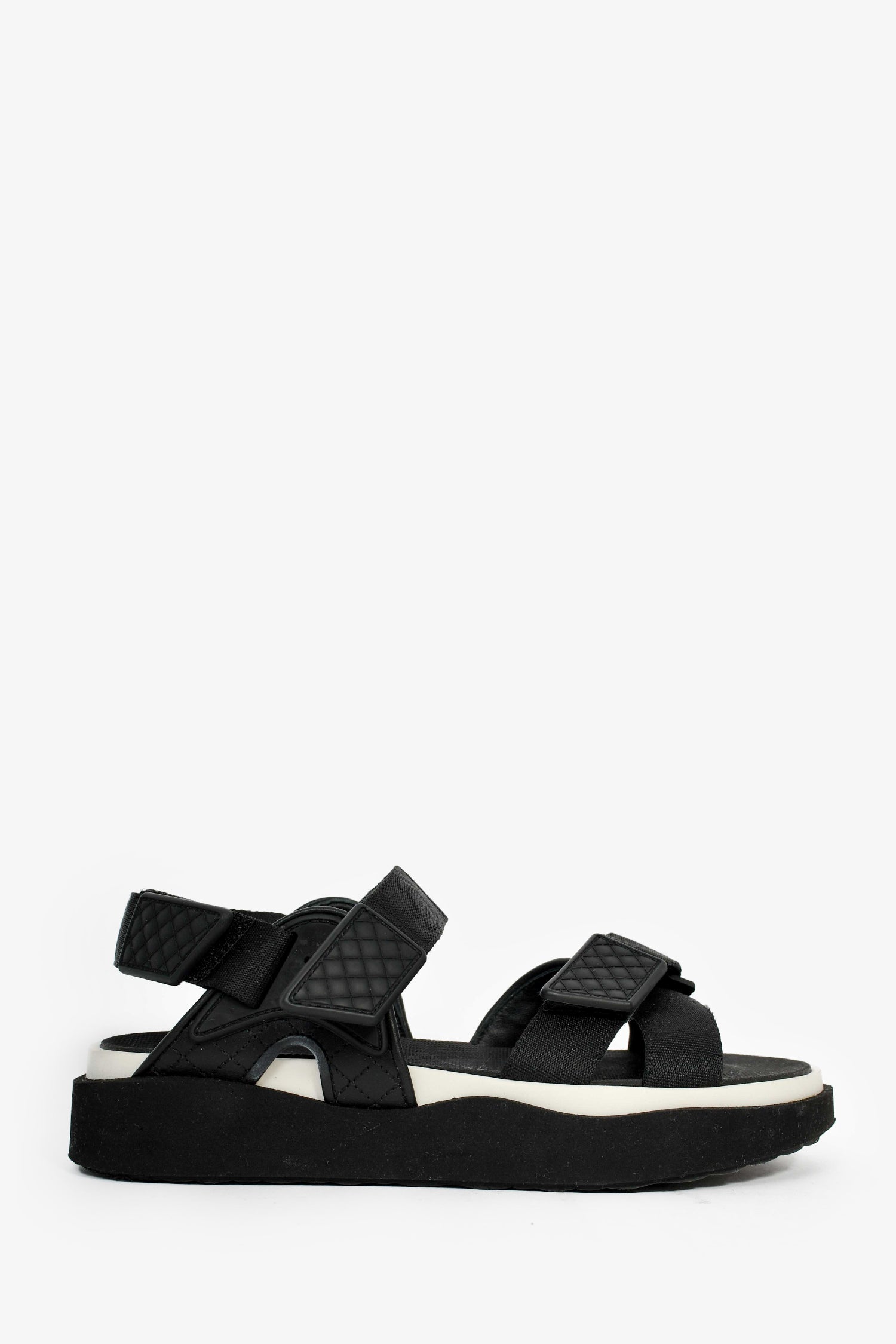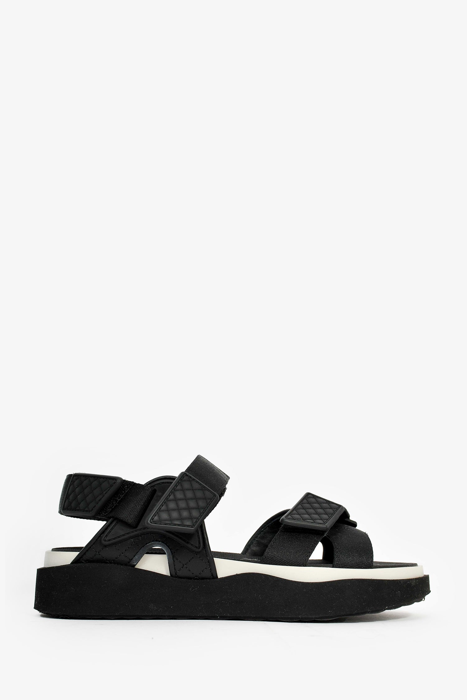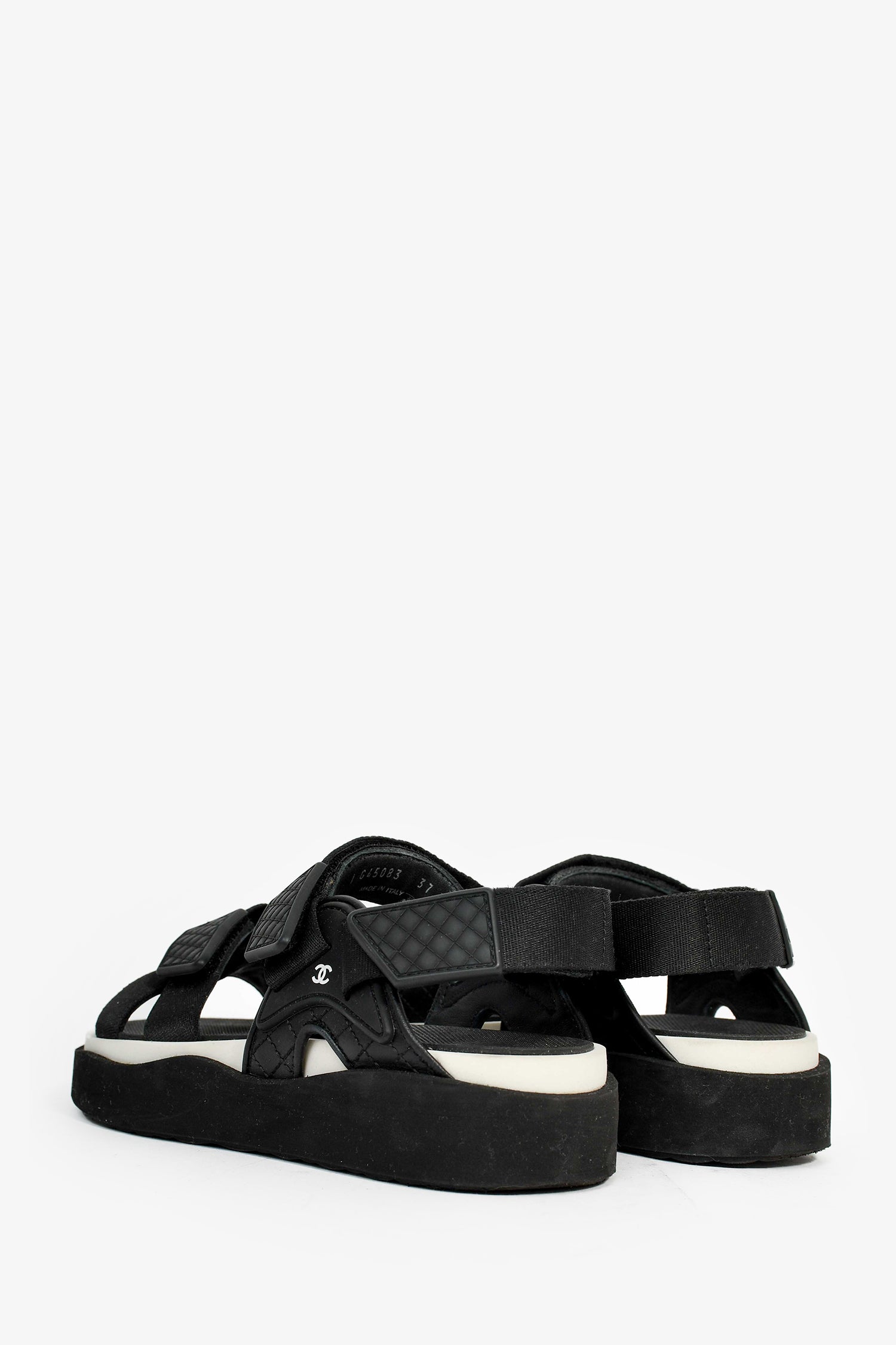 Refresh availabilityPre-Loved Chanel™ Black Leather Sport Sandals. Velcro straps. Rubber insoles. Suede trim and outsoles. Leather trim. Tonal stitching.