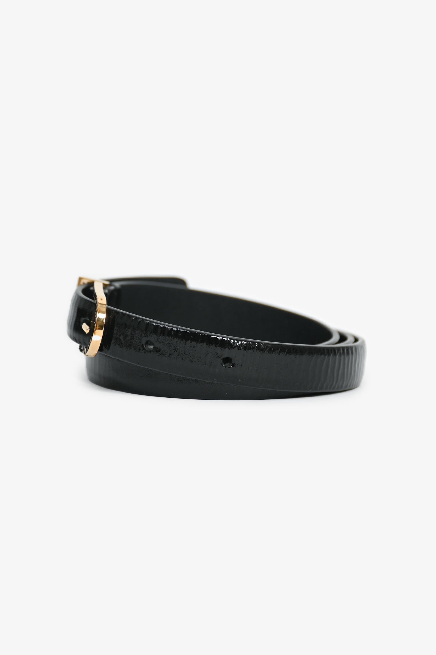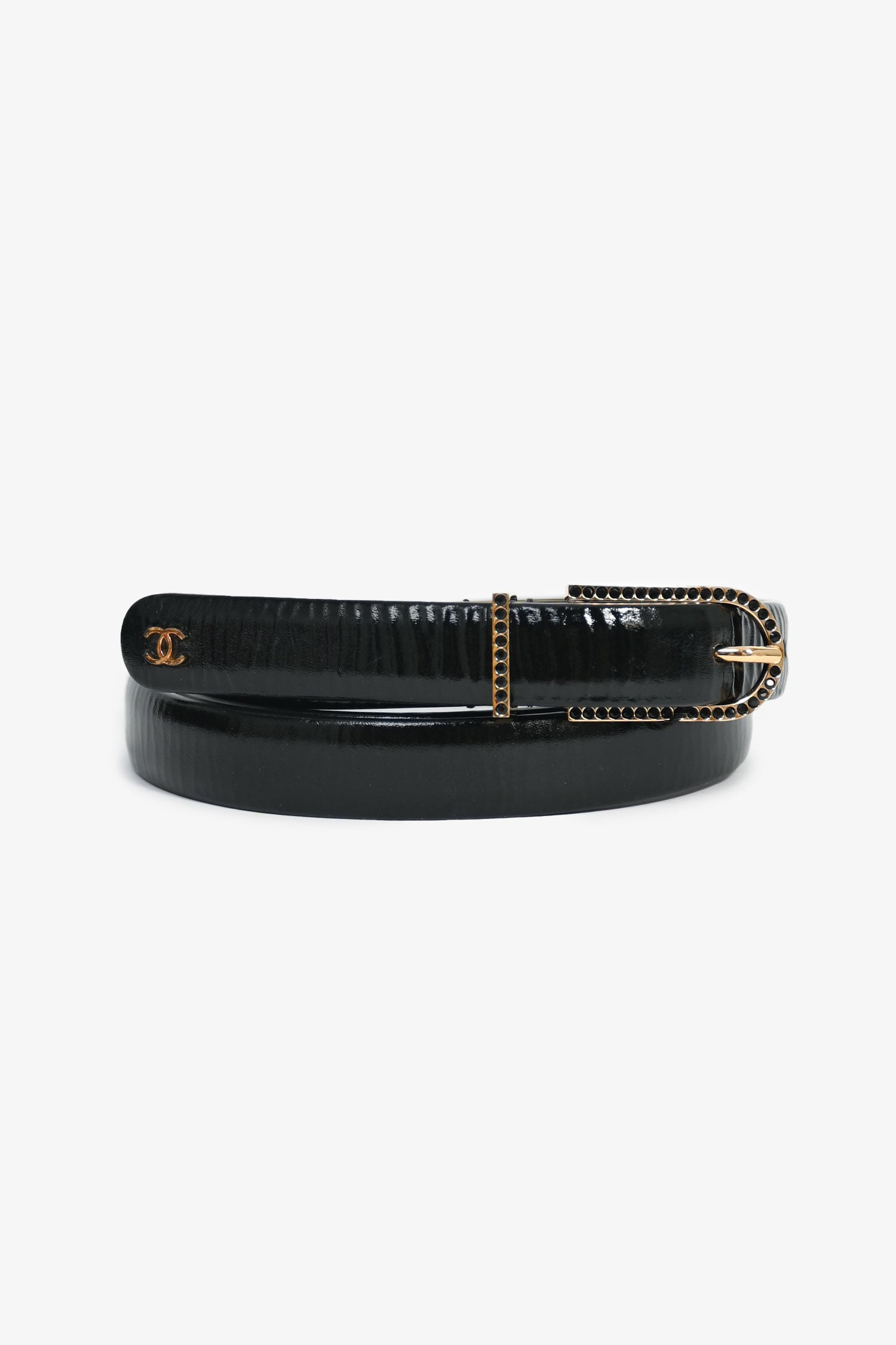 Refresh availabilityPre-Loved Chanel™ Black Patent Leather Thin Little CC Belt. Buckle closure. Gold-tone hardware. Tonal stitching.