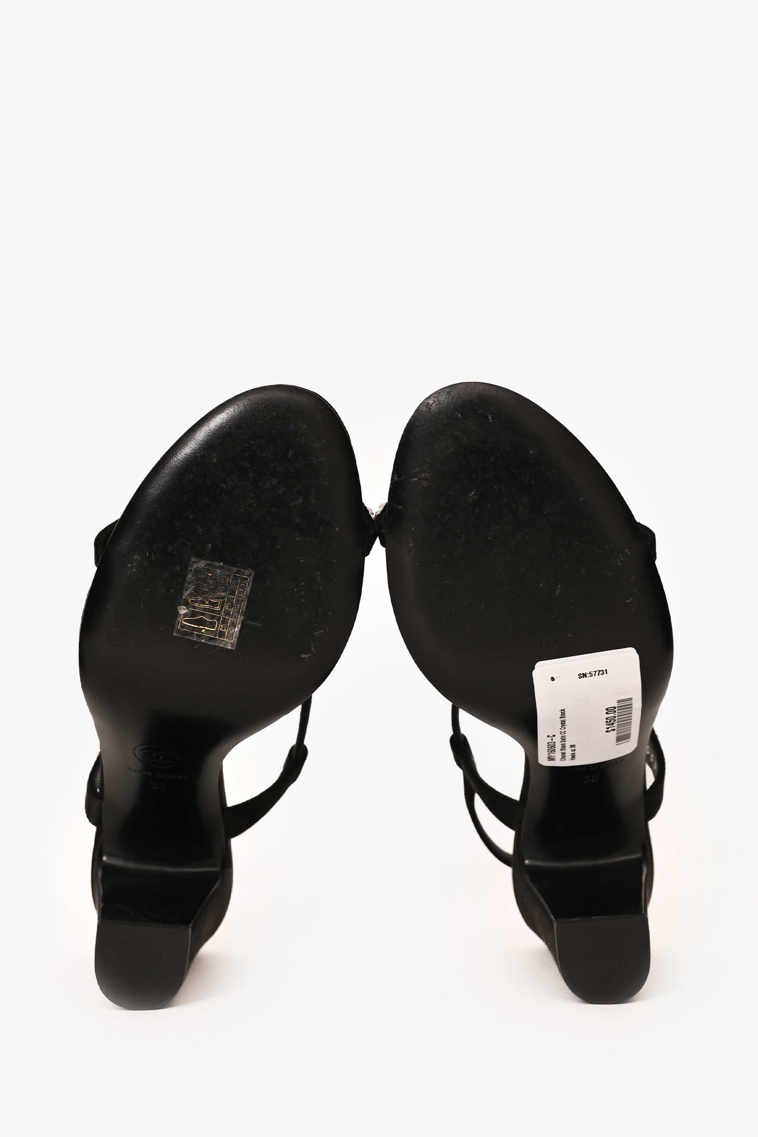 Pre-Loved Chanel™ Black Satin CC Crystal Block Heels Size 38