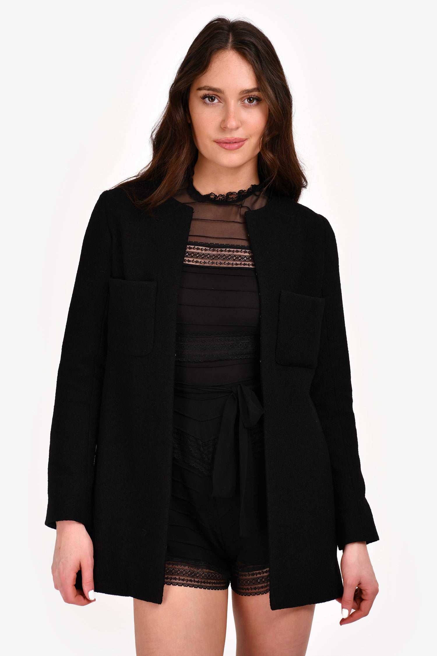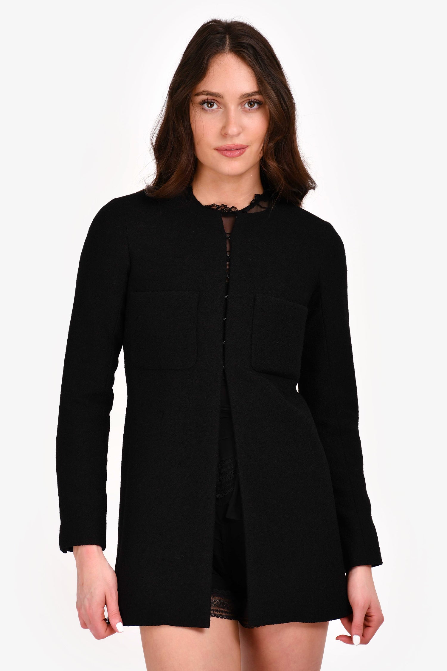 Refresh availabilityPre-Loved Chanel™ Black Wool Blend CC 3/4 Length Coat. Front hook-and-eye closure. Front flap pockets. Buttoned cuffs with CC logo. Fully lined. Tonal stitching.