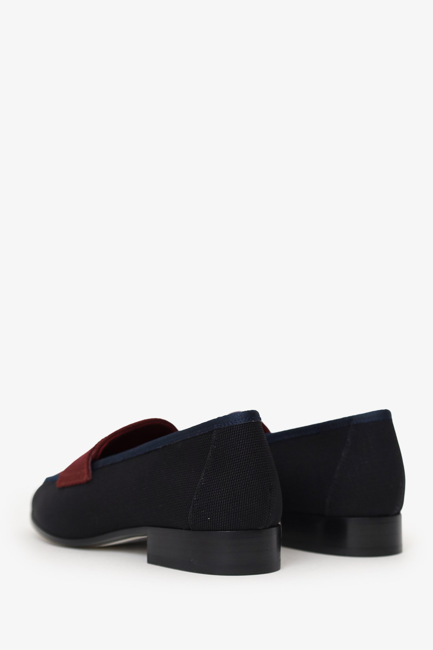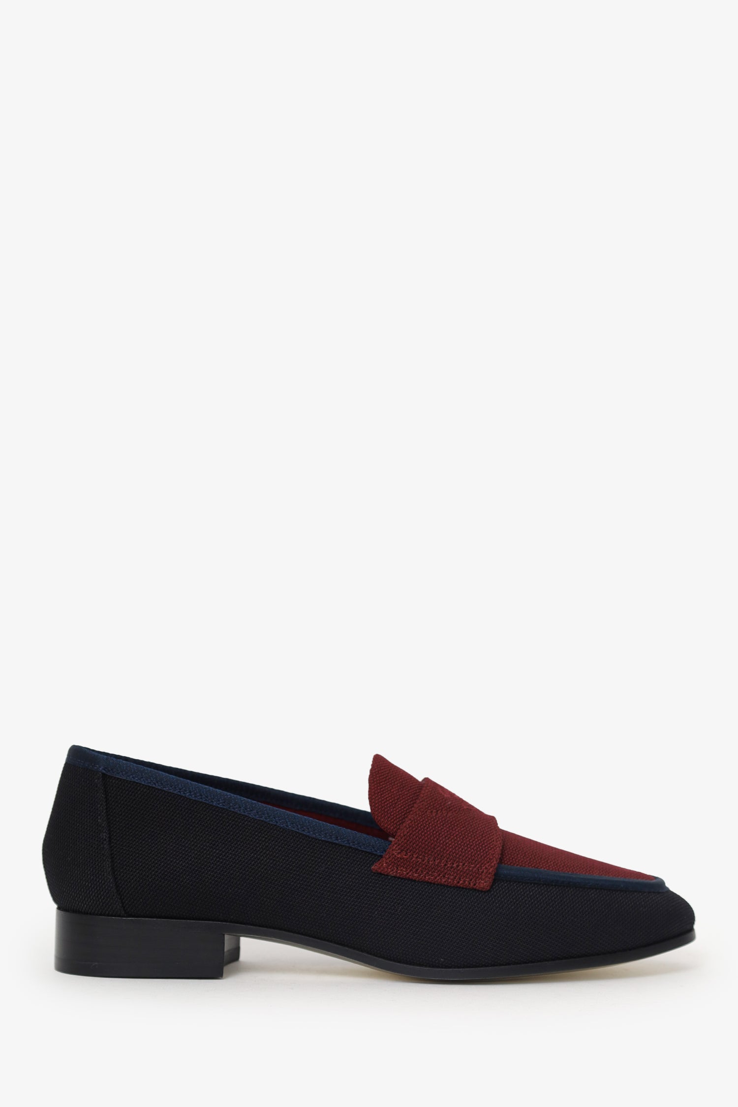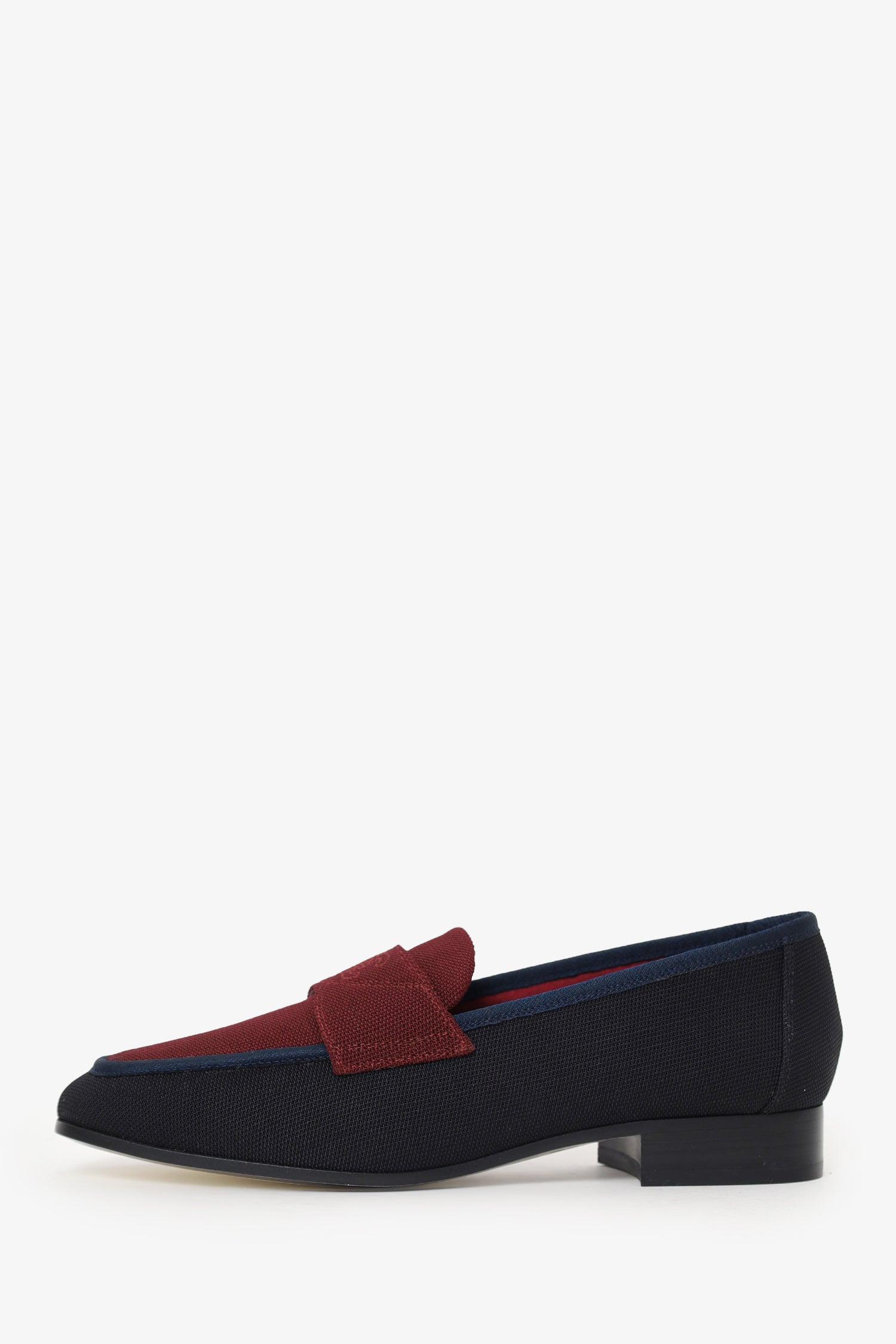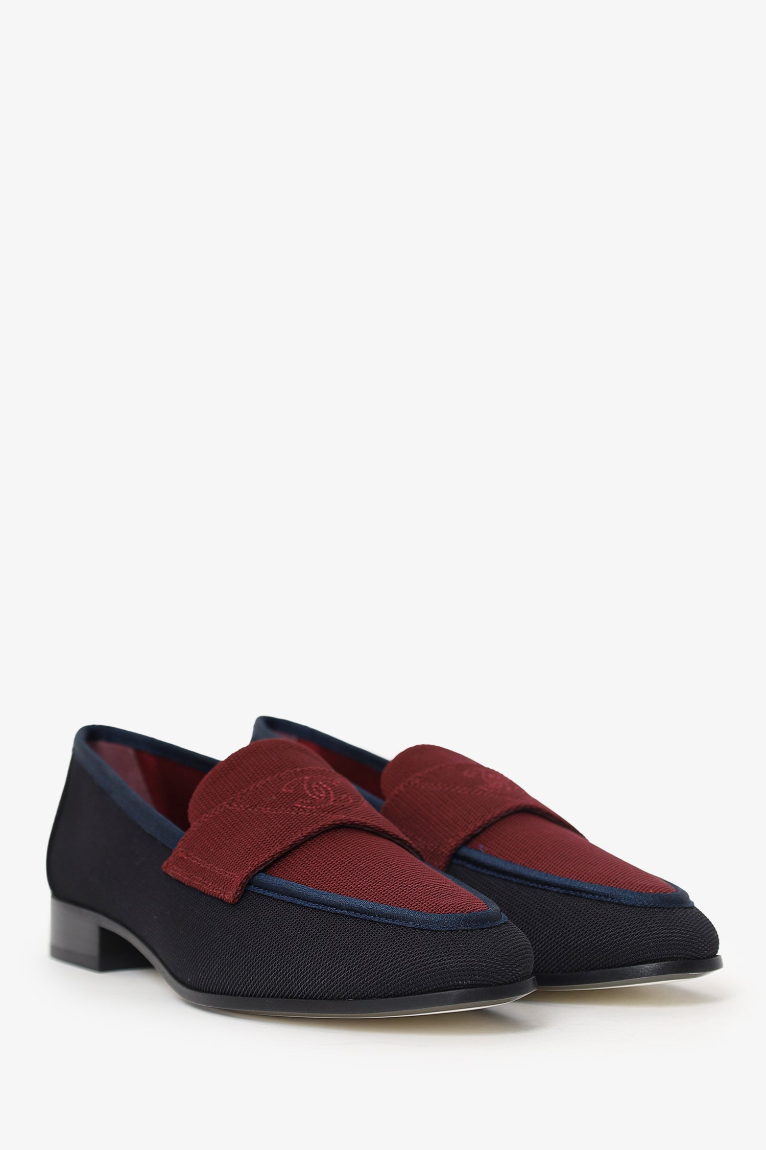 Refresh availabilityPre-Loved Chanel™ Black/Burgundy Fabric CC Loafers. Slip-on. Round toe. Block heel. Tonal stitching.