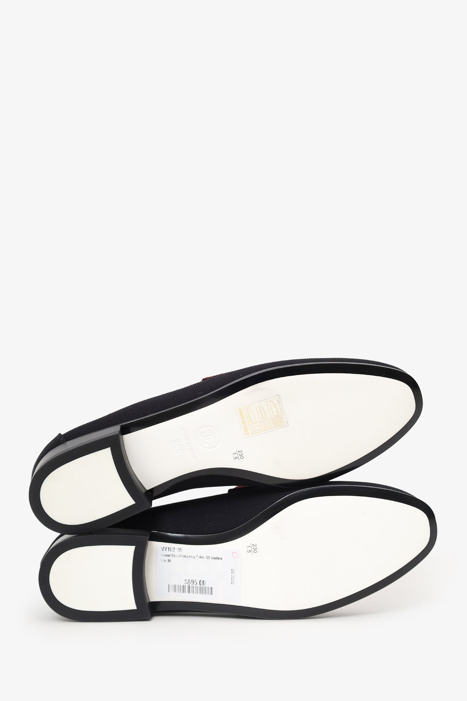 Pre-Loved Chanel™ Black/Burgundy Fabric CC Loafers Size 36