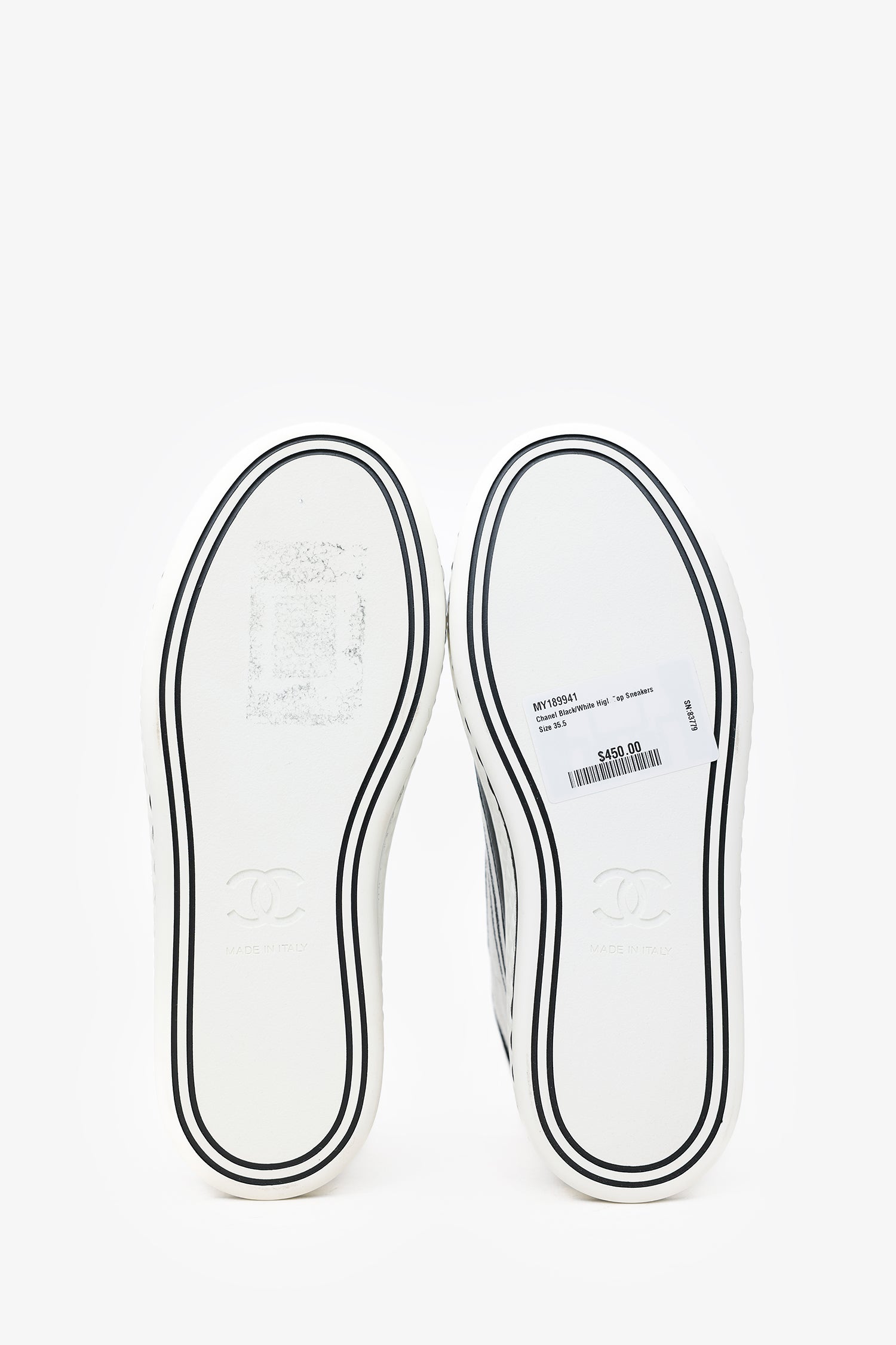 Pre-Loved Chanel™ Black/White High Top Sneakers Size 35.5