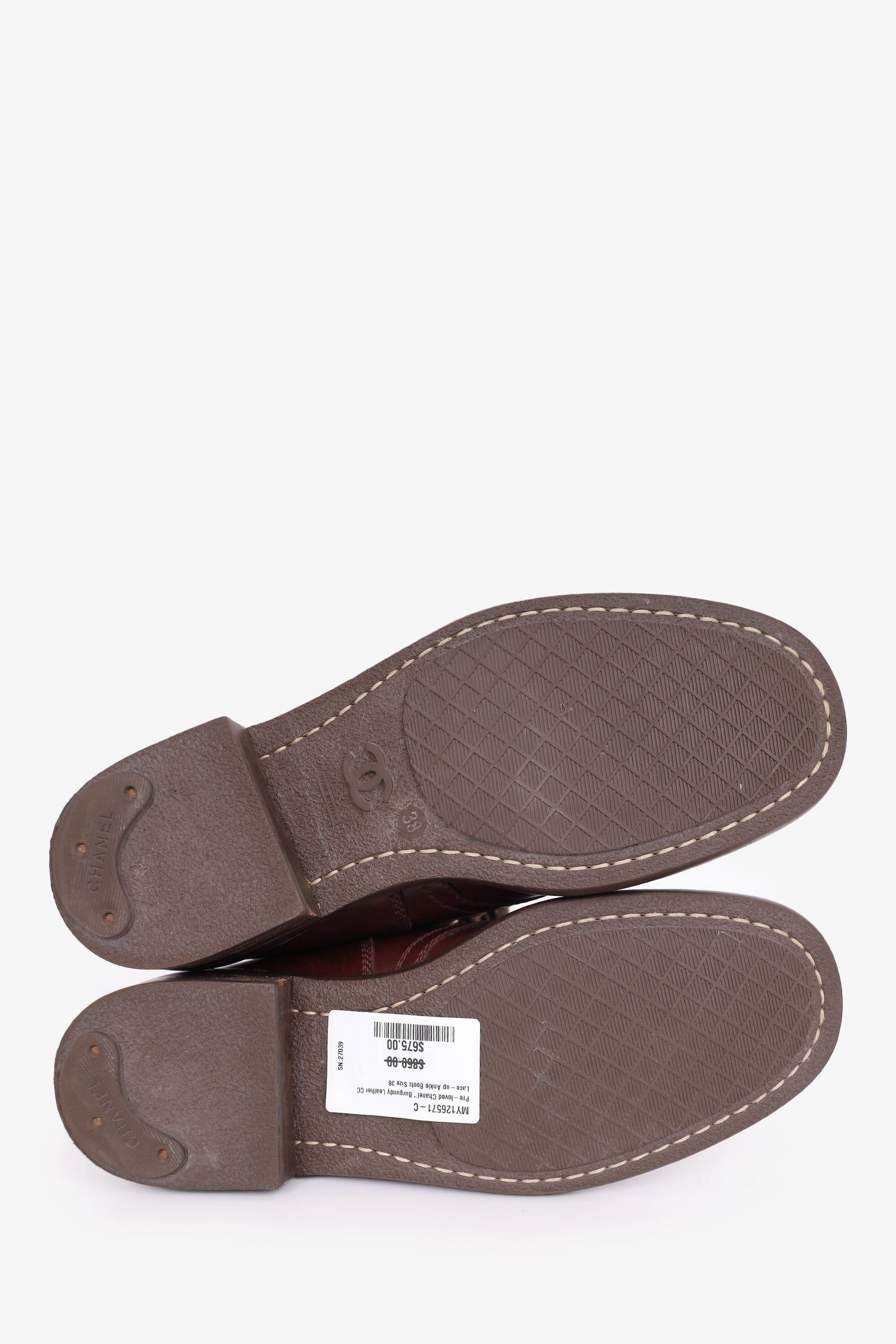 Pre-loved Chanel™ Burgundy Leather CC Lace-up Ankle Boots Size 38