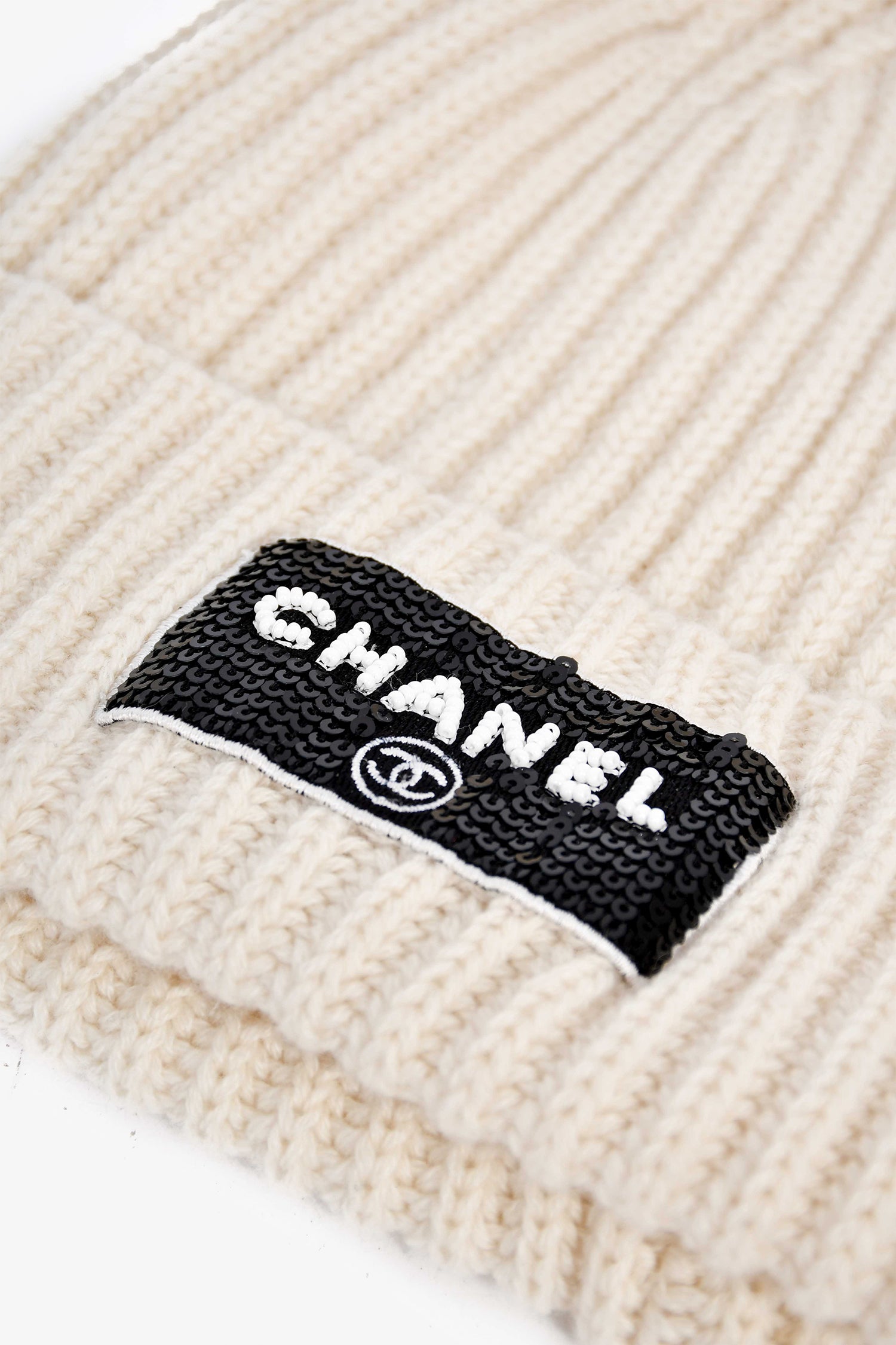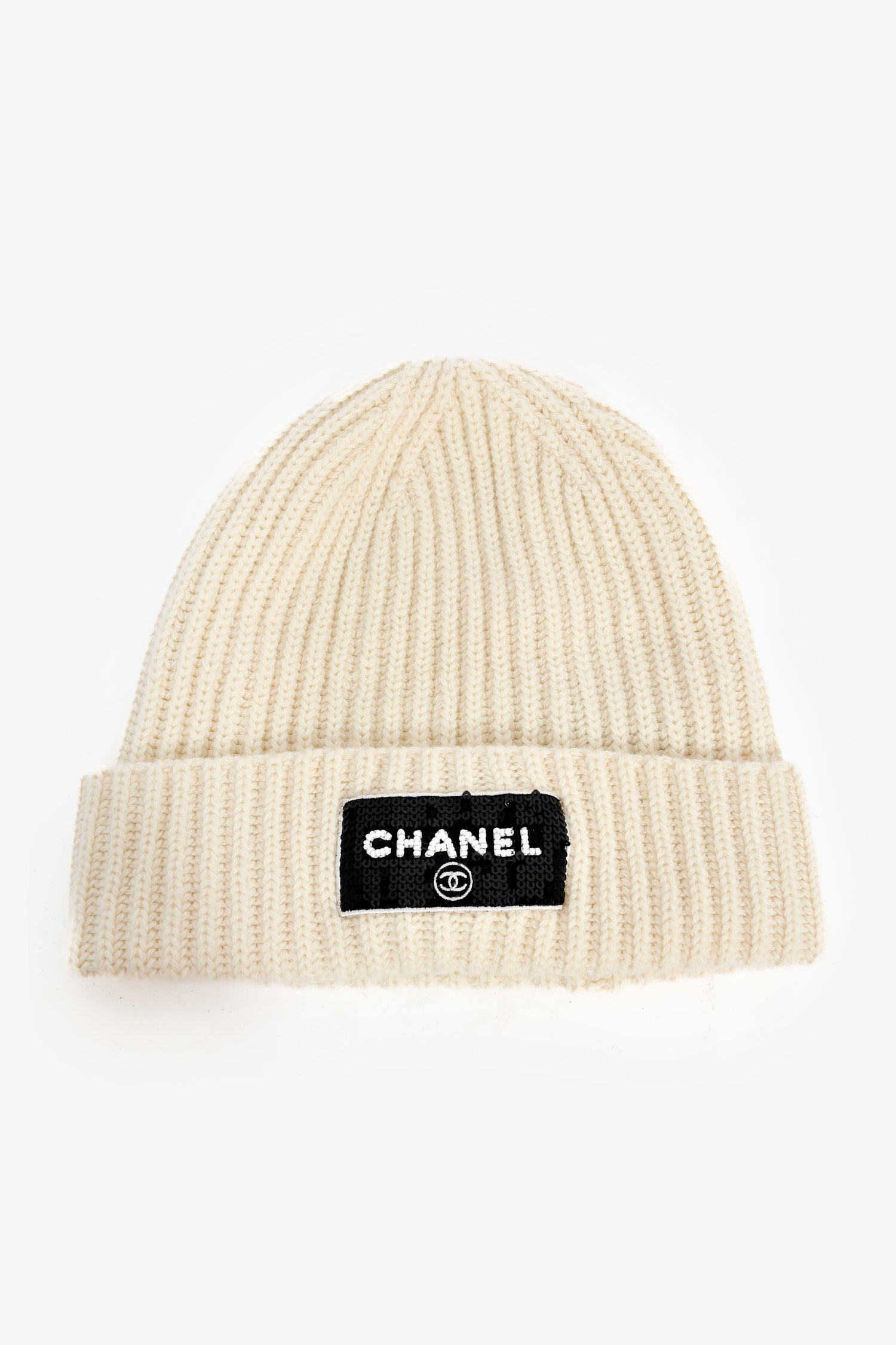 Refresh availabilityPre-Loved Chanel™ Cream Ribbed Cashmere Toque. Slip-on. Sequin and beaded details. Tonal stitching.