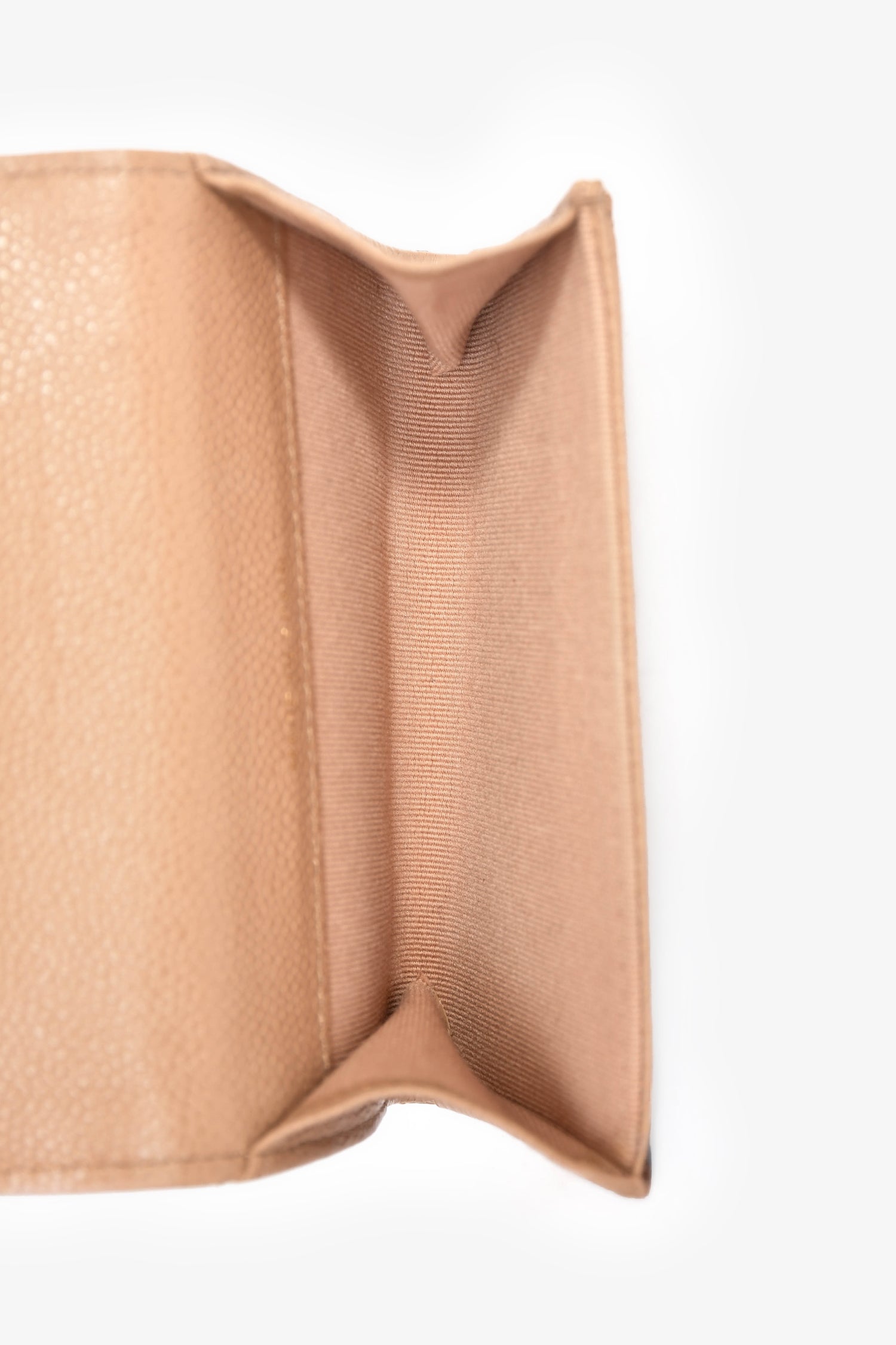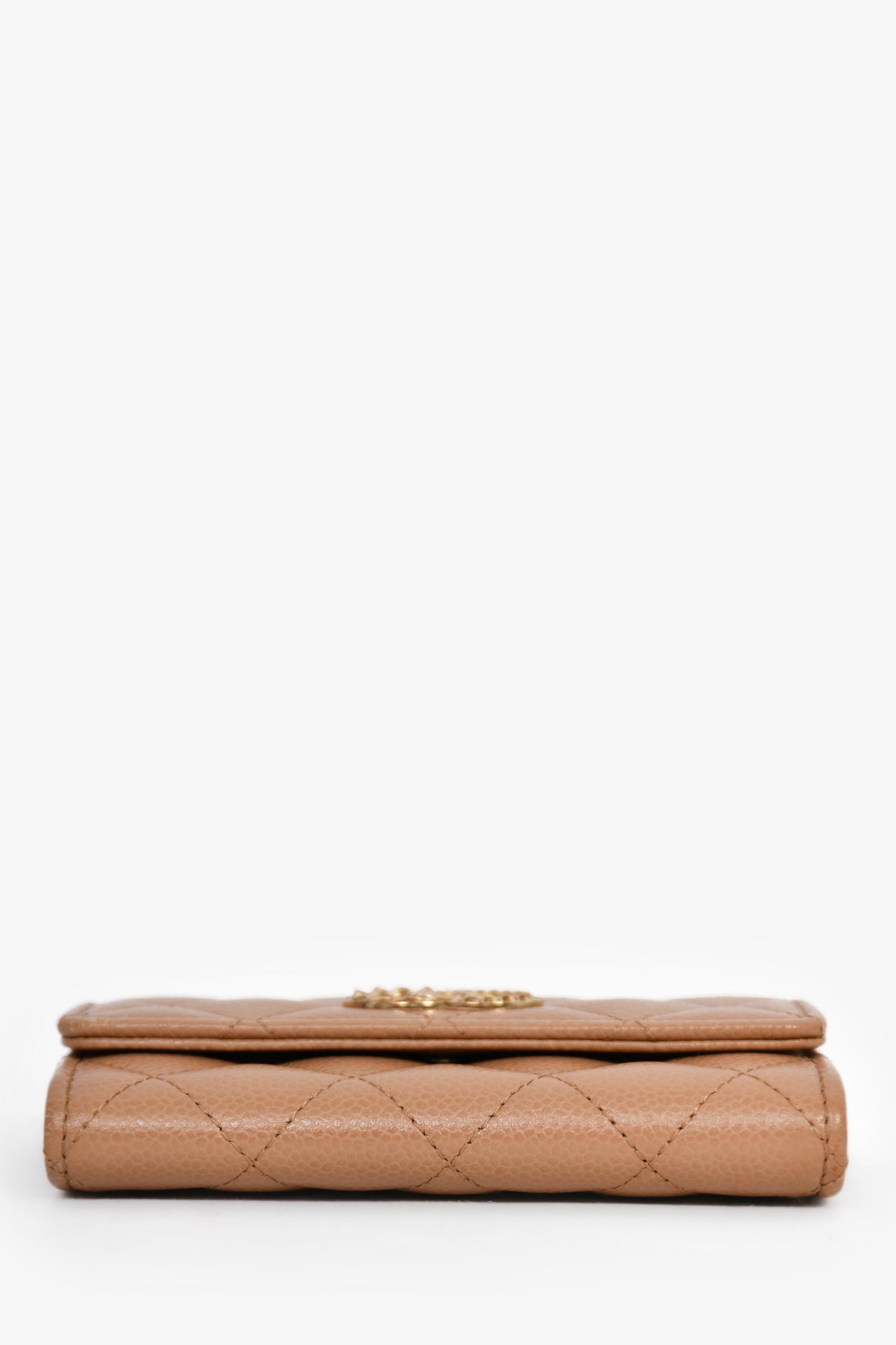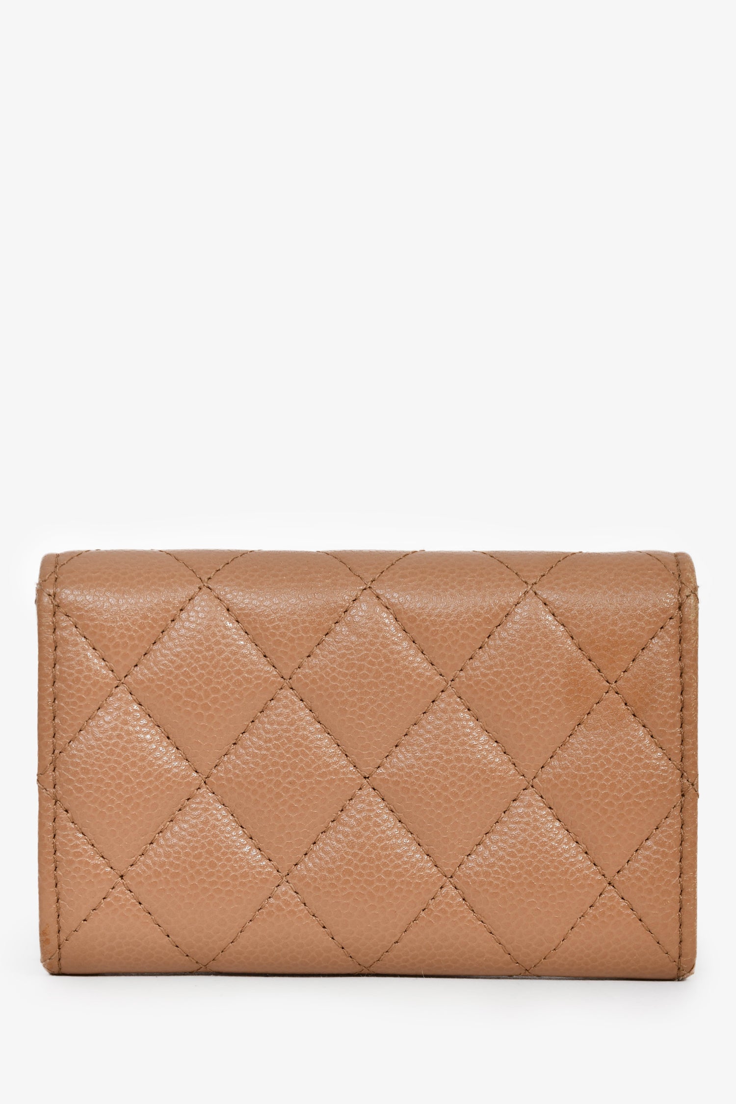 Refresh availabilityPre-Loved Chanel™ Dark Beige Caviar Leather Card Holder. Fold-over flap with a snap closure. 2 card slots. Gold-tone hardware. Tonal stitching.