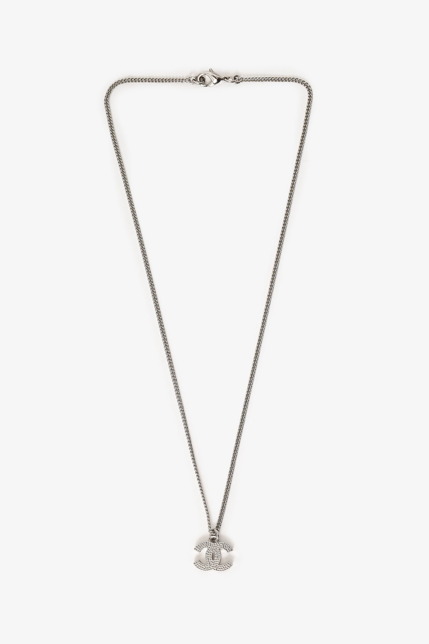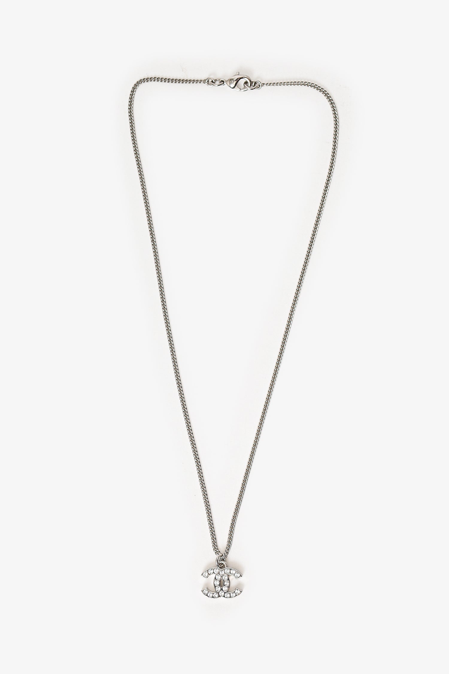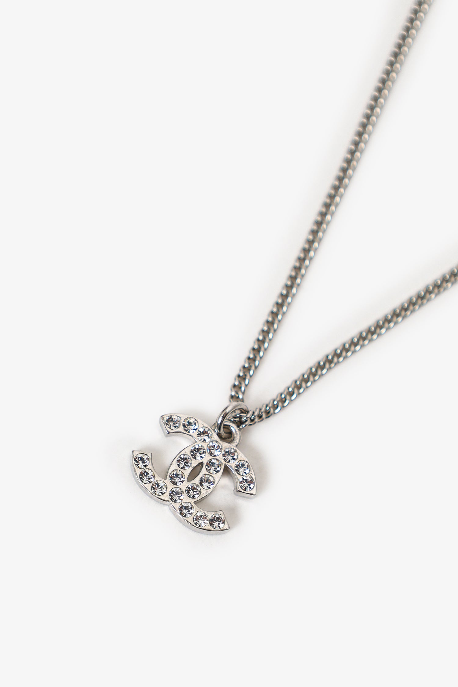 Refresh availabilityPre-Loved Chanel™ F12 Silver Tone Double CC Crystal Pendant Necklace. Rear clasp closure. Silver-tone hardware.