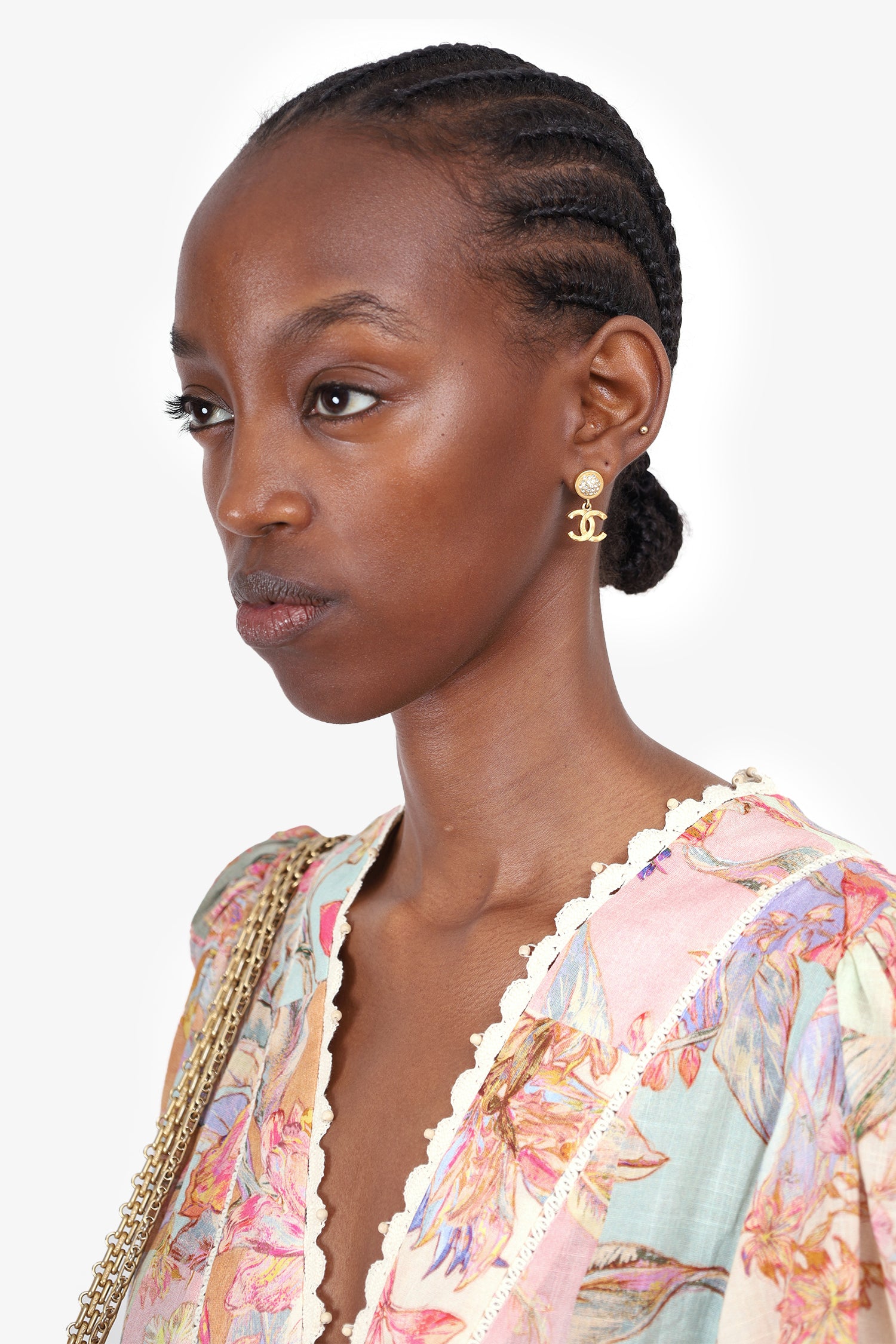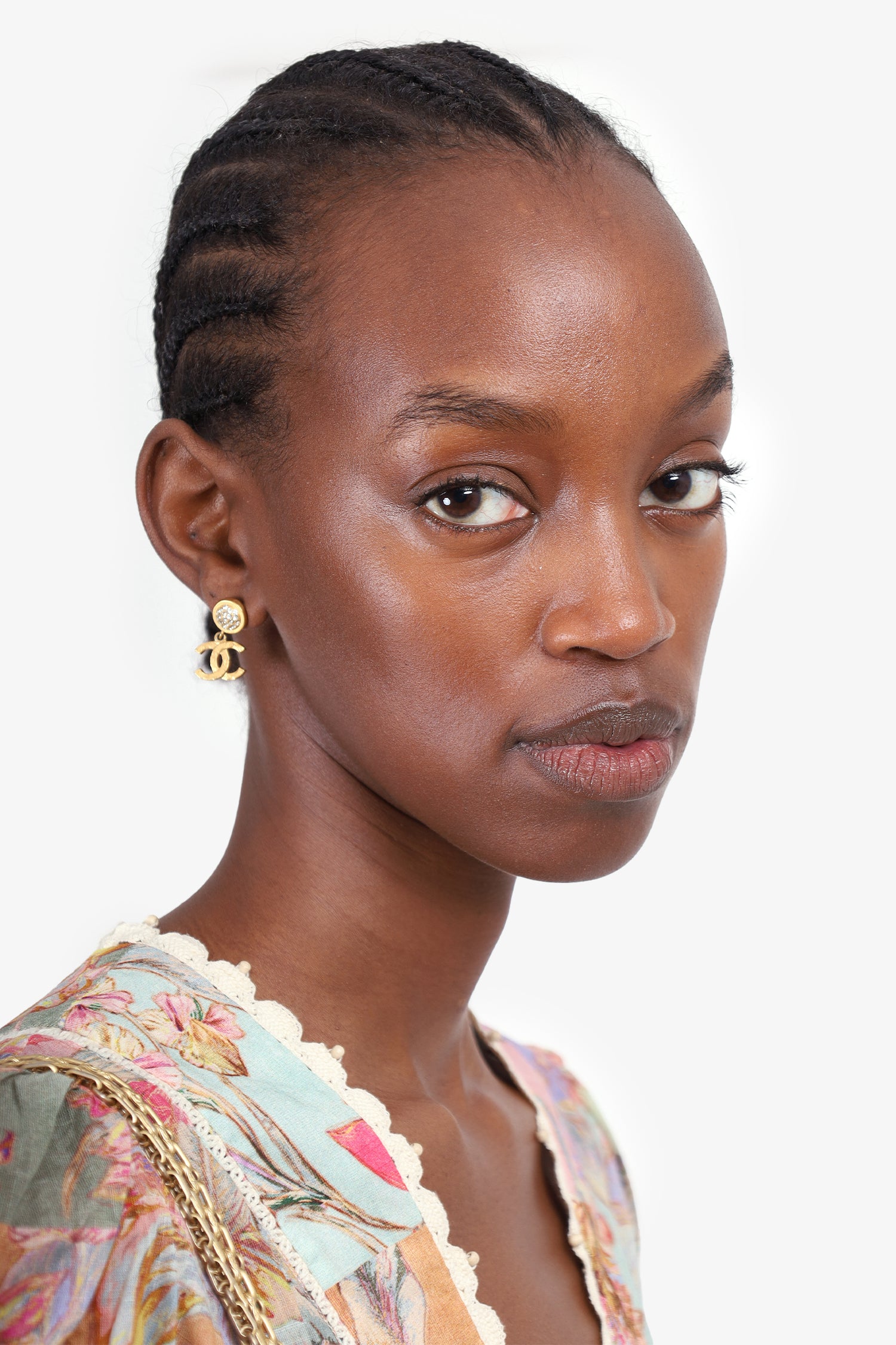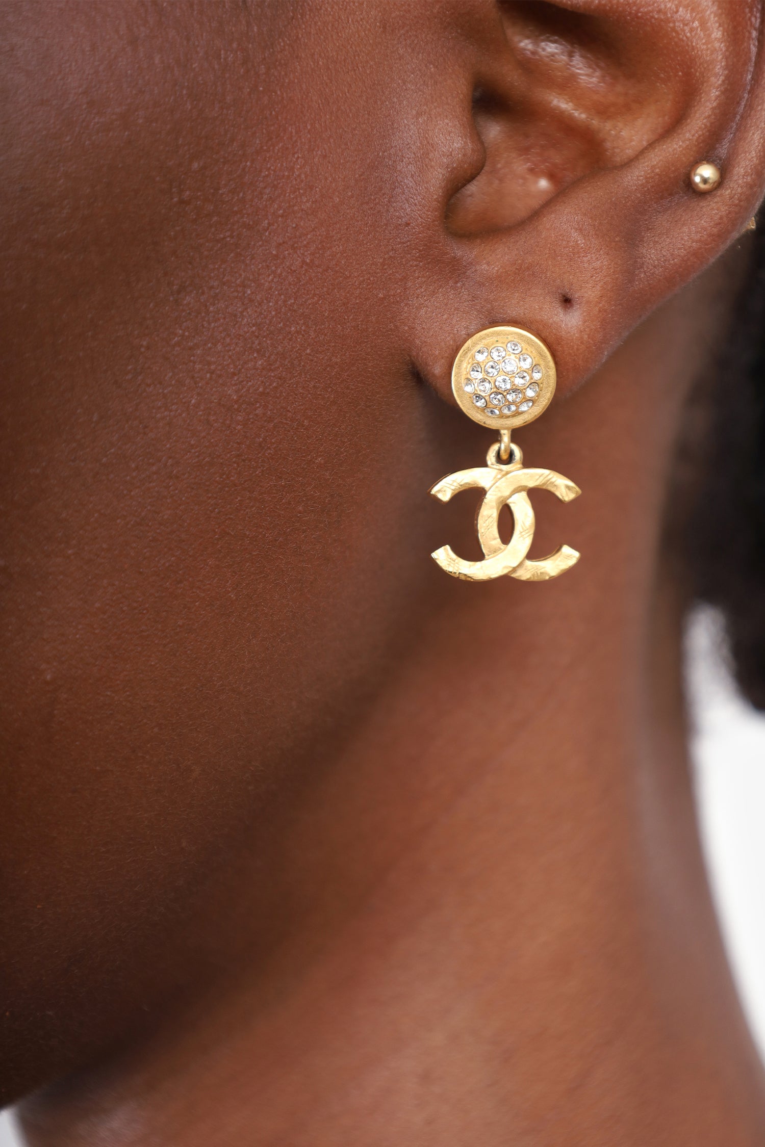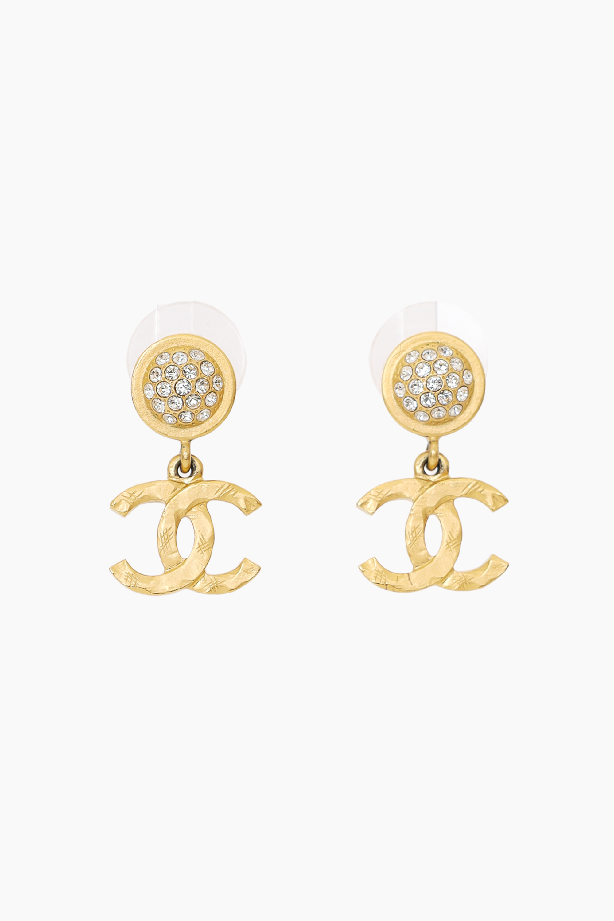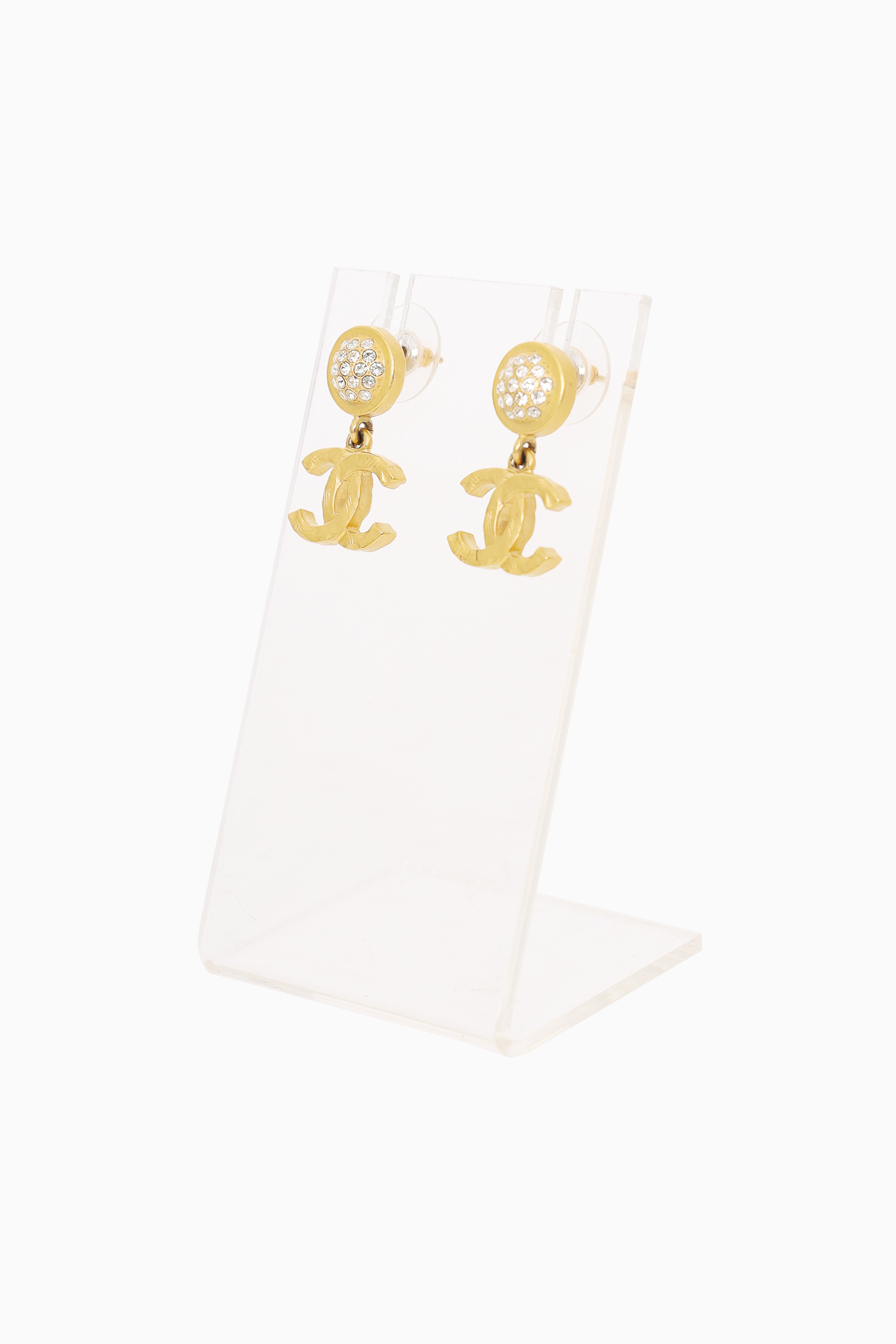 Refresh availabilityPre-Loved Chanel™ Gold-Tone Crystal CC Drop Earrings.