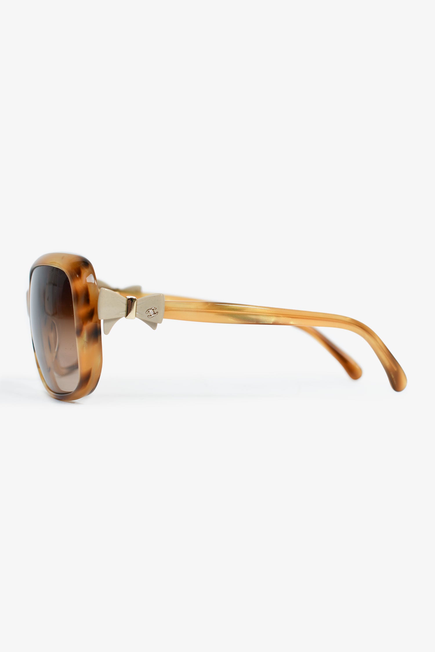 Refresh availabilityPre-Loved Chanel™ Light Brown Tortoise Bow Sunglasses. Built-in nose pads. Bow detail on arms. Tinted lenses.