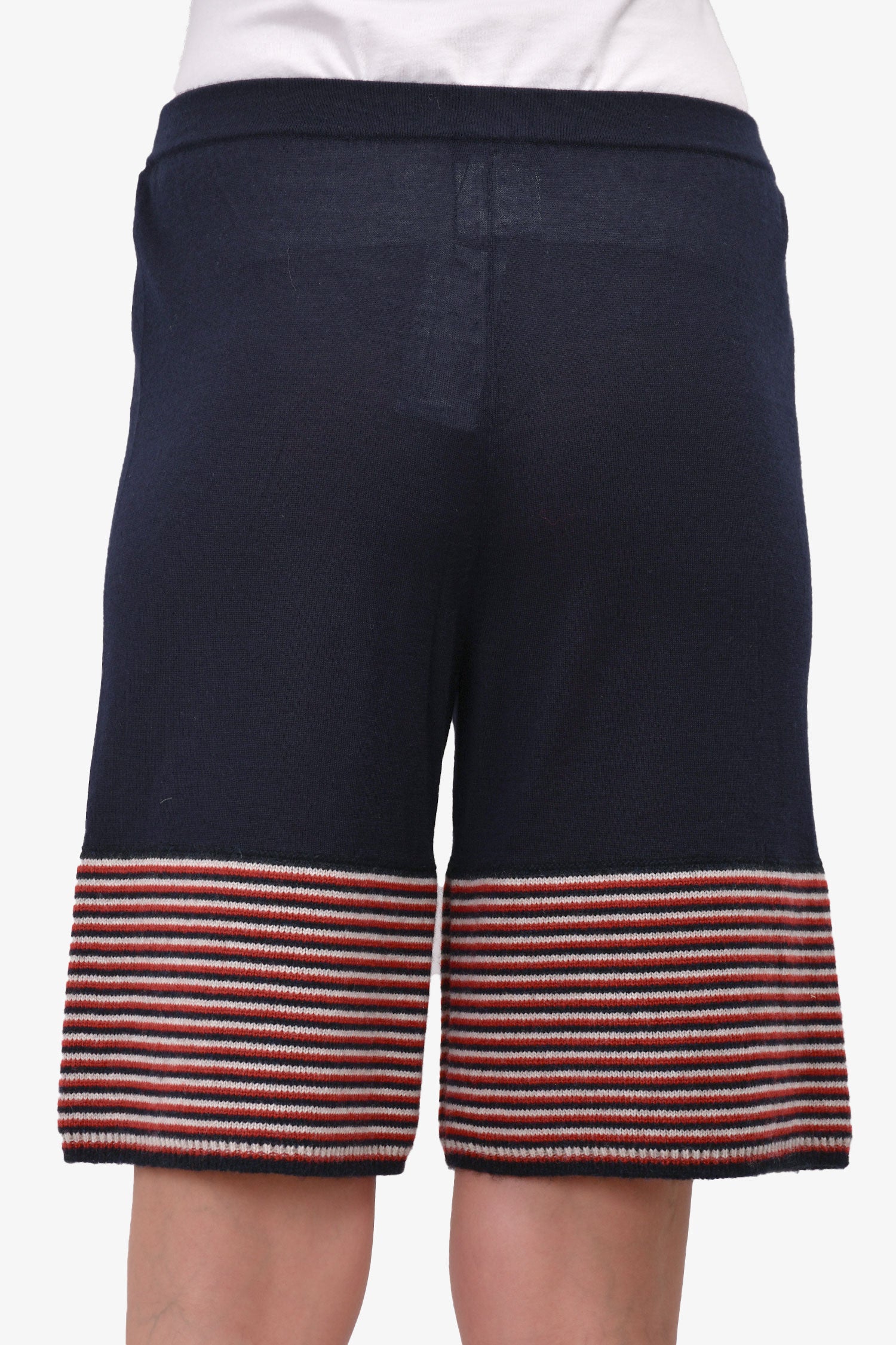 Pre-Loved Chanel™ Navy Blue/Striped Cashmere/Silk Knit Long Flared Shorts Size 38