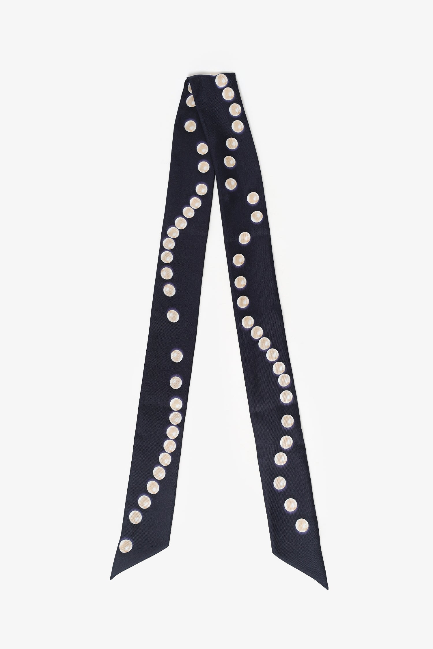 Refresh availabilityPre-Loved Chanel™ Navy Silk Pearl Print Twilly. Tonal stitching.