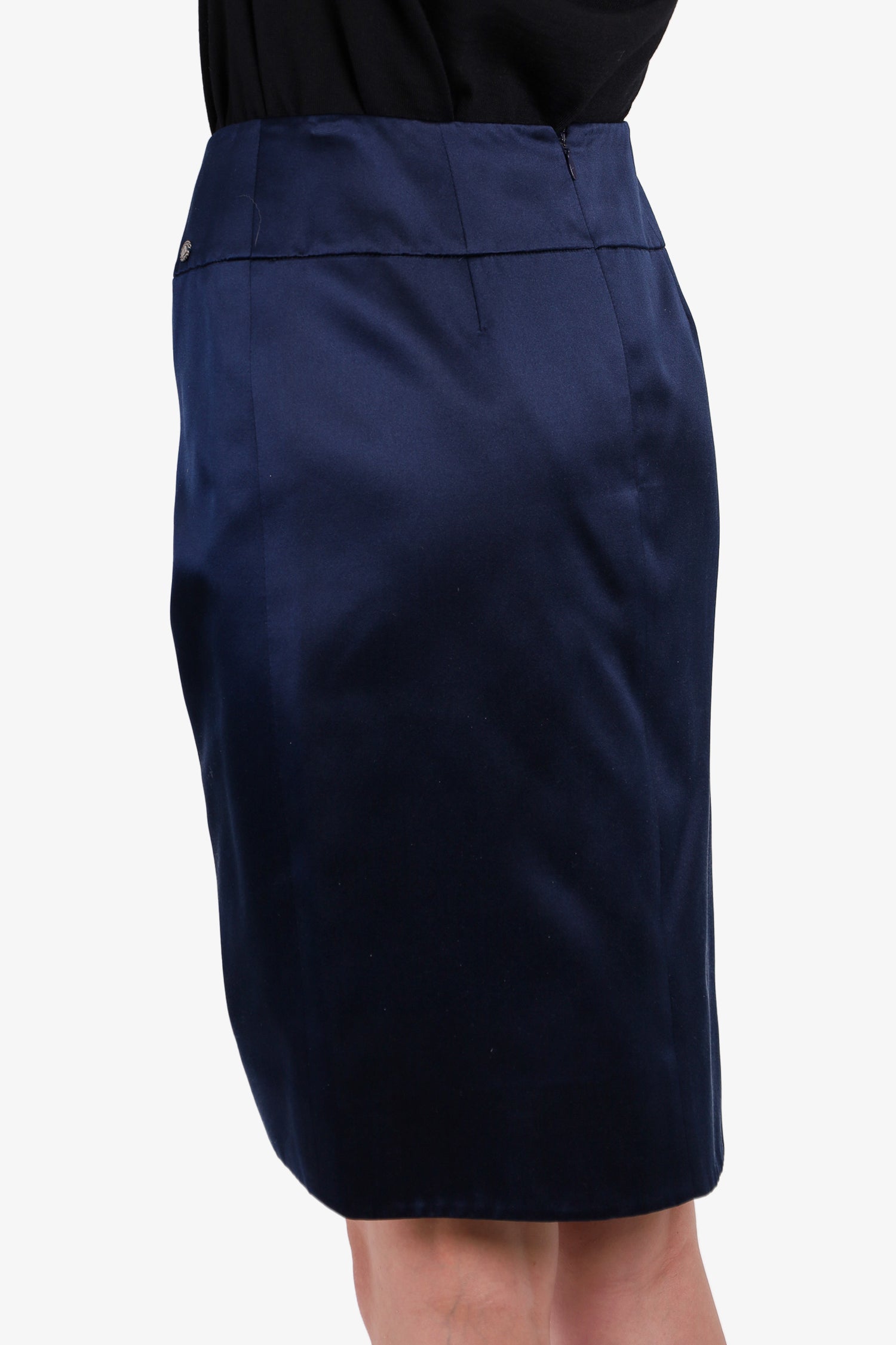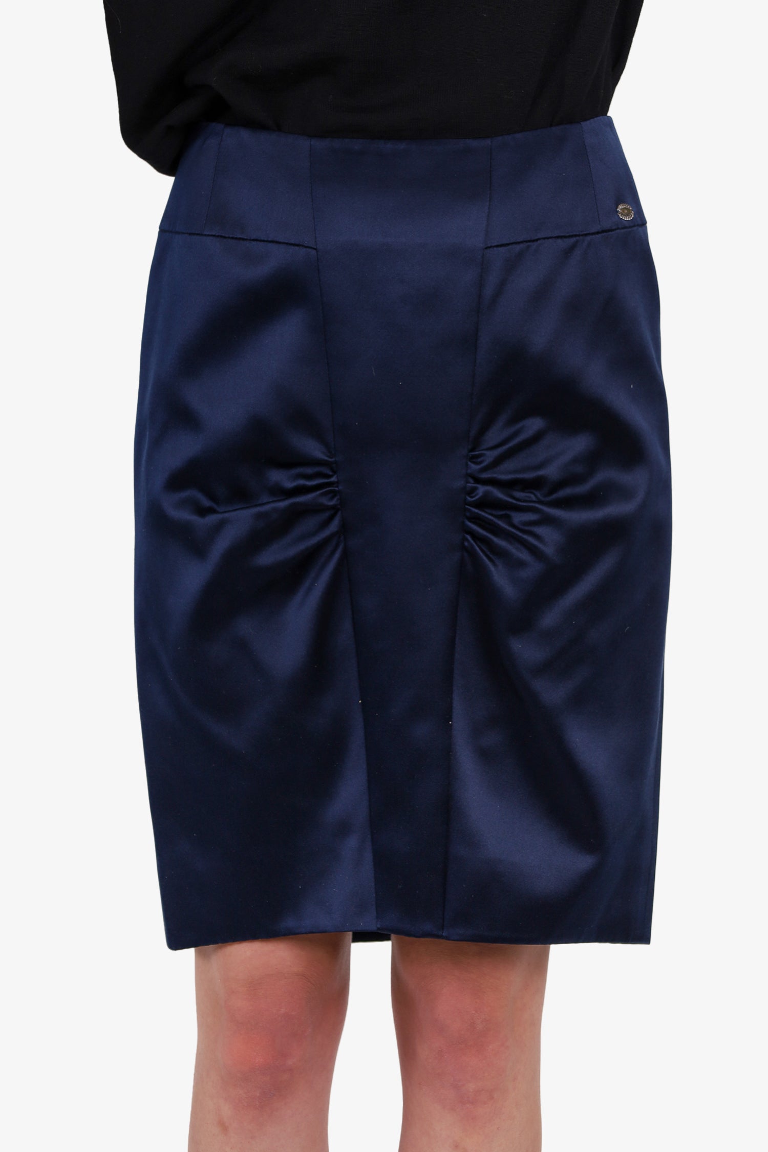 Pre-loved Chanel™ Navy Silk Pleated Skirt Size 40